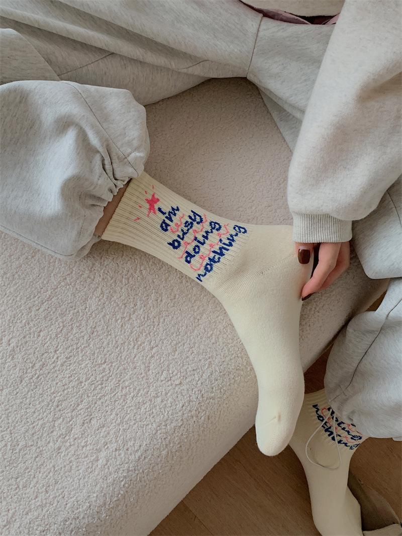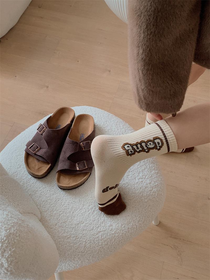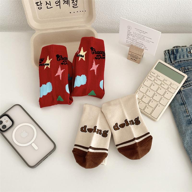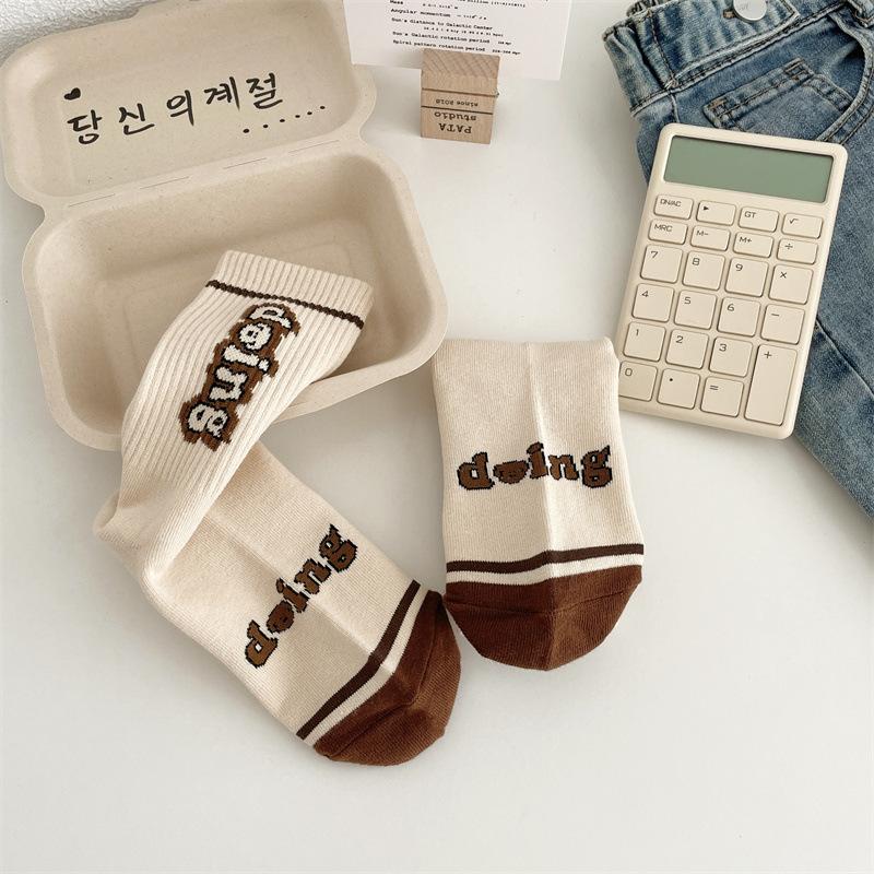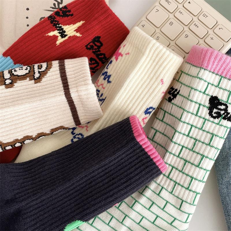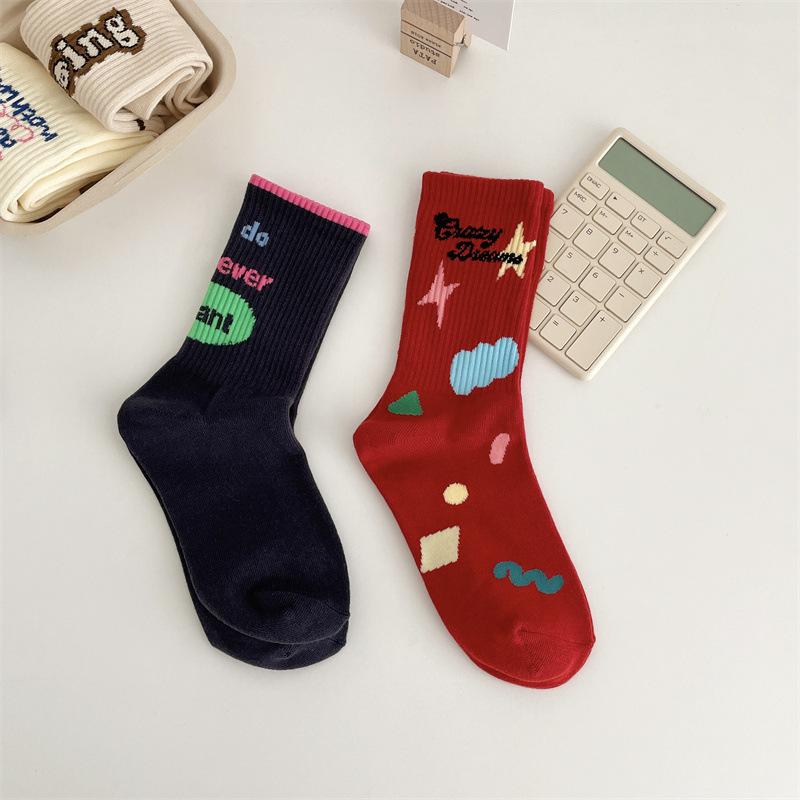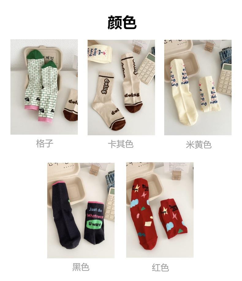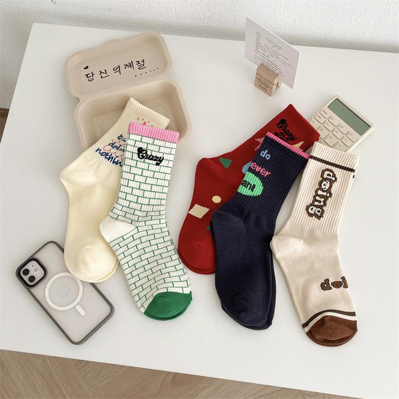 Calcetines de algodón a cuadros para hombre y mujer, nuevos calcetines deportivos de media pantorrilla con letras y costuras de color, de otoño e invierno, a la moda.