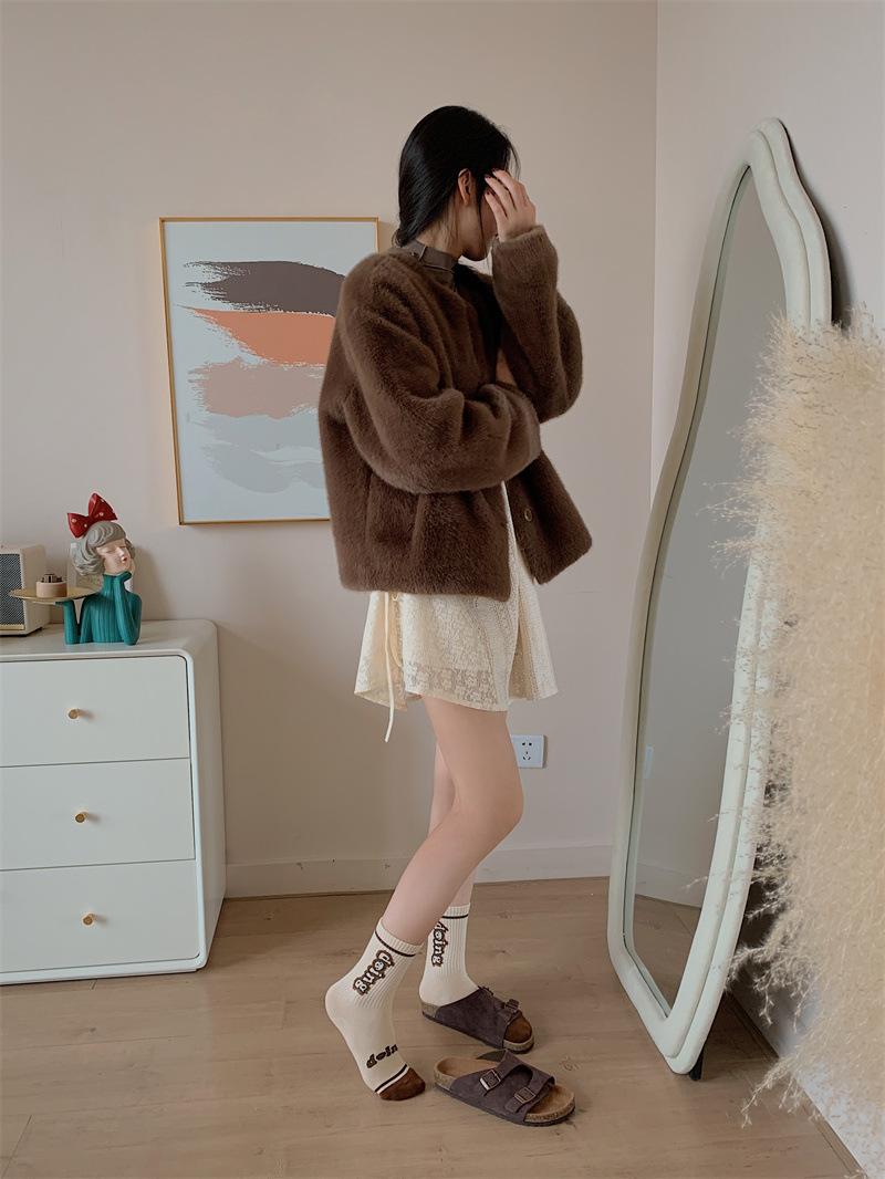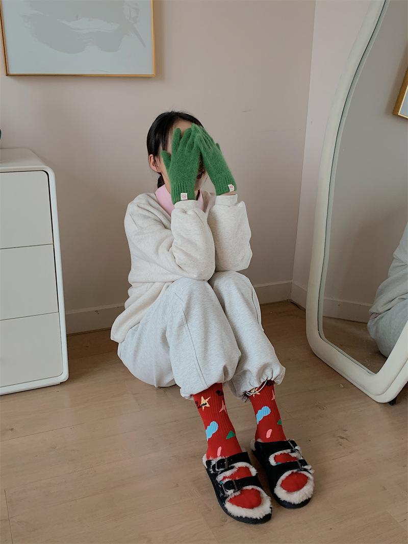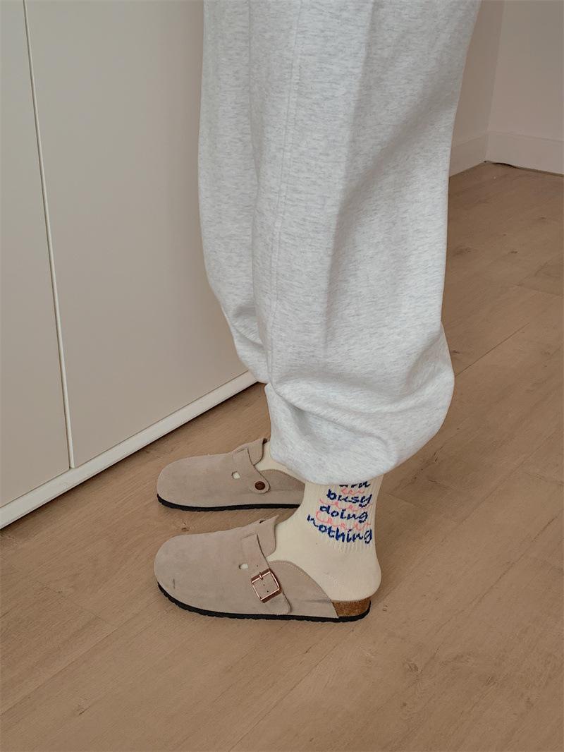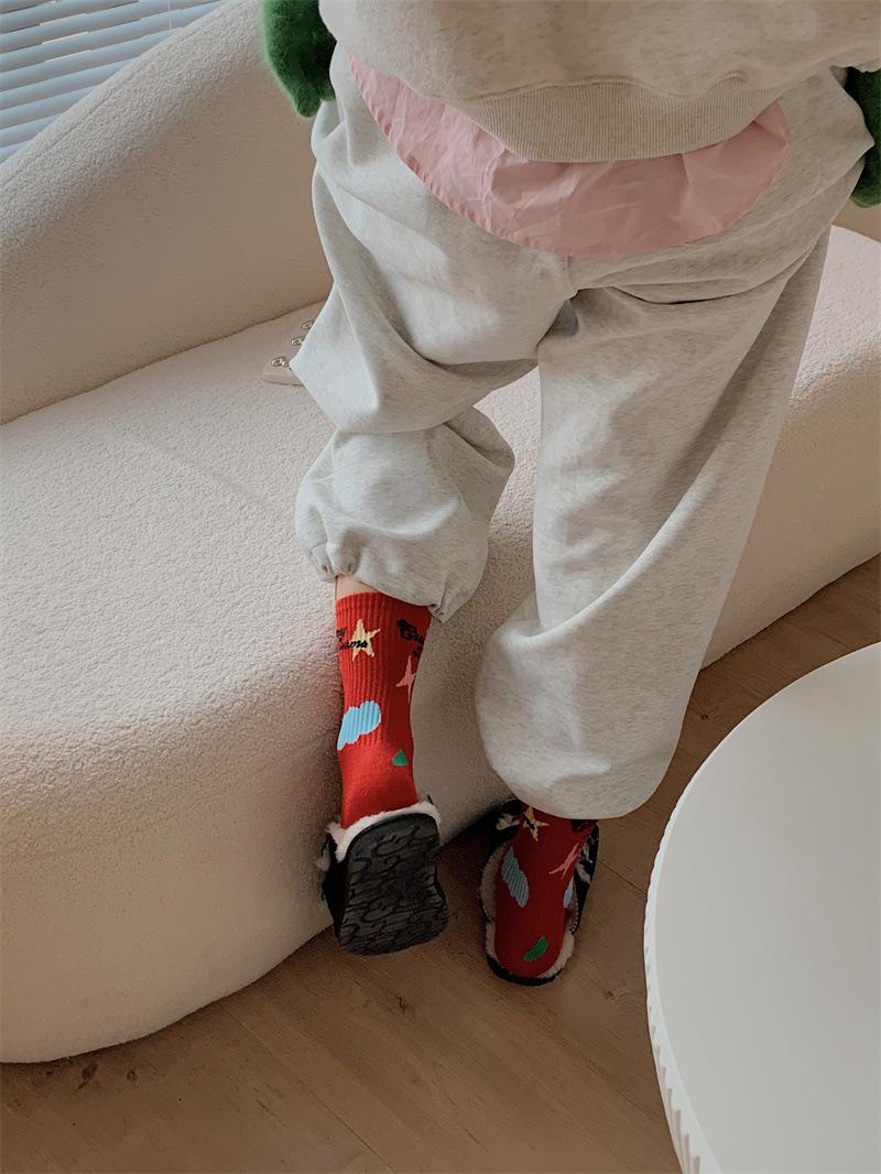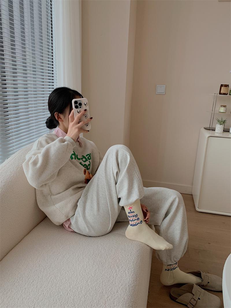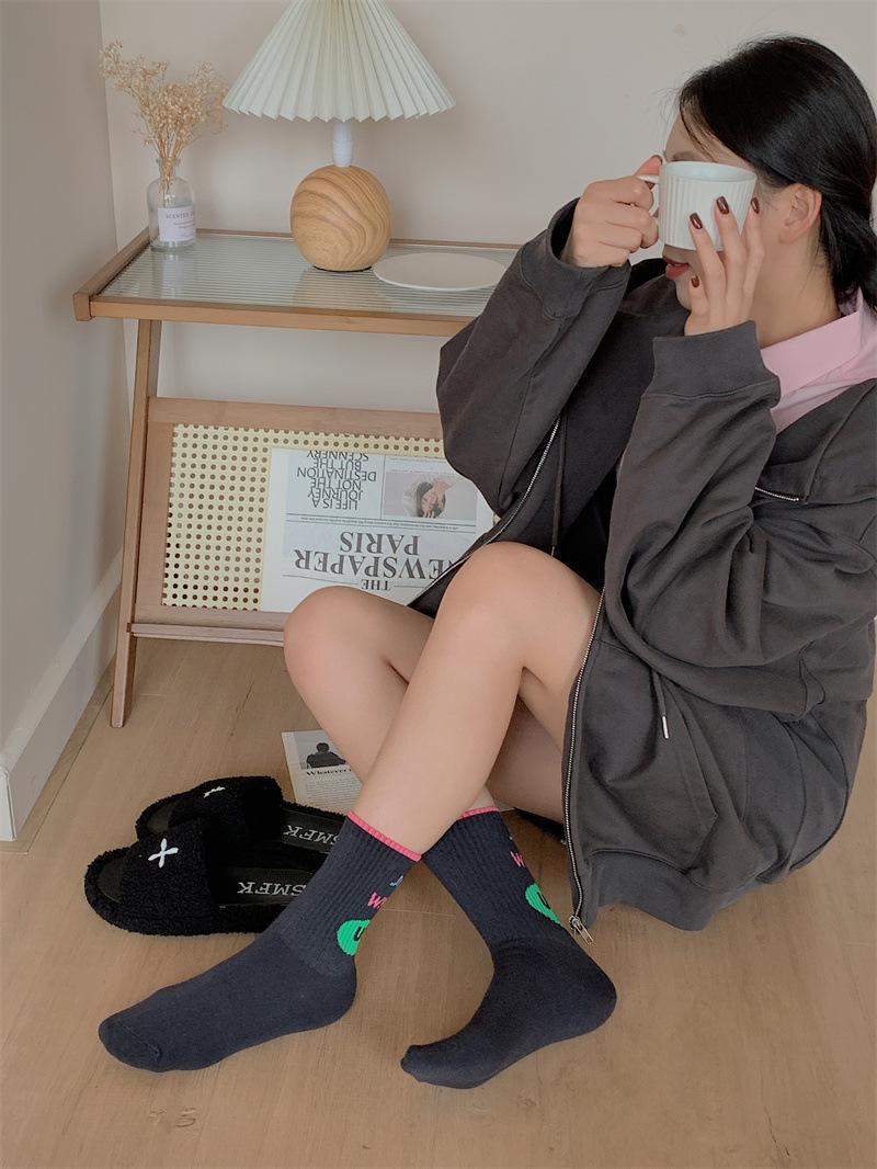 Calcetines de algodón a cuadros para hombre y mujer, nuevos calcetines deportivos de media pantorrilla con letras y costuras de color, de otoño e invierno, a la moda.