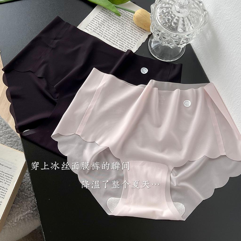 Ropa interior sin costuras de seda de hielo de cintura media para mujer, ropa interior de verano ultrafina de algodón puro con entrepierna antibacteriana de talla grande, respetuosa con la piel