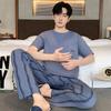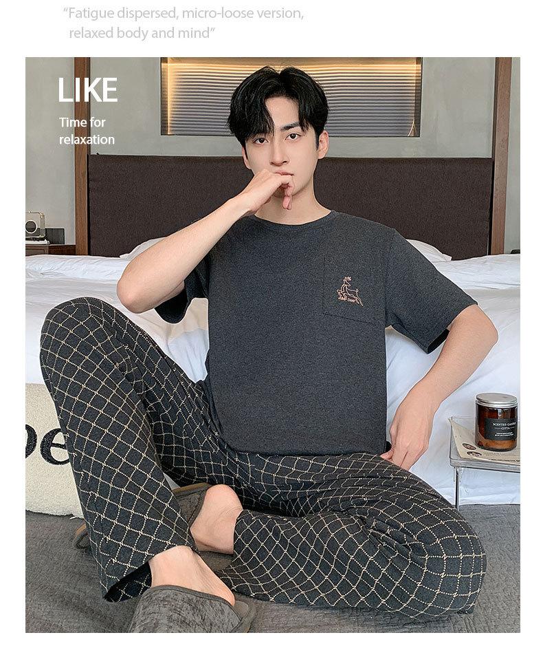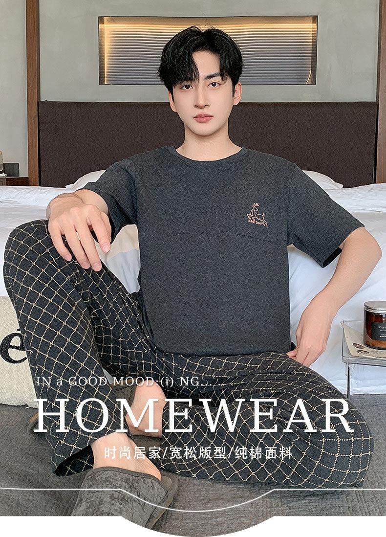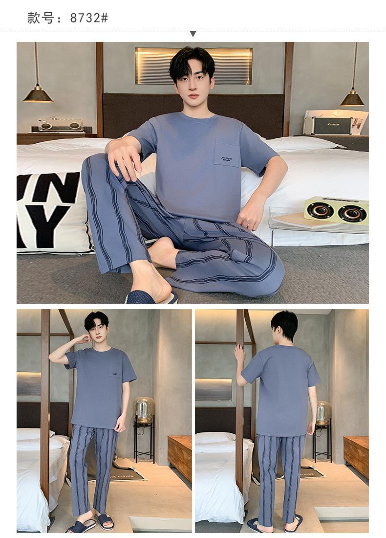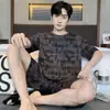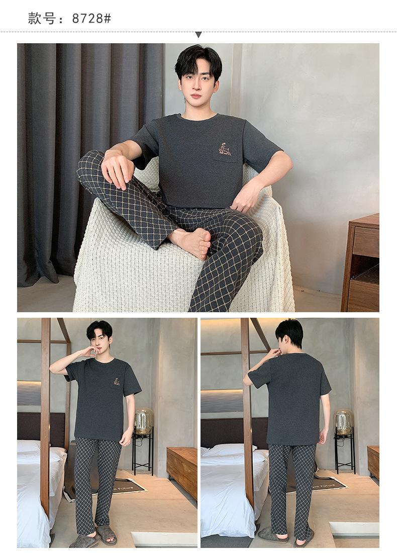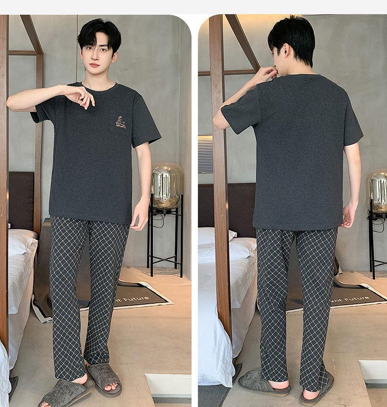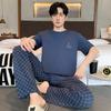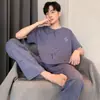 Pijama de Verano para Hombre Pantalones de Manga Corta Algodón Sencillo Casual Talla Grande Holgado Ropa para el Hogar Traje para Hombre