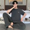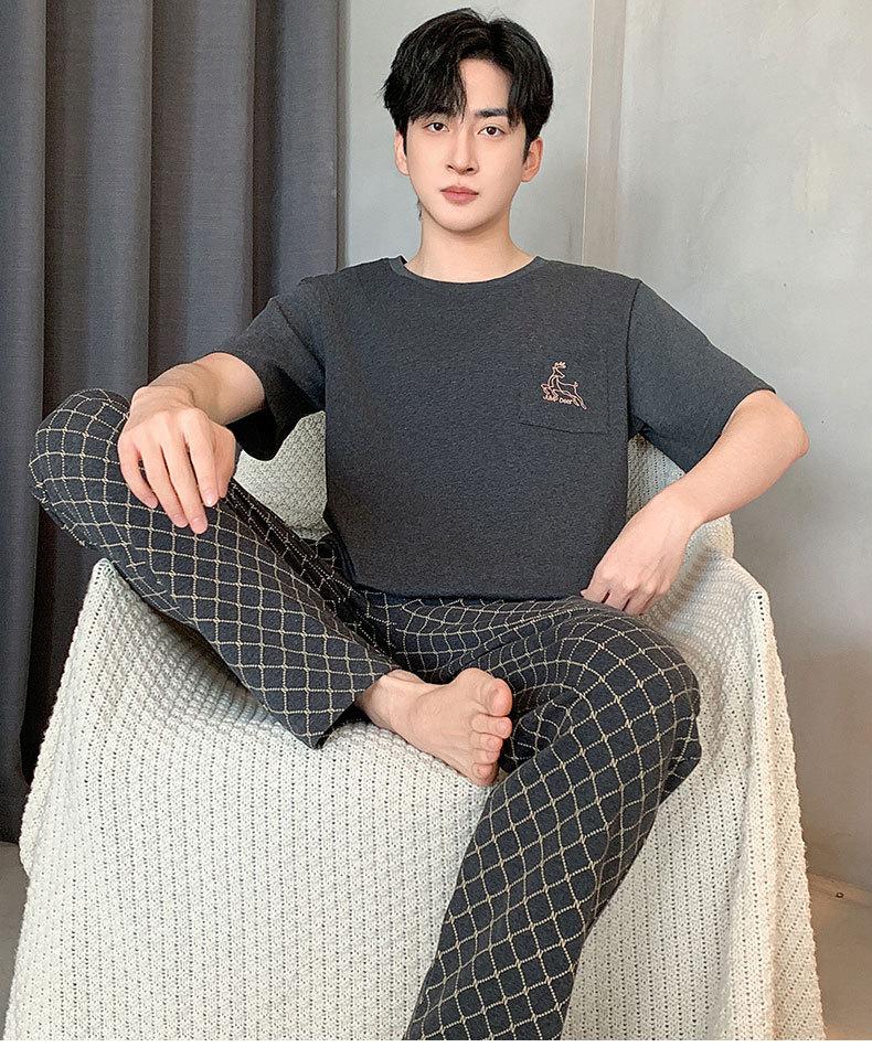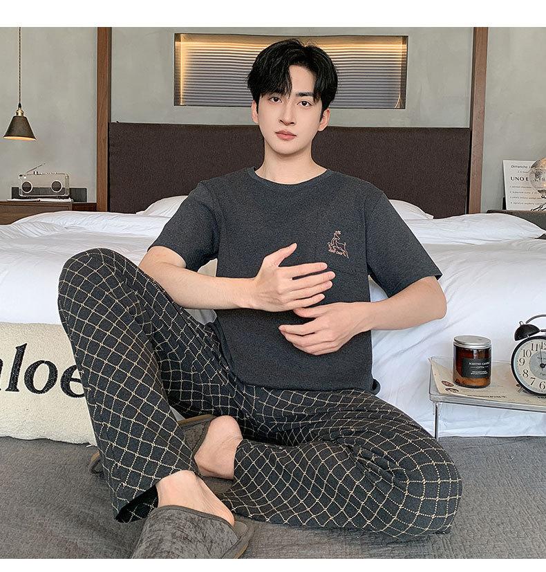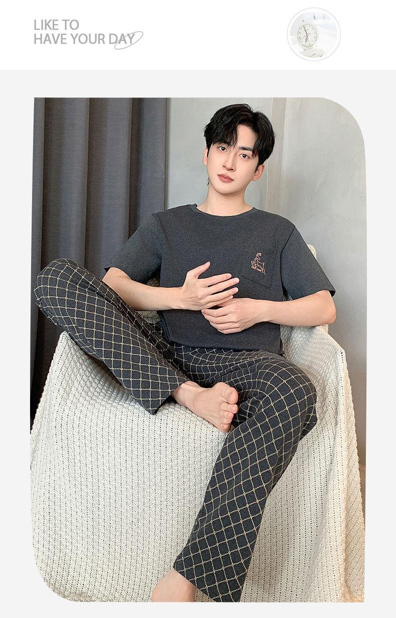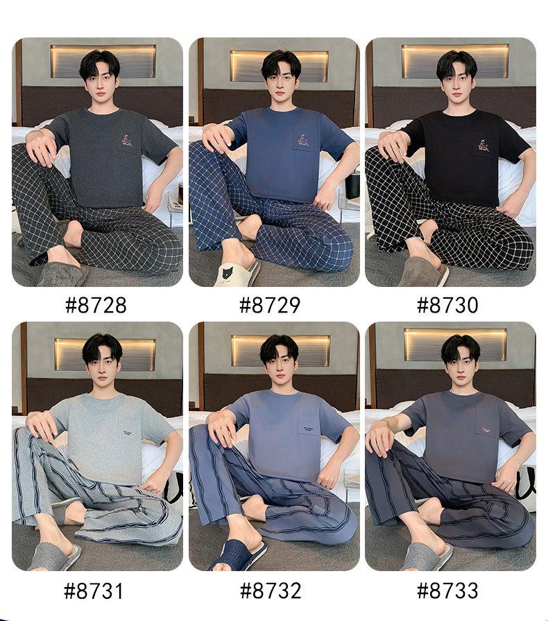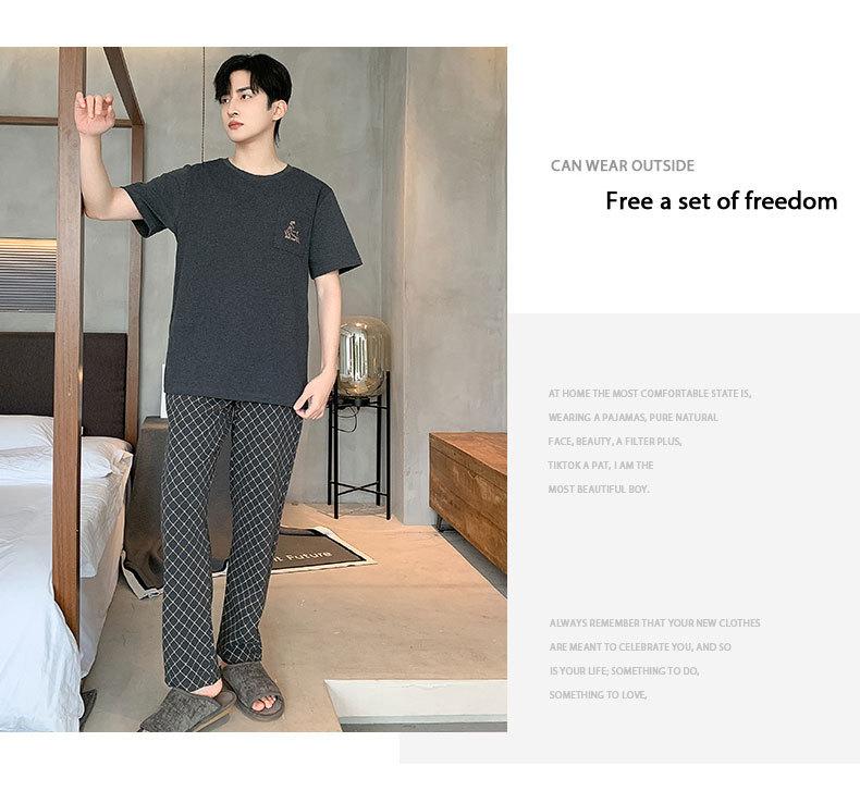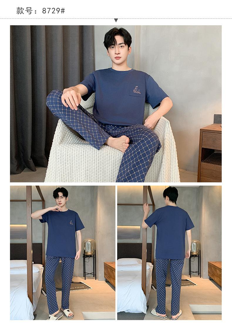 Pijama de Verano para Hombre Pantalones de Manga Corta Algodón Sencillo Casual Talla Grande Holgado Ropa para el Hogar Traje para Hombre