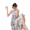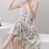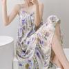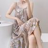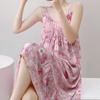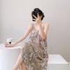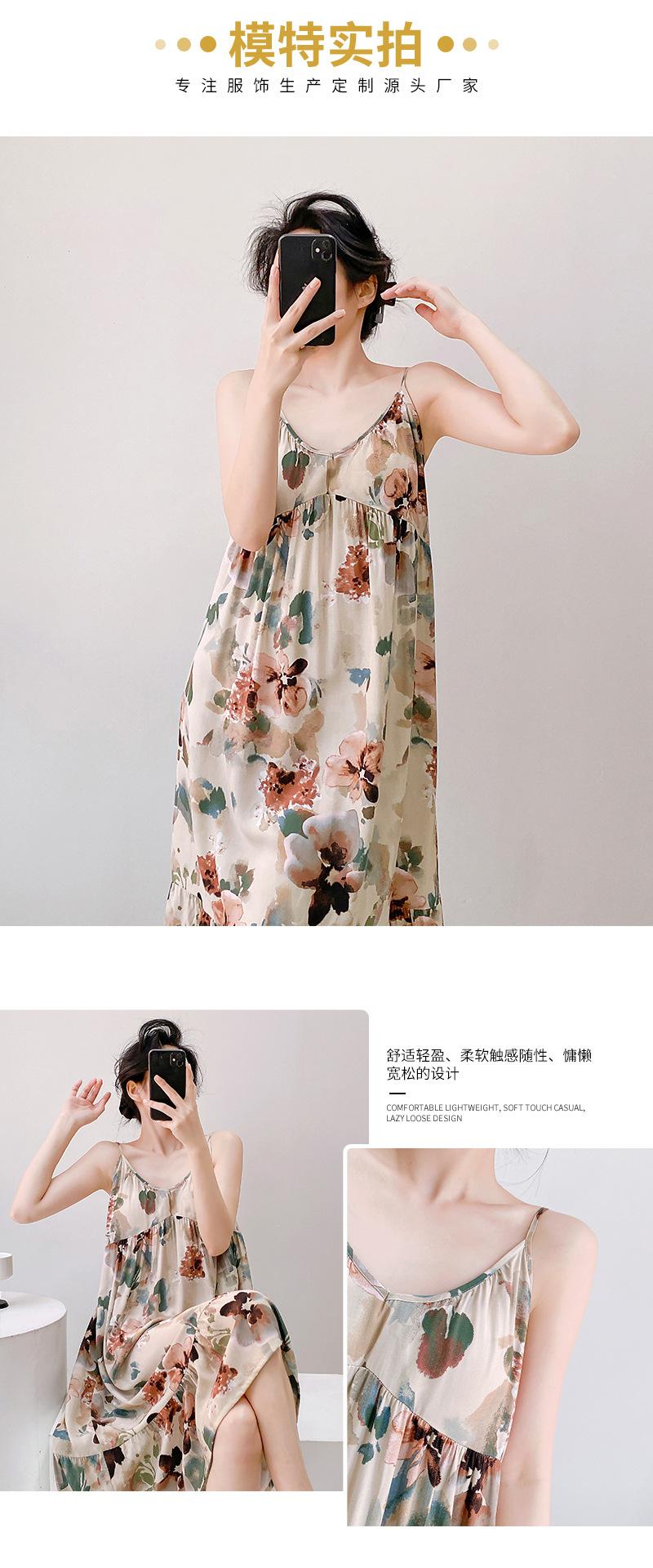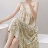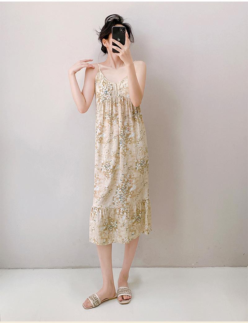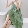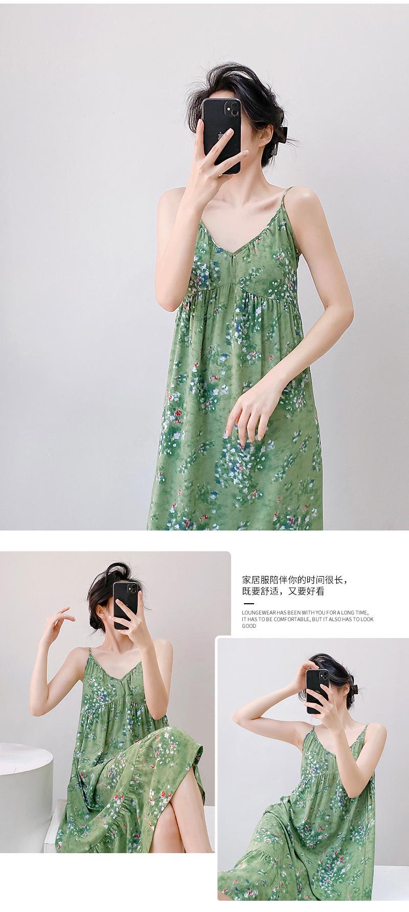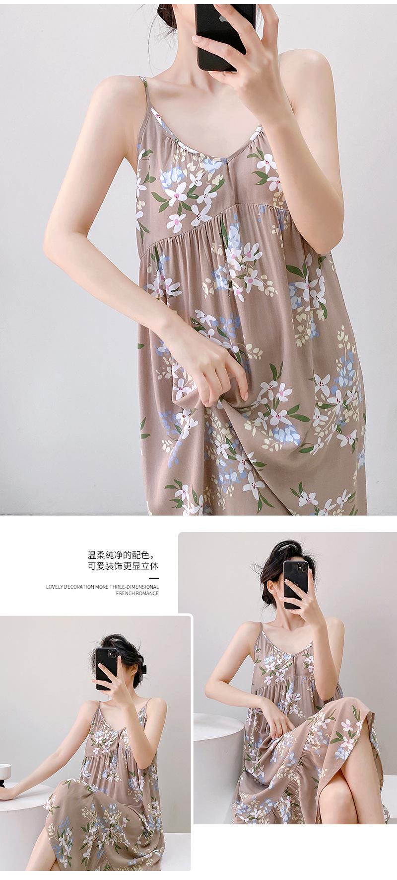Camisón de Verano de Algodón Seda con Tirantes Casual Nuevo Largo Medio Dulce Estampado para Casa Primavera y Otoño Camisón Delgado