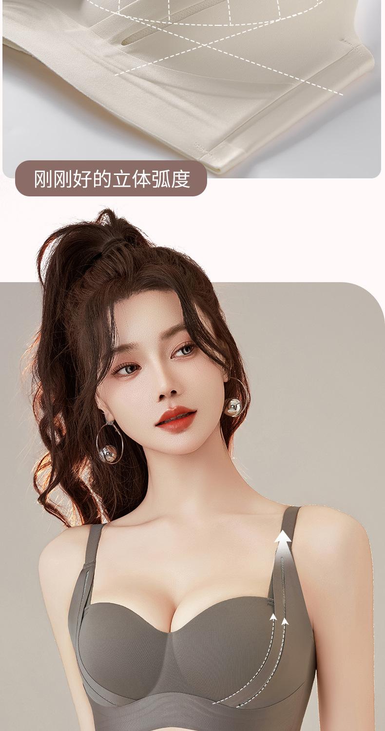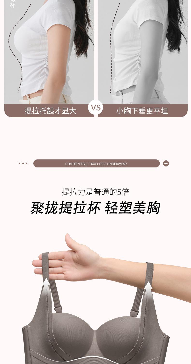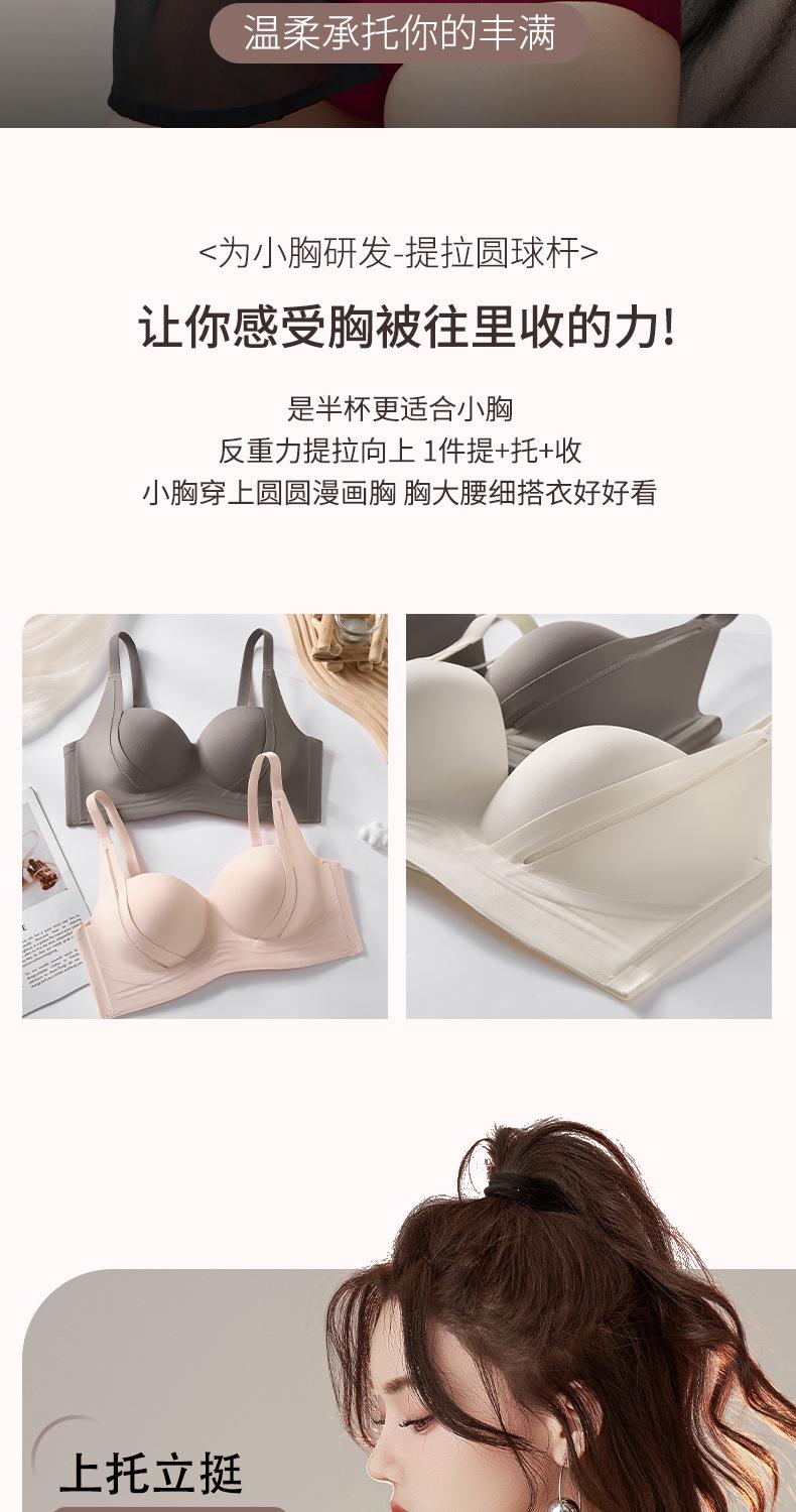 Ropa Interior sin Costuras para Mujer Pecho Pequeño con Realce Grande Sin Aro de Acero Ajustable Pecho Recogido Anti-flacidez Sujetador para Pecho Plano Verano