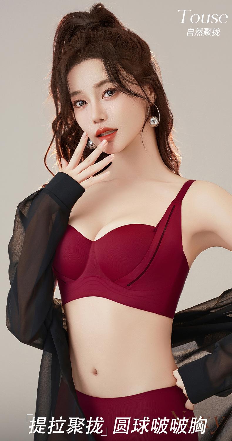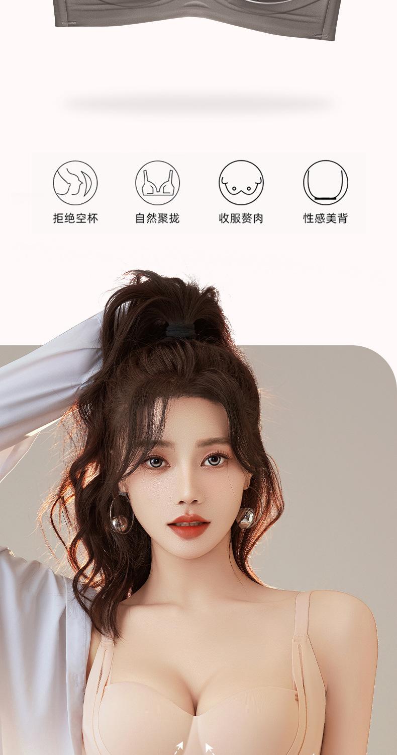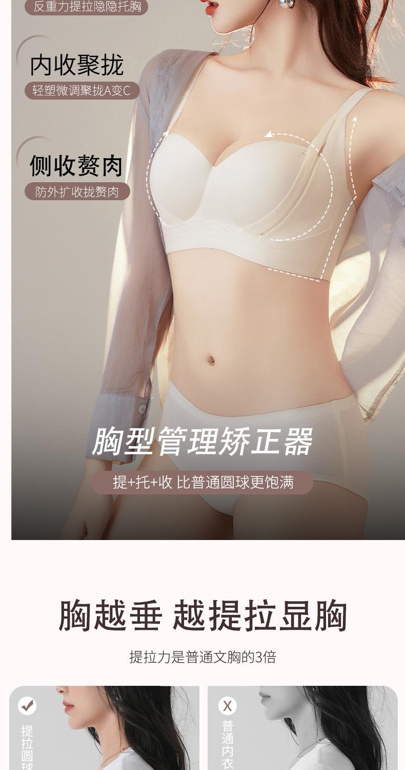 Ropa Interior sin Costuras para Mujer Pecho Pequeño con Realce Grande Sin Aro de Acero Ajustable Pecho Recogido Anti-flacidez Sujetador para Pecho Plano Verano