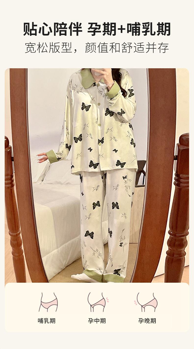 Ropa Mensual de Modal Primavera y Verano Moonlight con Almohadilla para el Pecho Traje para Mujeres Embarazadas Madres Embarazadas Lactancia Postparto Pijama Absorbente de Sudor