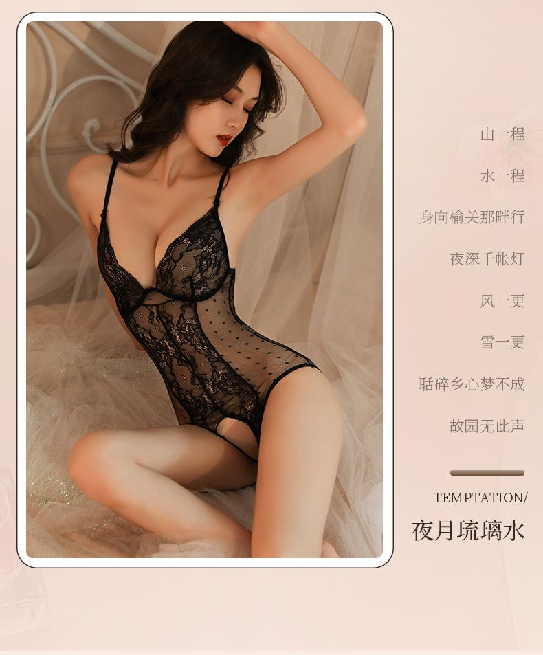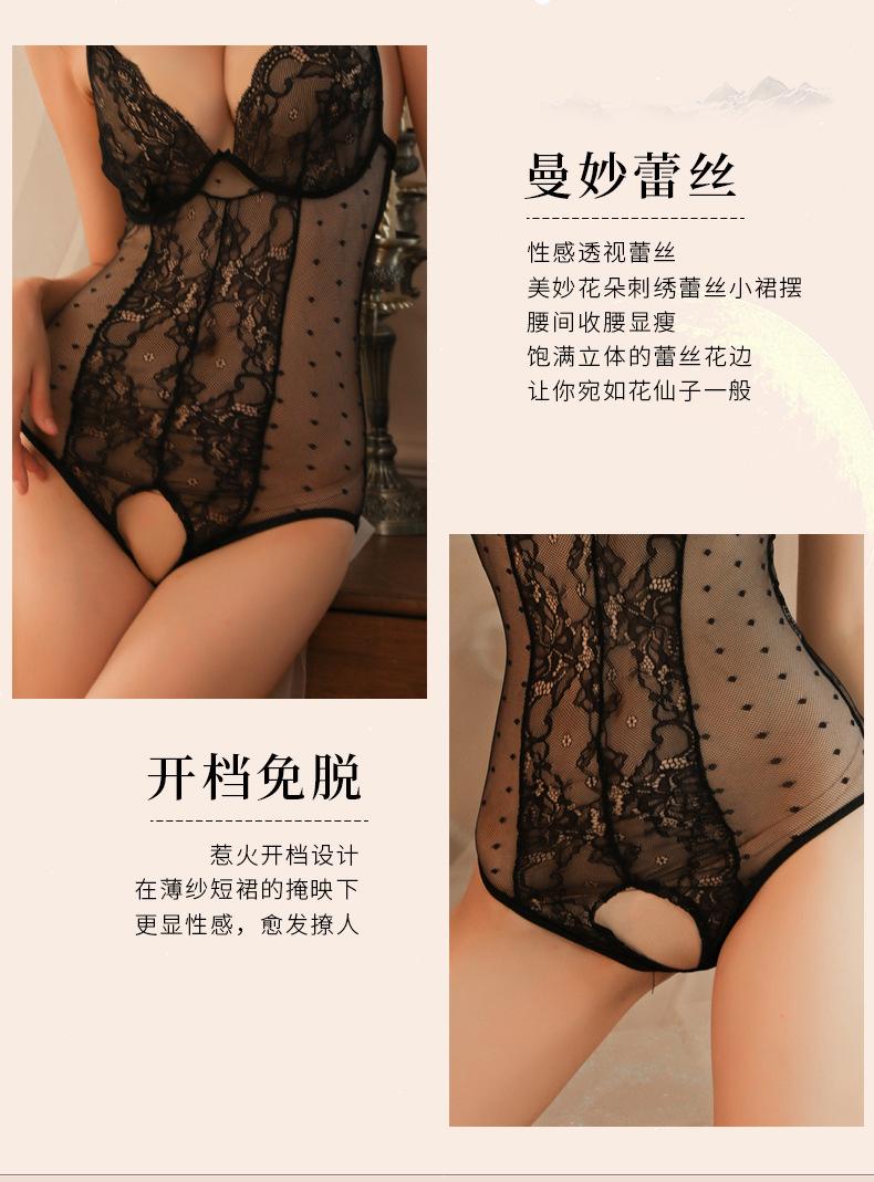 Nuevo mono de lencería sexy sin entrepierna, perspectiva de tentación, traje de pijama con tirantes