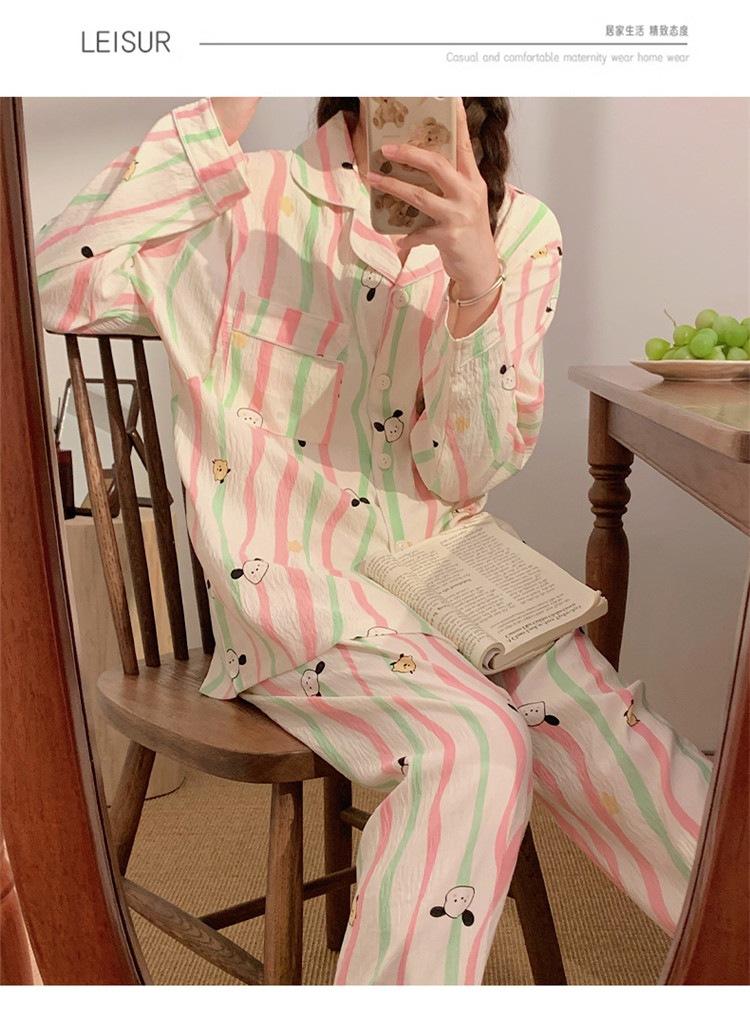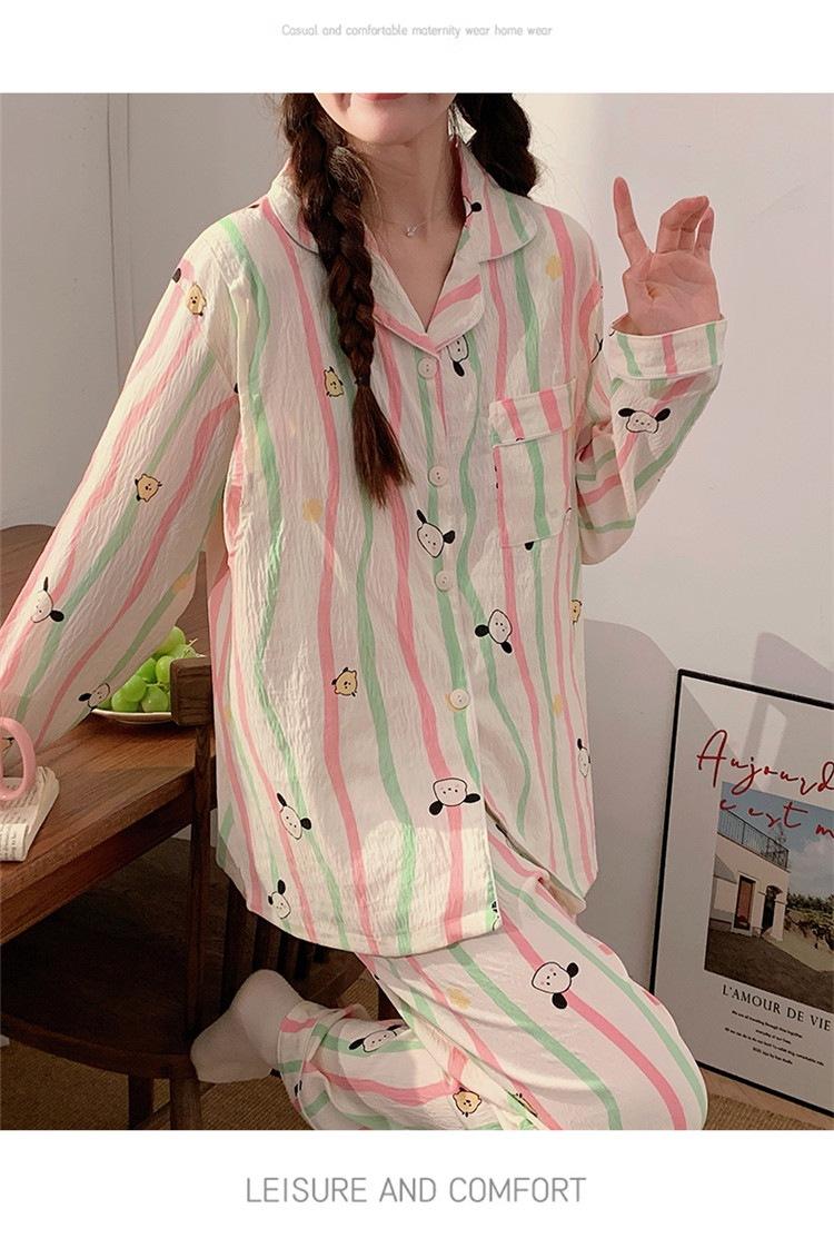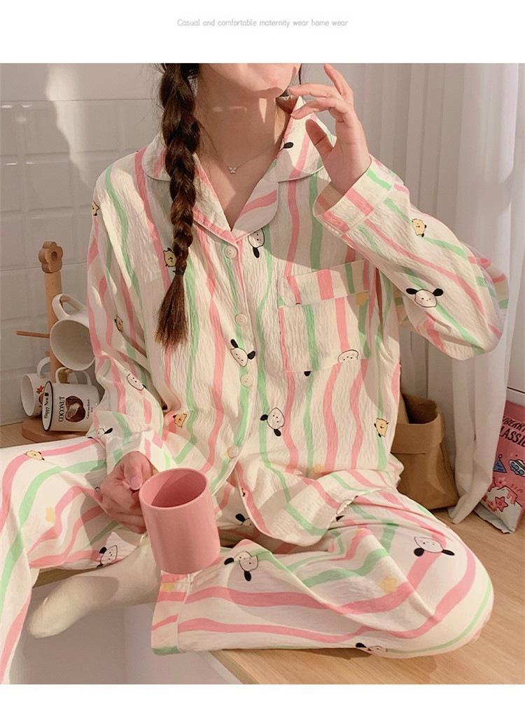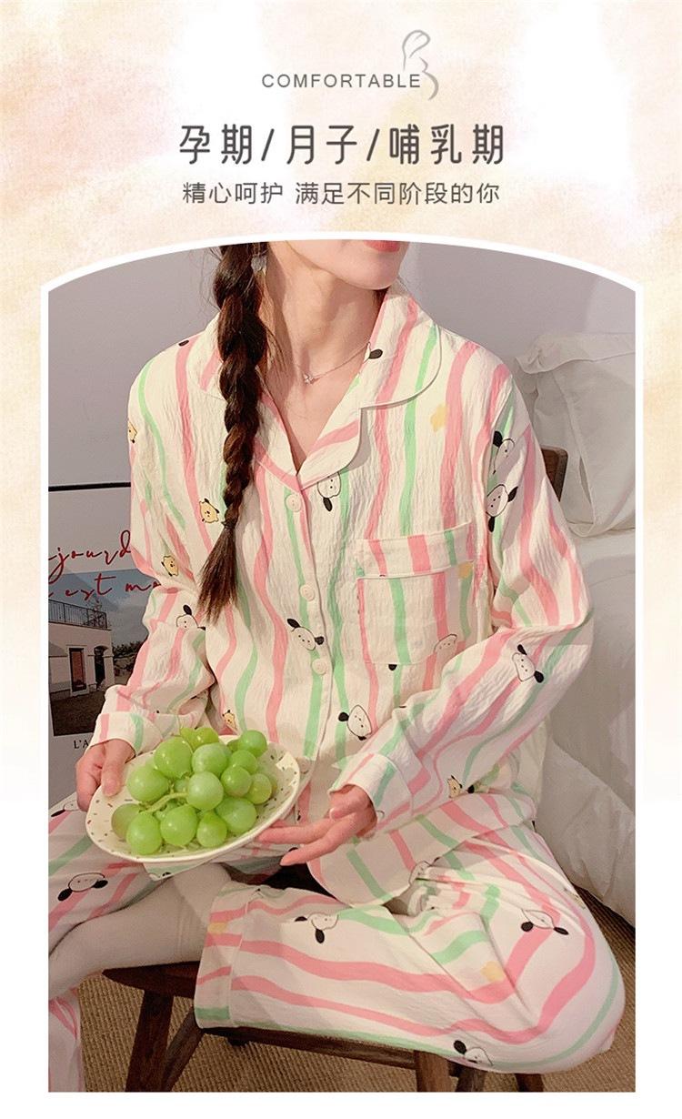 Pijama de Maternidad para Mujer Primavera y Verano Nuevo Algodón Nube Ropa de Lactancia Postparto con Almohadillas para el Busto Ropa de Confinamiento Traje de Dos Piezas