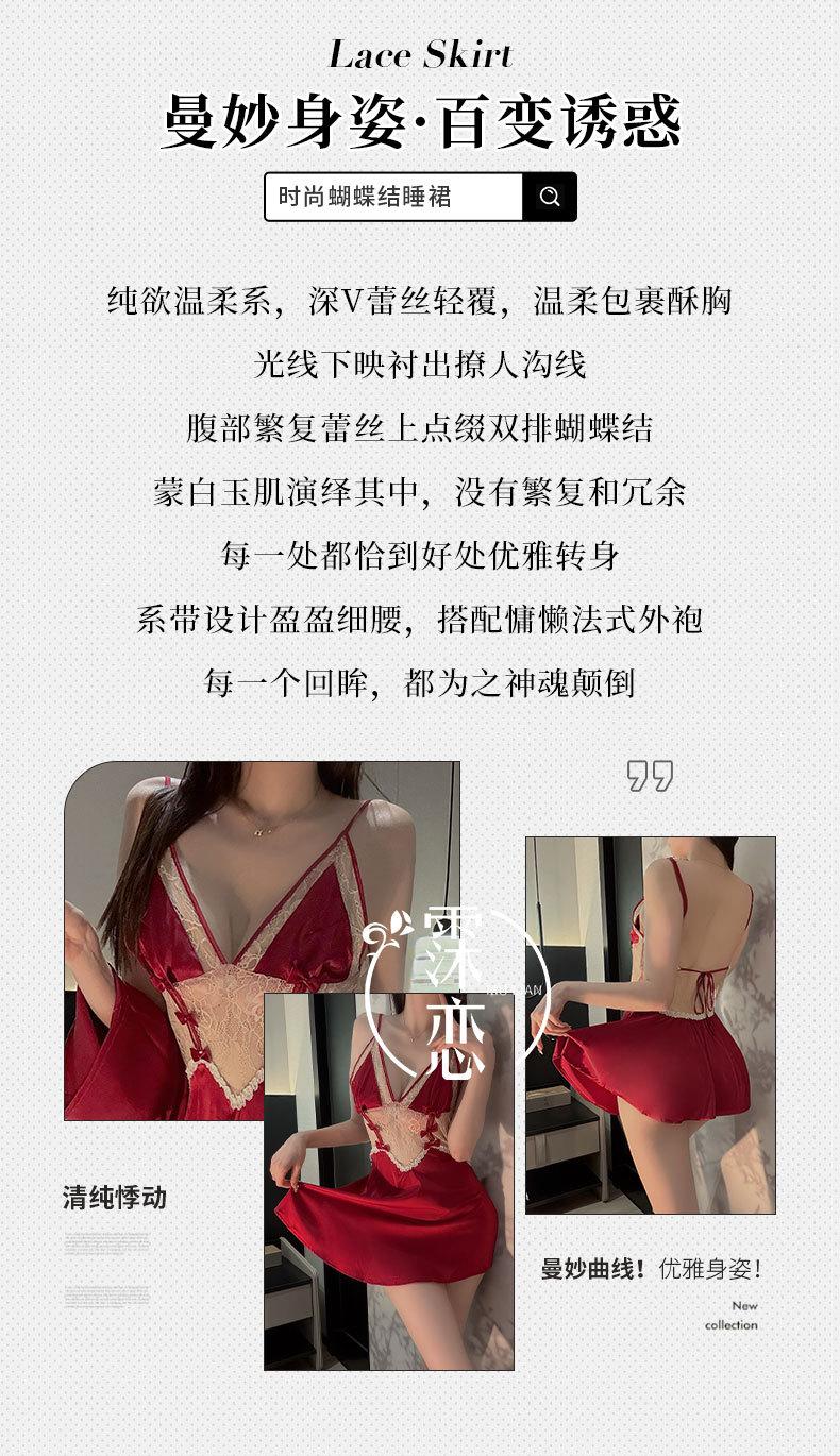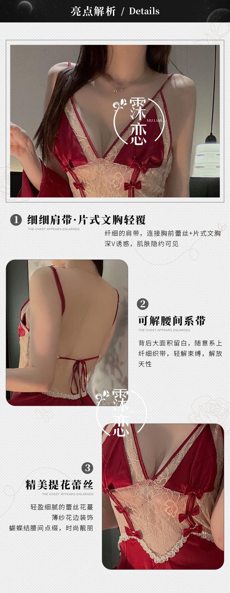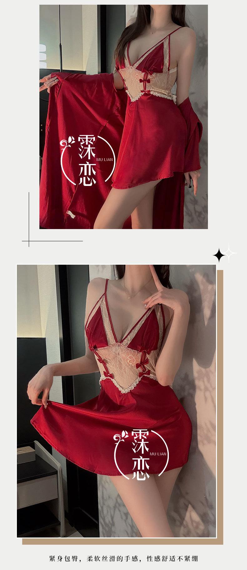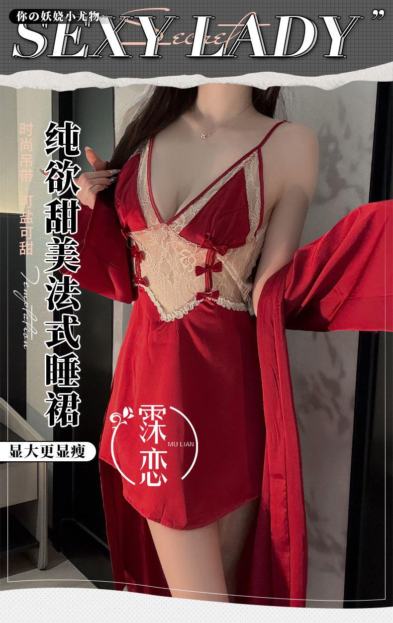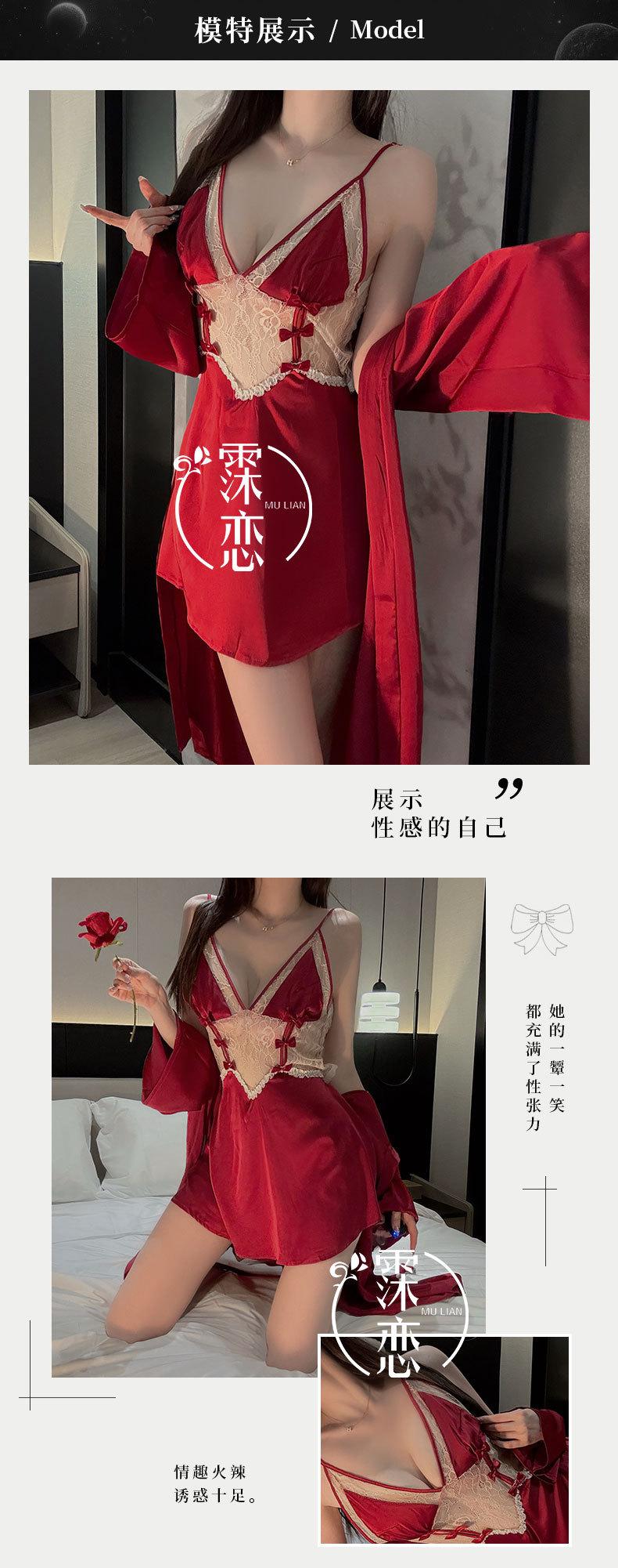 Red nightgown, Taro purple nightgown, Black nightgown, Red nightgown + robe + belt, Taro purple nightgown + ro...