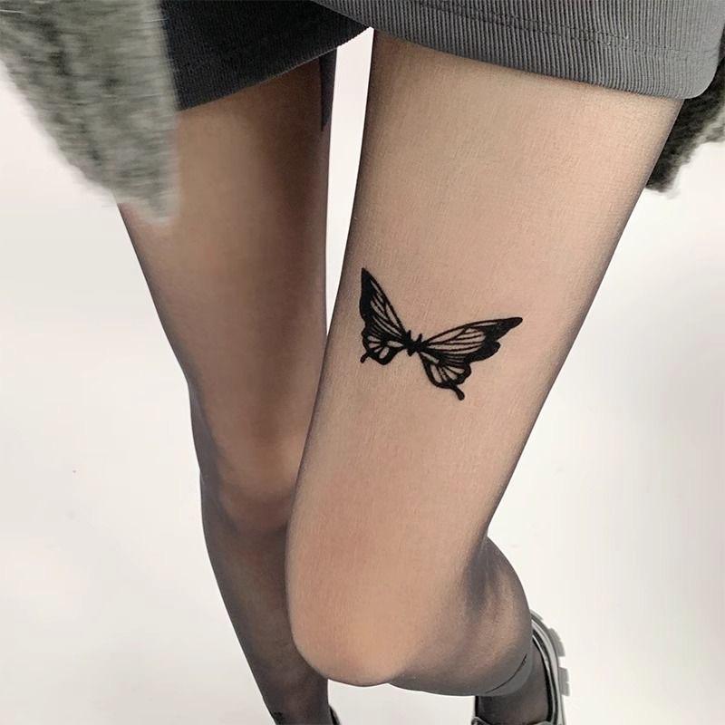 Medias Finas de Verano Estampadas de Mariposas Negras de Seda Deseo Puro Nude Medias Finas de Verano Antidesgarros Sexy Super Delgadas Pantimedias para Mujer