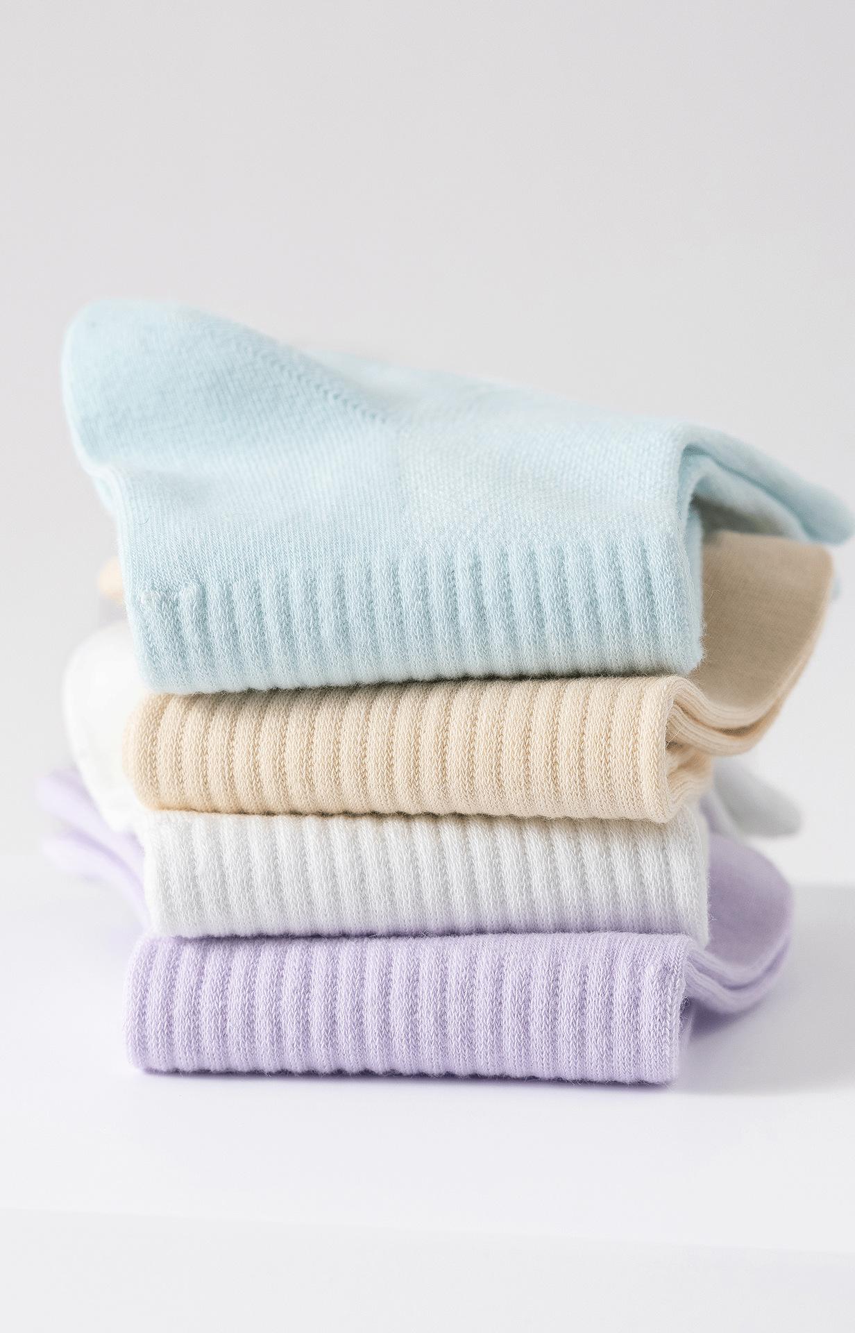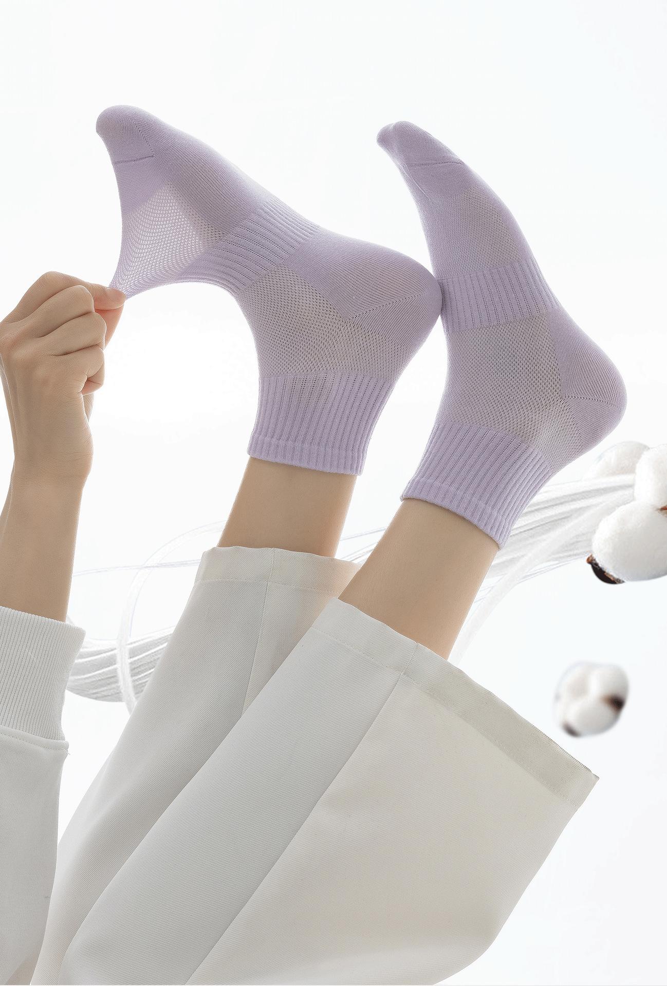 Calcetines de Algodón para Mujer Primavera y Verano Malla Fina Calcetines de Algodón de Lado Bajo Casuales Transpirables Desodorantes Absorbentes de Sudor de Tubo Mediano y Corto de Moda