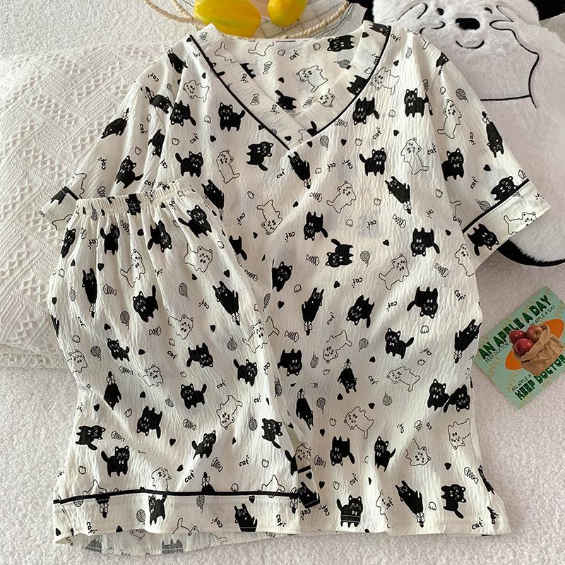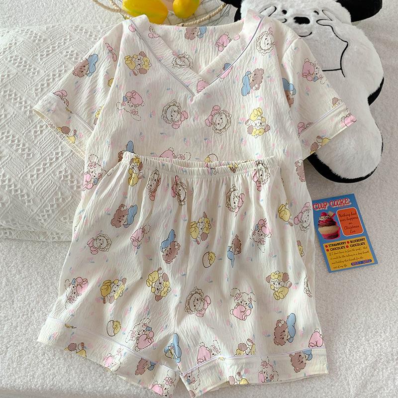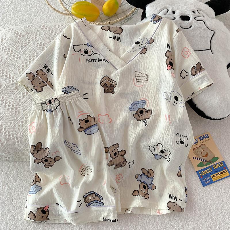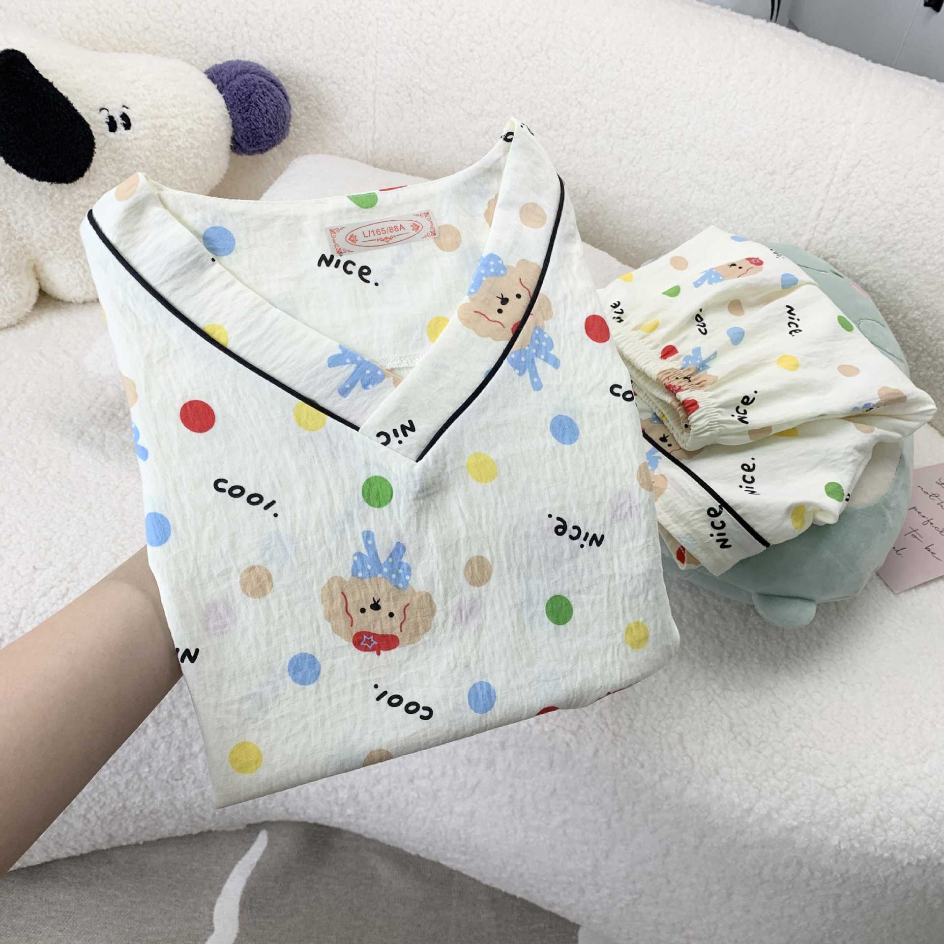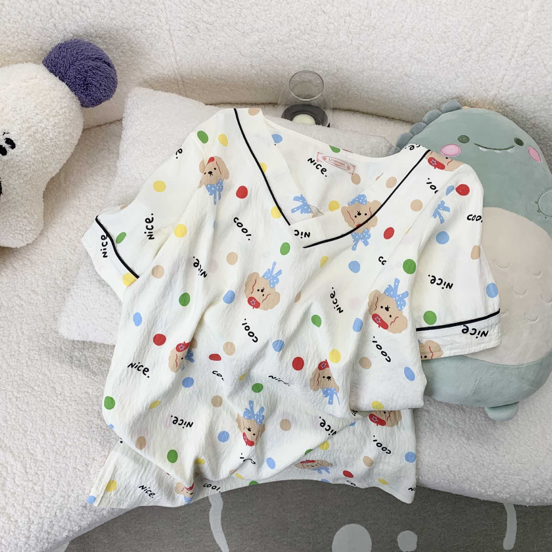 Pijamas para perros con estampado de lunares y ondas de colores de primavera y verano transfronterizos, pantalones cortos de manga corta de verano para mujer, ropa exterior bonita, ropa para el hogar, traje