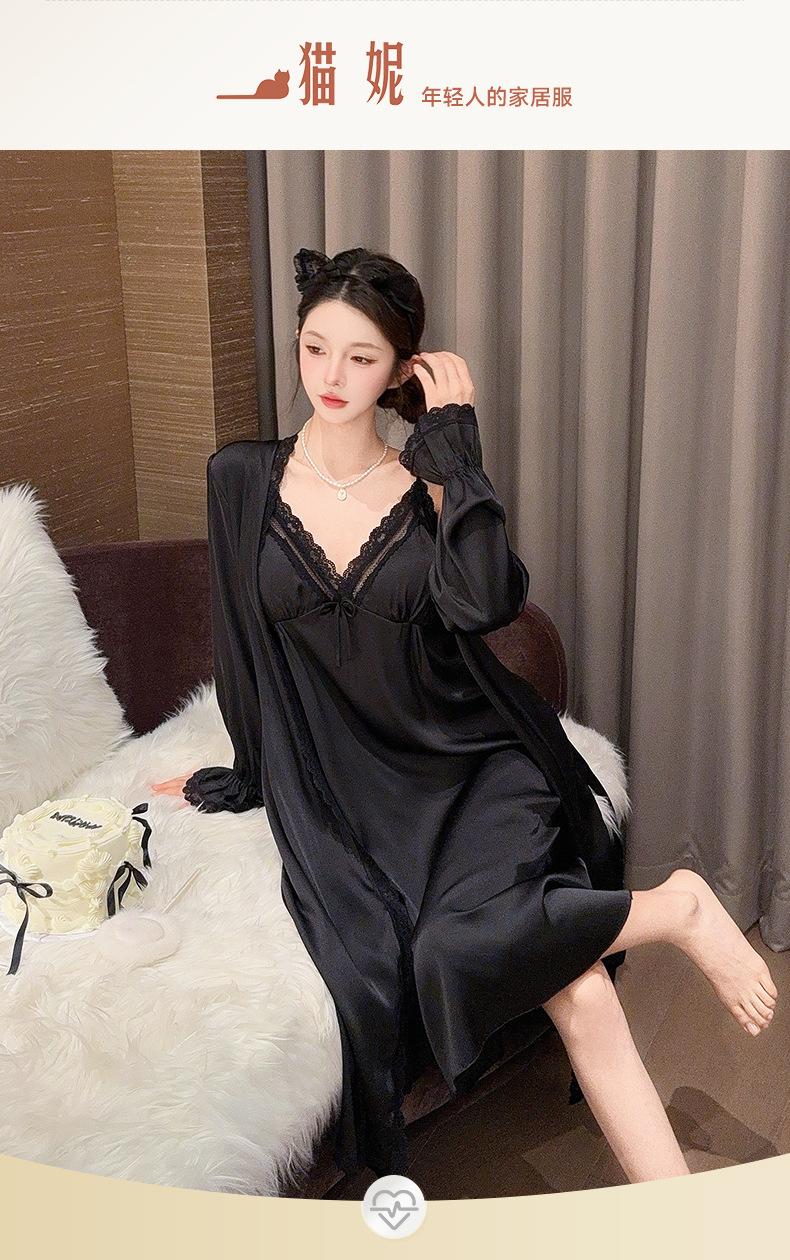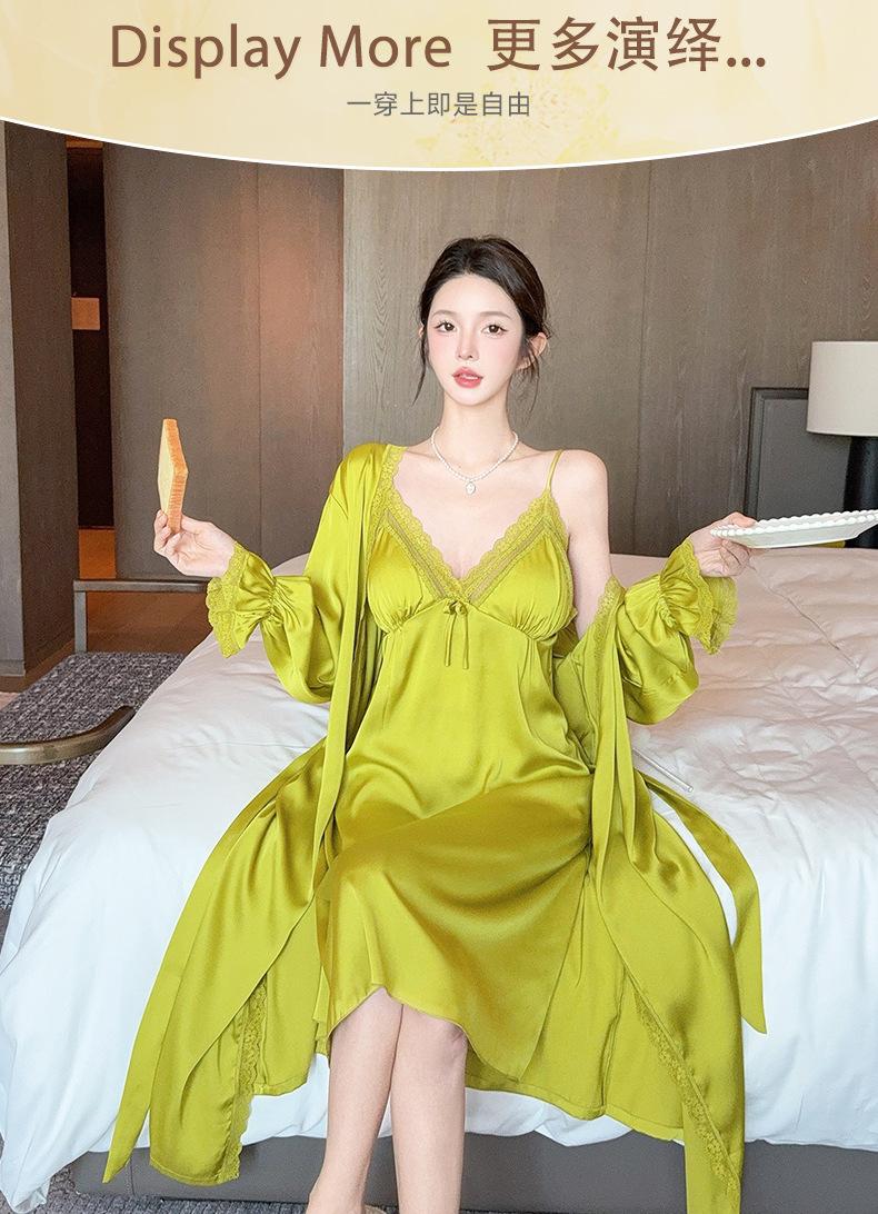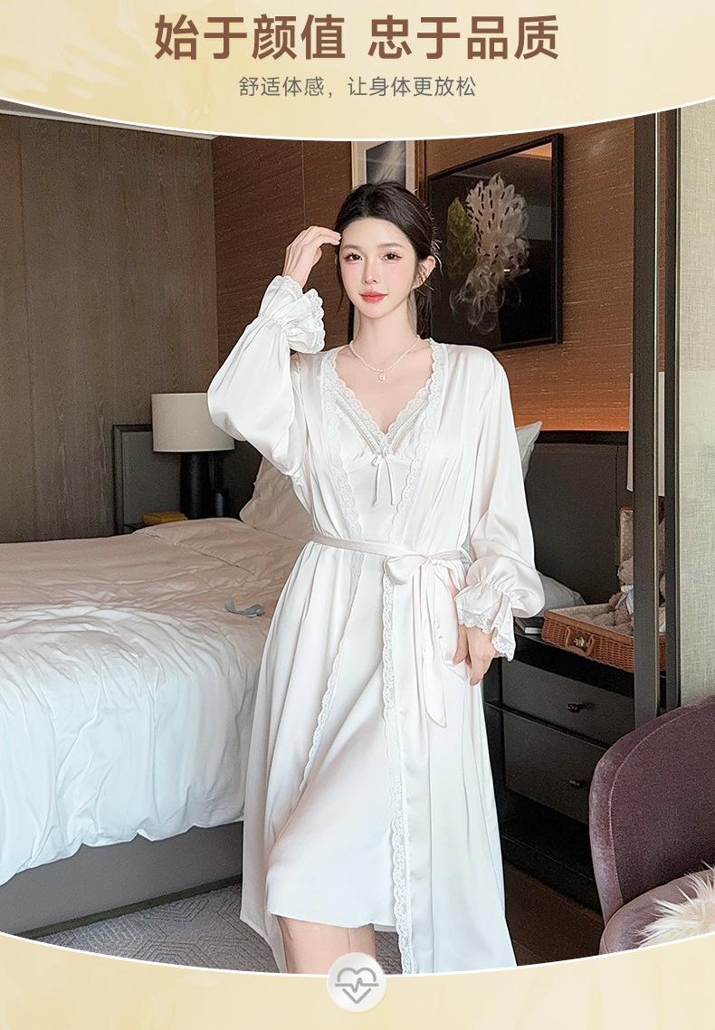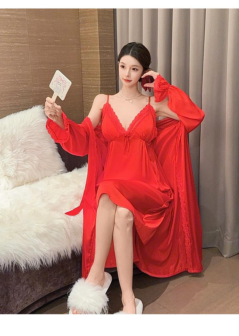 Nuevo Camisón de Tirantes de Seda de Hielo Pijama de Dos Piezas Estilo Francés Superior Encaje Primavera y Verano Ropa de Casa con Almohadilla en el Pecho Venta al por Mayor