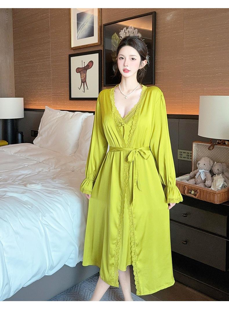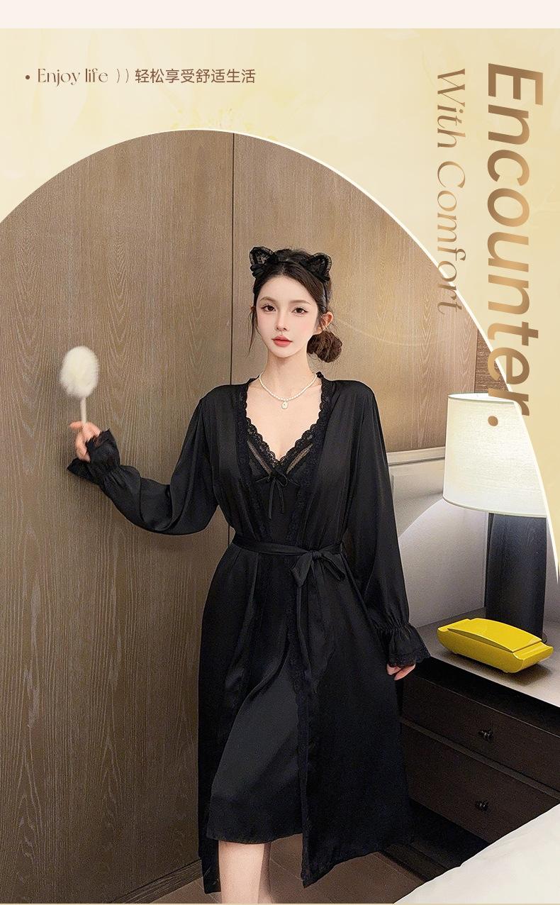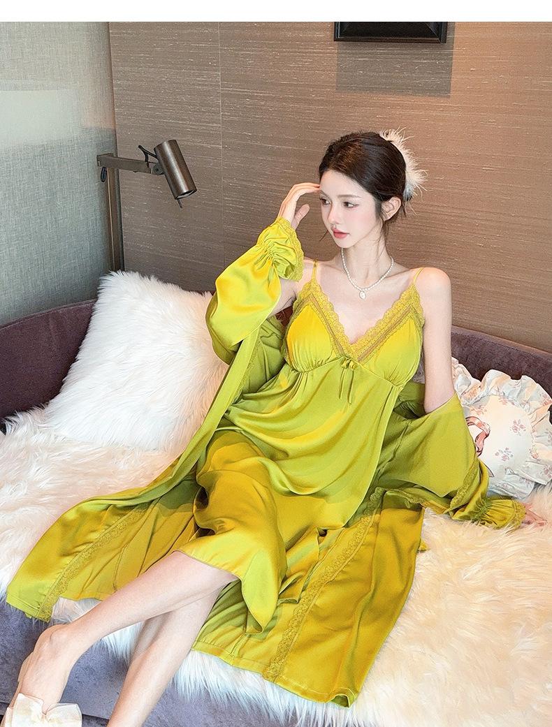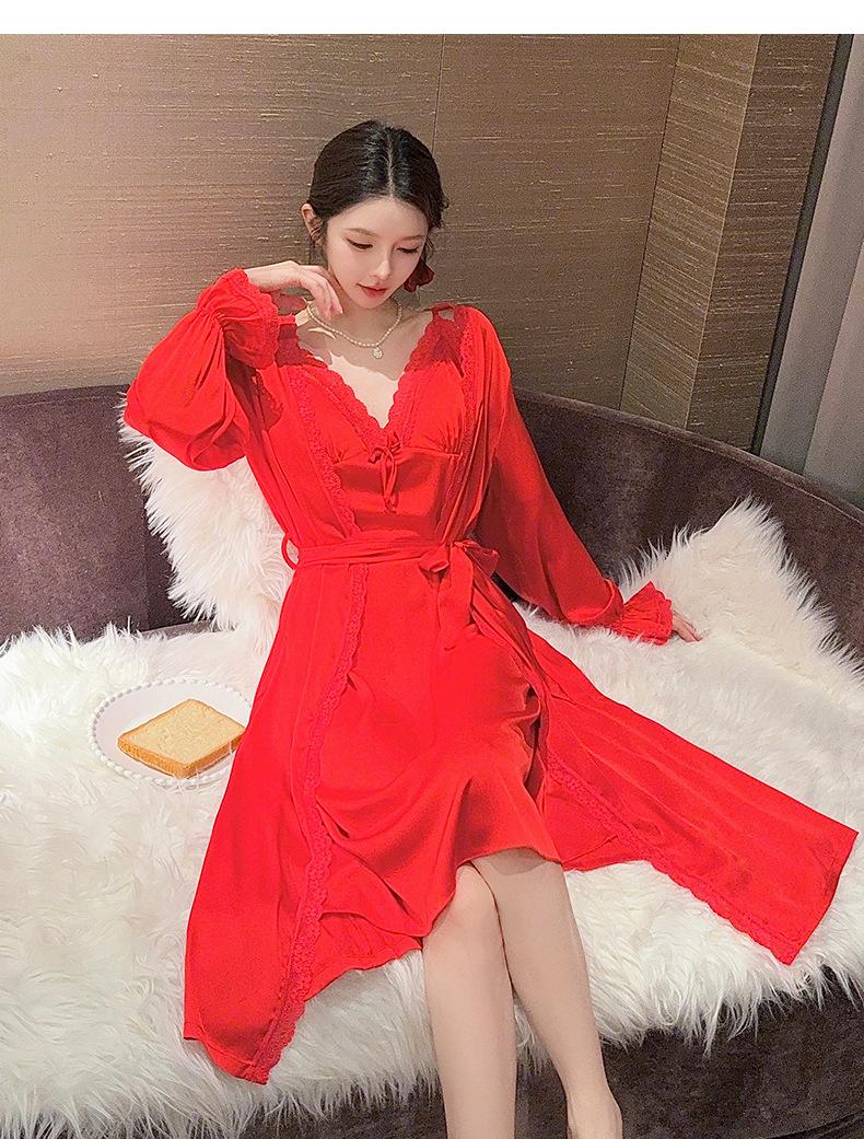 Nuevo Camisón de Tirantes de Seda de Hielo Pijama de Dos Piezas Estilo Francés Superior Encaje Primavera y Verano Ropa de Casa con Almohadilla en el Pecho Venta al por Mayor