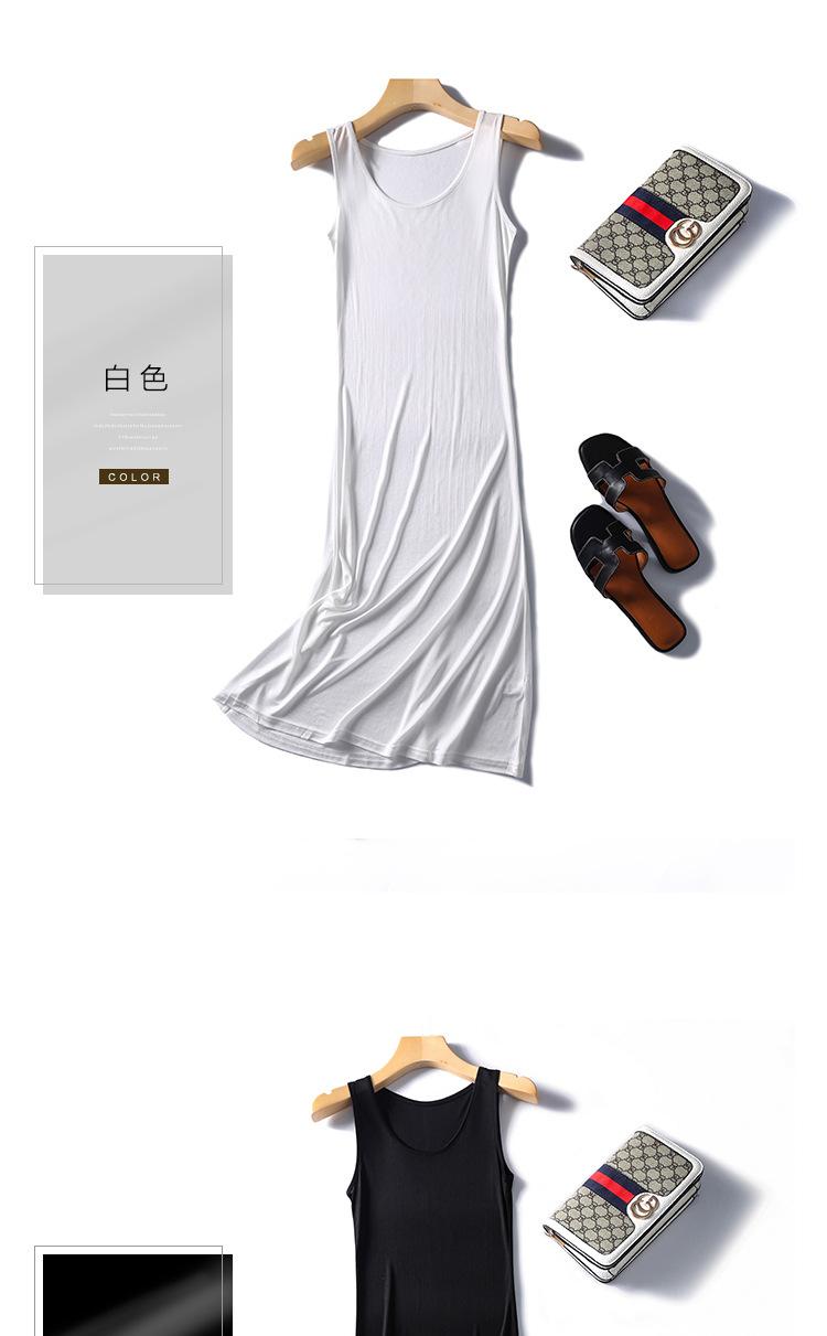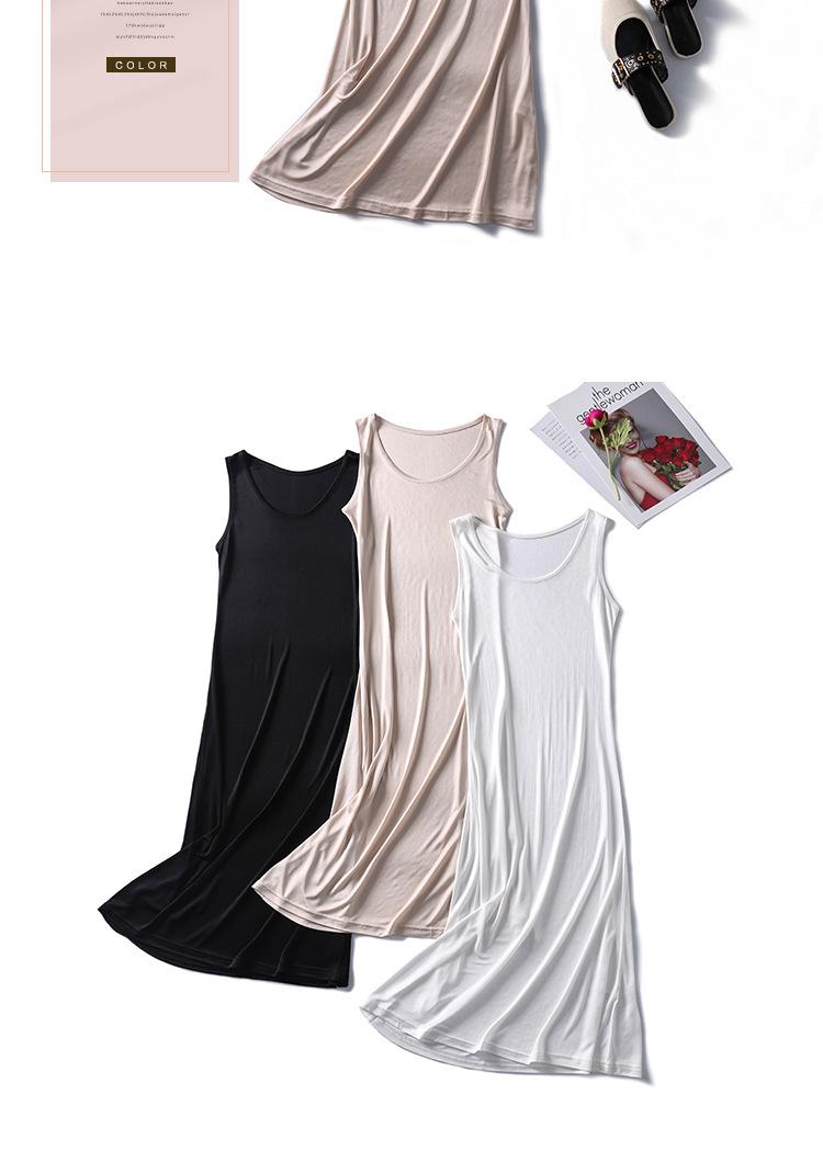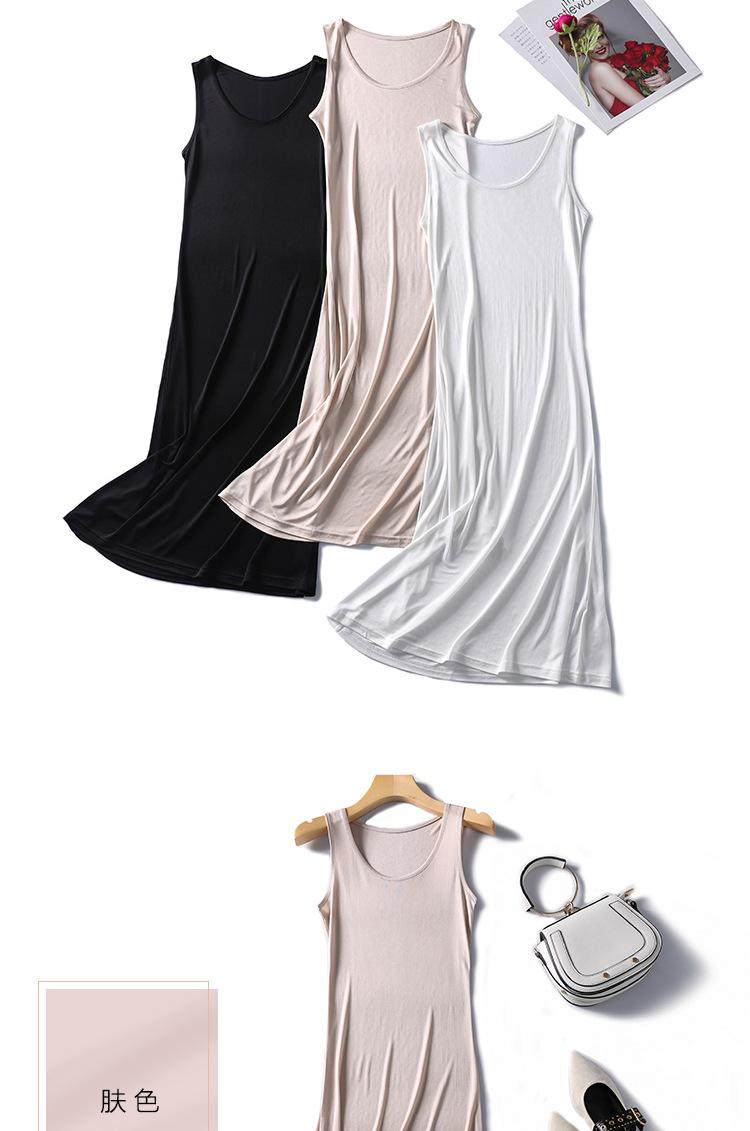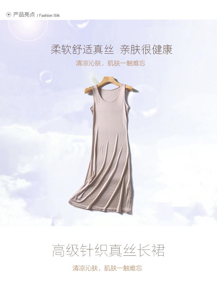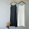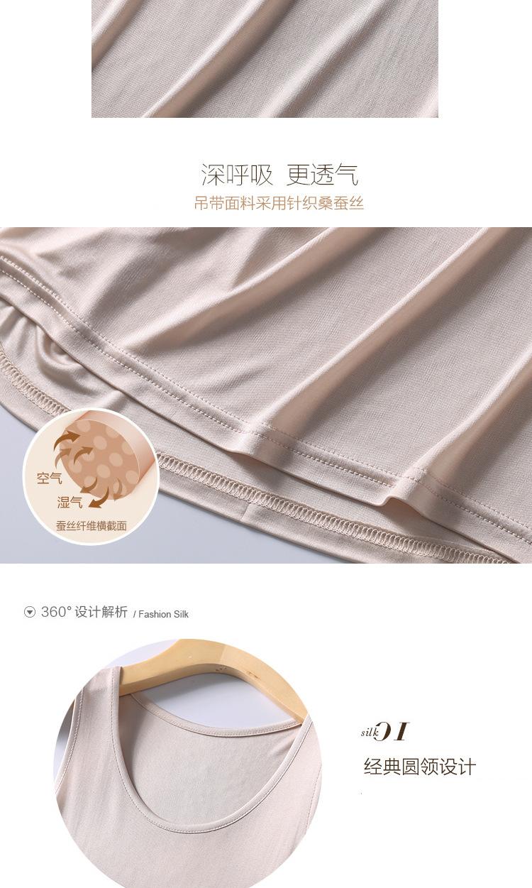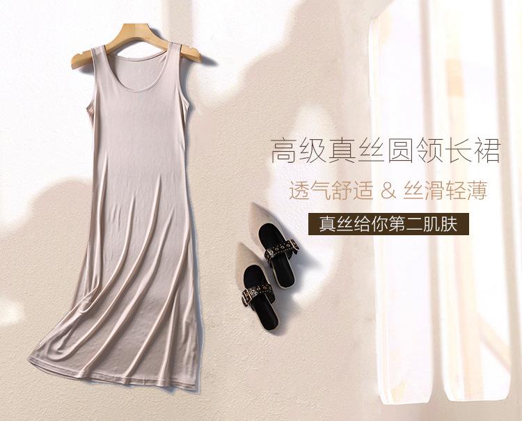 Verano Seda Extra Largo Cuello Redondo Chaleco Base Falda Camisón Seda de Morera Todo Combinable Sin Mangas Enagua Interior para Mujer