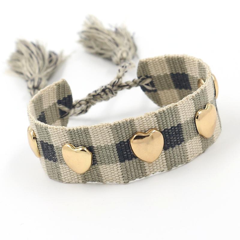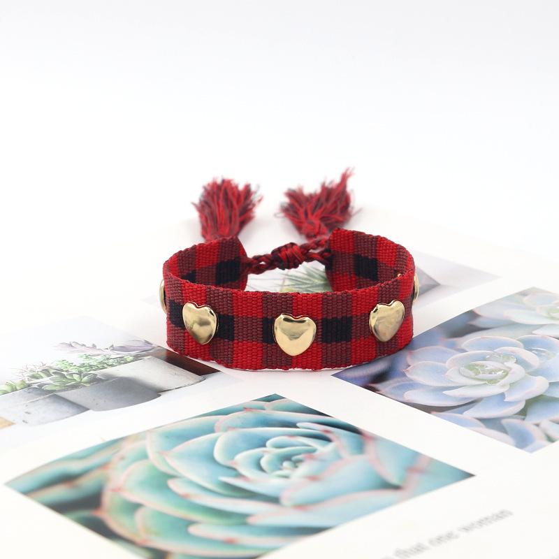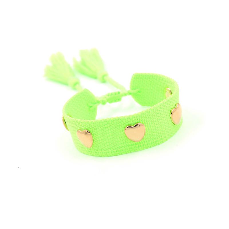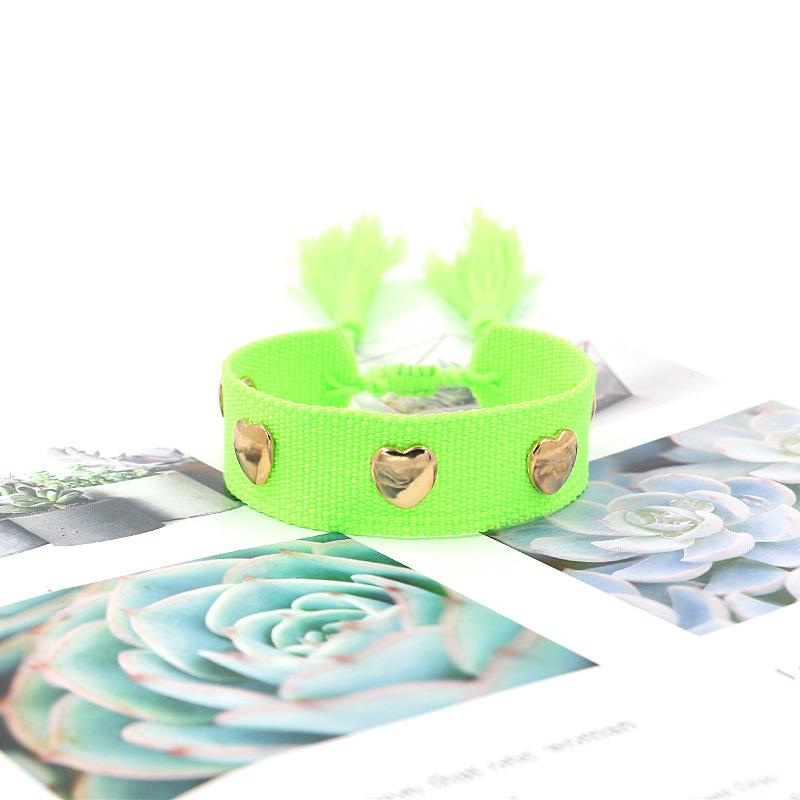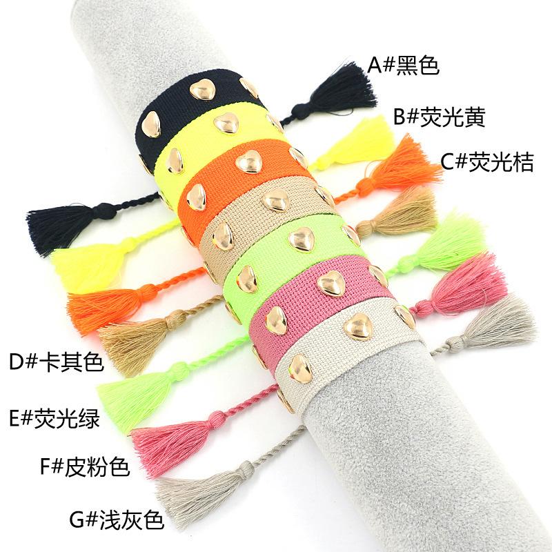 Nombre: Pulsera trenzada decorada con remaches en forma de corazón Estilo: Moda, versátil, personalidad... Material: poliéster Artesanía: hecho a mano Color: negro, amarillo, verde, gris, naranja, rosa, caqui, cuadros negros, cuadros caqui Tamaño: aproximadamente 14 cm de largo, aproximadamente 2 cm de ancho (venta directa de fábrica, tamaño personalizable) Peso: aproximadamente 5 gramos (se puede extraer para ajustar la longitud) Embalaje: 1 pieza/bolsa opp, 12 piezas en una bolsa opp grande ------------------------------------------------------------------------------------------------------- Debido a los diferentes métodos de medición, habrá ligeras diferencias en tamaño y peso, lo que no es un problema de calidad del producto. |