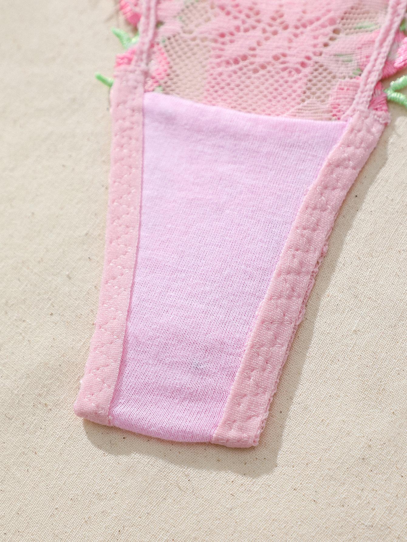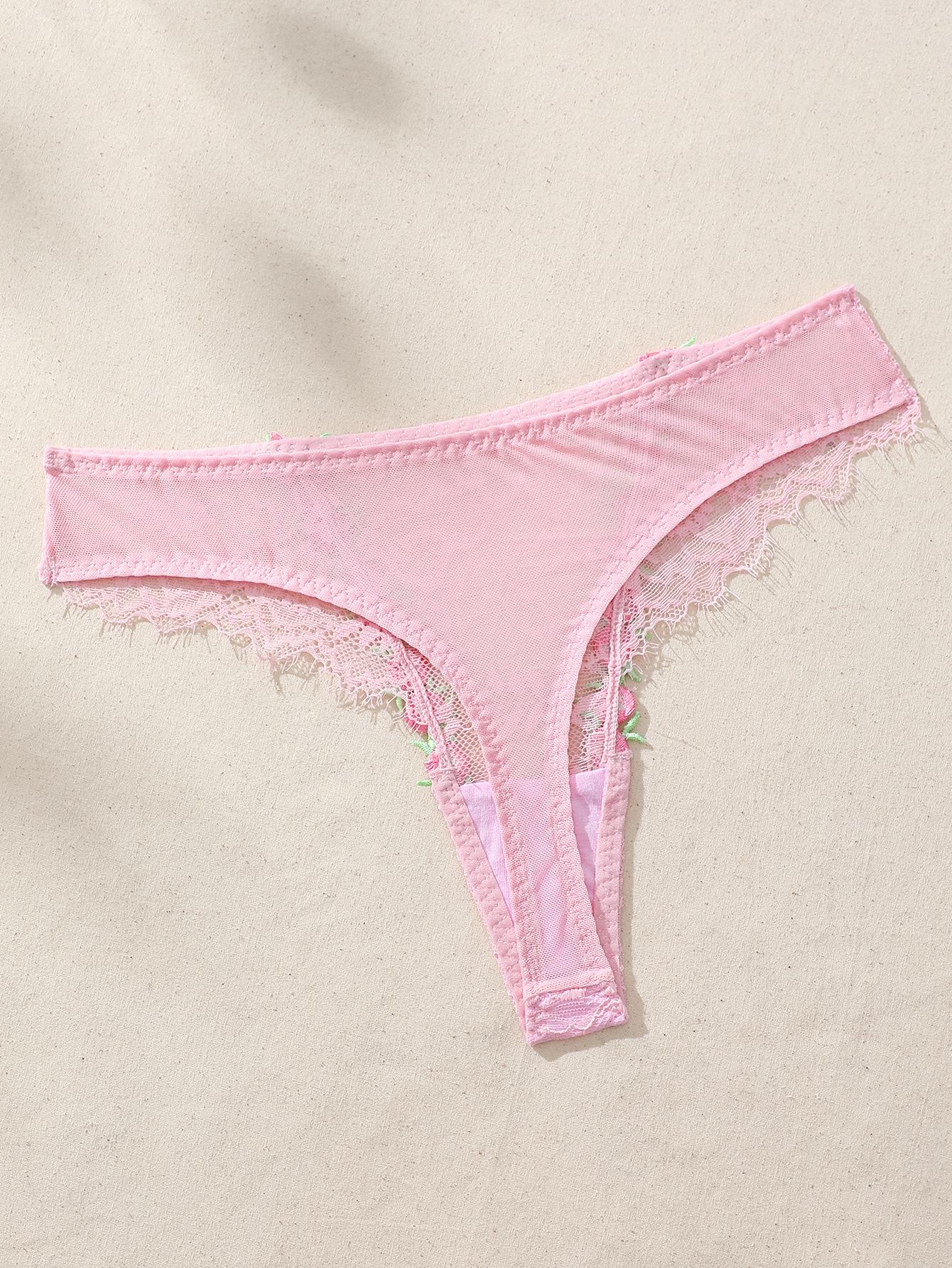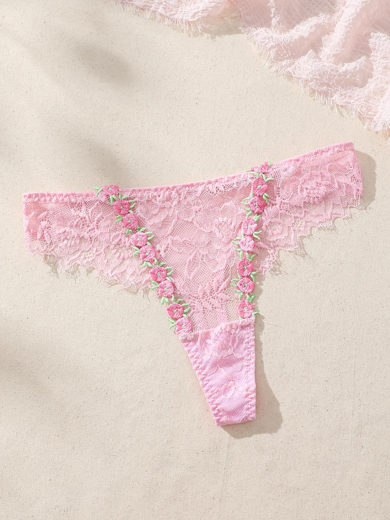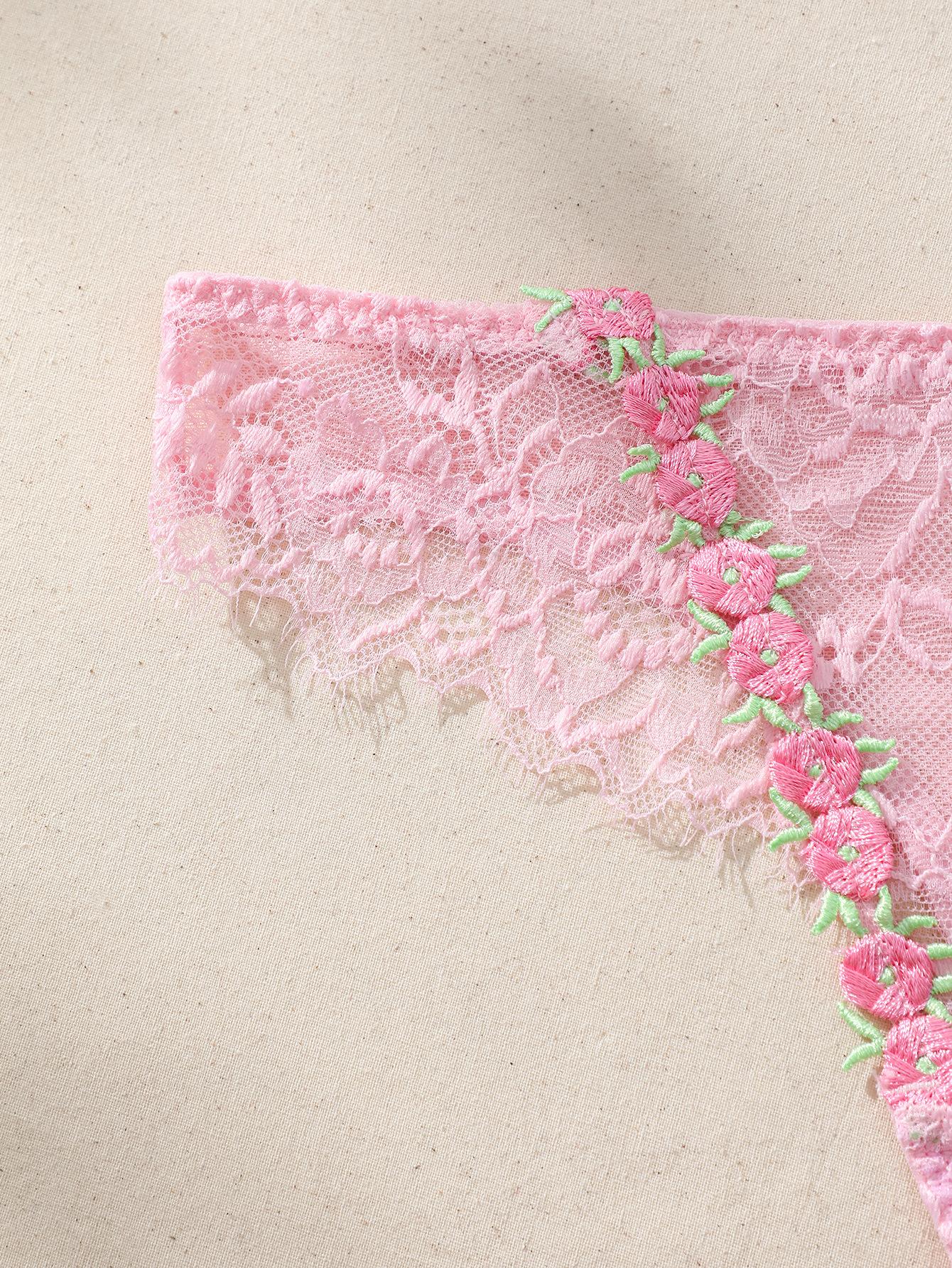 Ropa Interior Transfronteriza para Mujer Verano Delgada Encaje Calado Flor Rosa Cintura Baja Cómoda Transpirable Sexy Calzones para Mujer