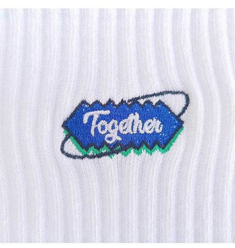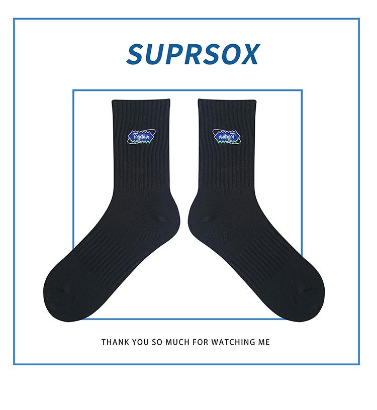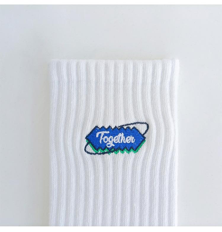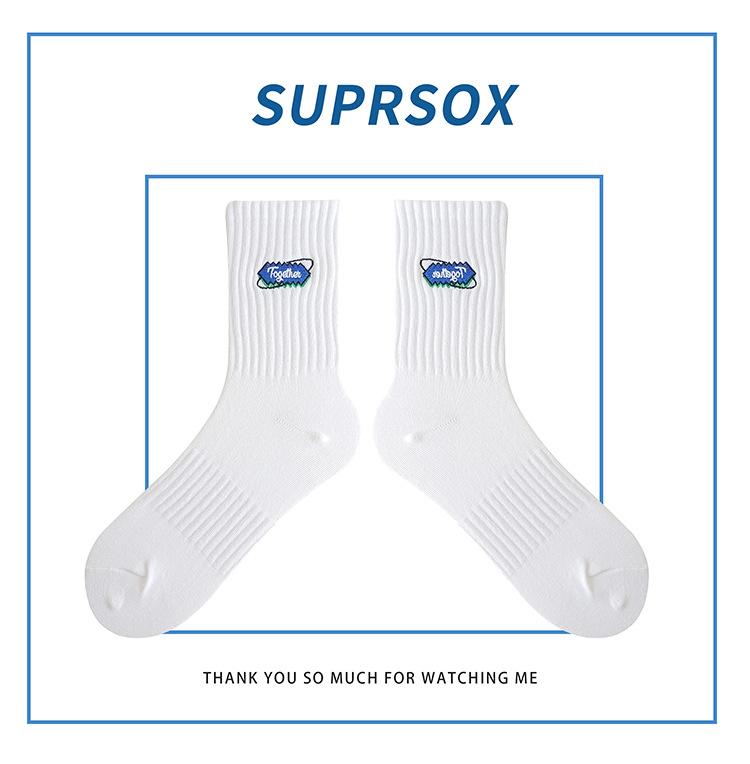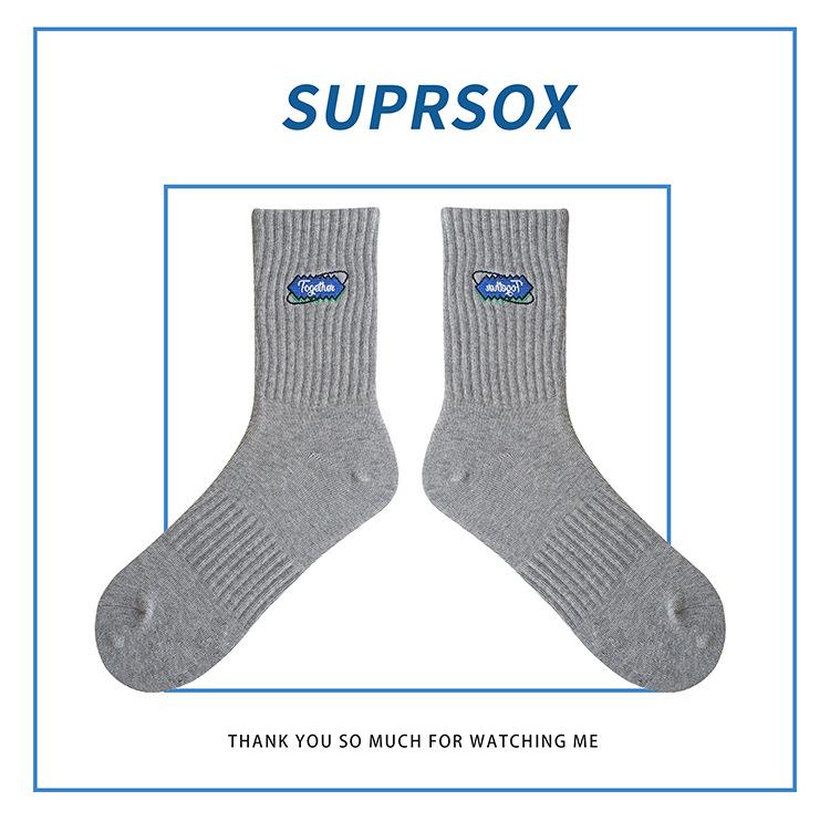 Calcetines de primavera y verano para hombre, con personalidad, estilo retro, bordados, deportivos, de algodón, de color liso, con tiras en las axilas, de moda, de longitud media, para estudiantes y mujeres.
