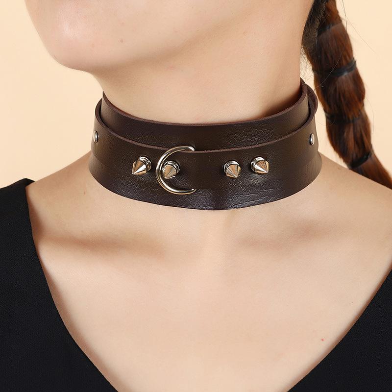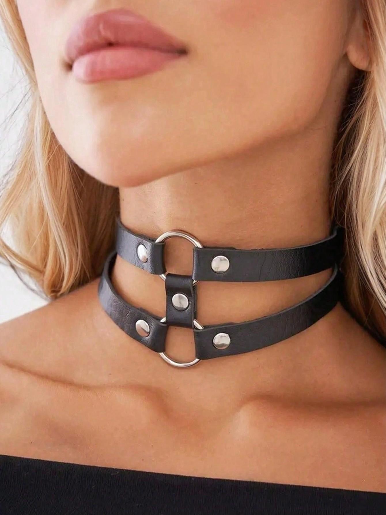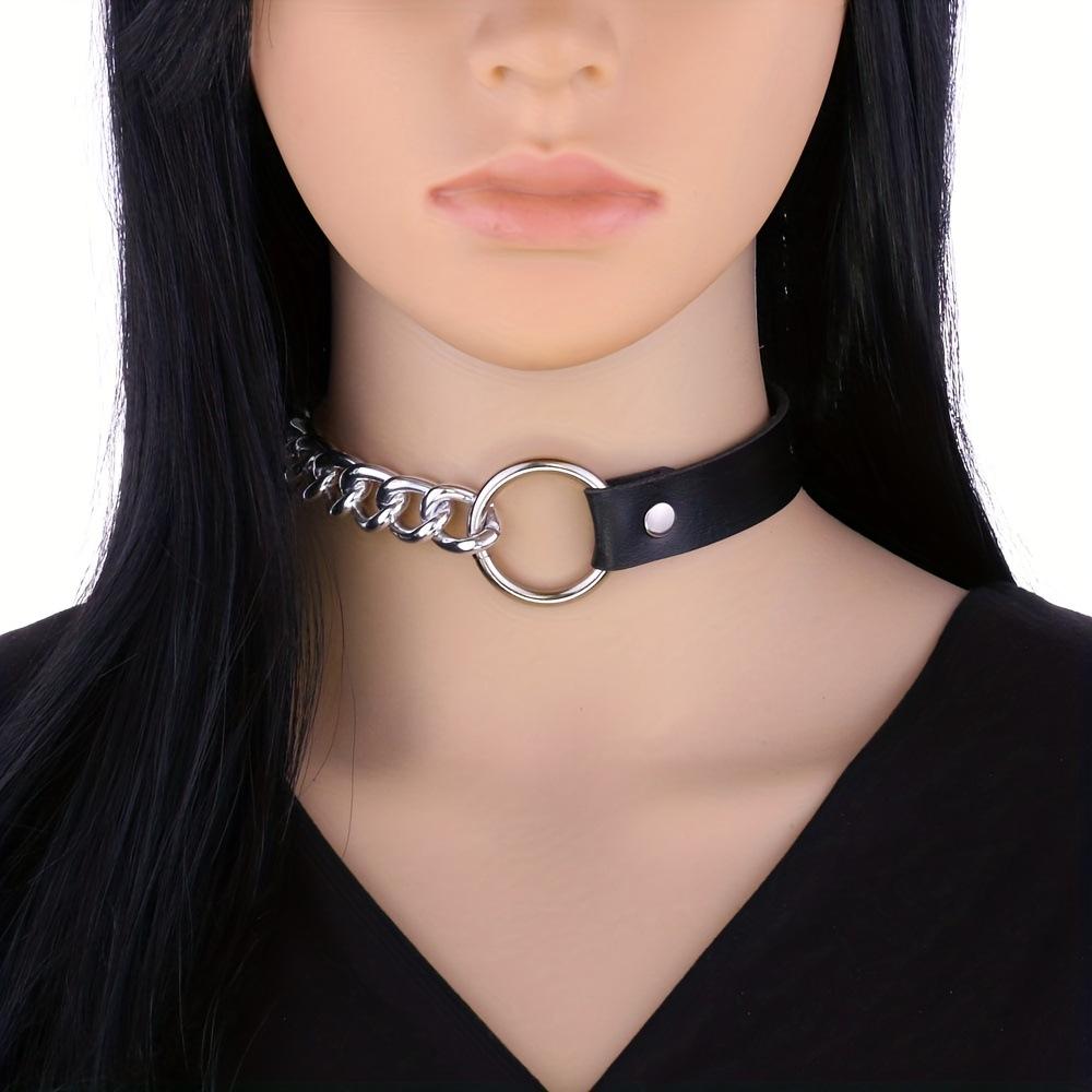 Collar con cuello en forma de O, varios estilos, estilo punk, gótico, de cuero sintético, con correa para el cuello y cadena para clavícula, disponible en lotes.