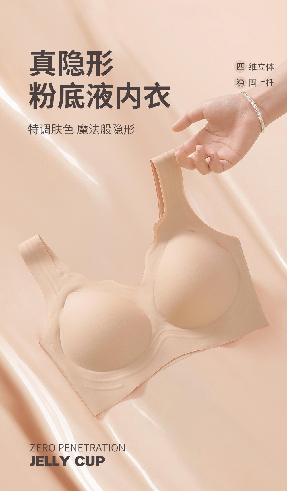 Base Líquida Ropa Interior Invisible Sin Costuras para Mujer Soporte Suave Anticaída Pecho Grande Pequeño Push-up Chaleco Sujetador Hermoso de Espalda