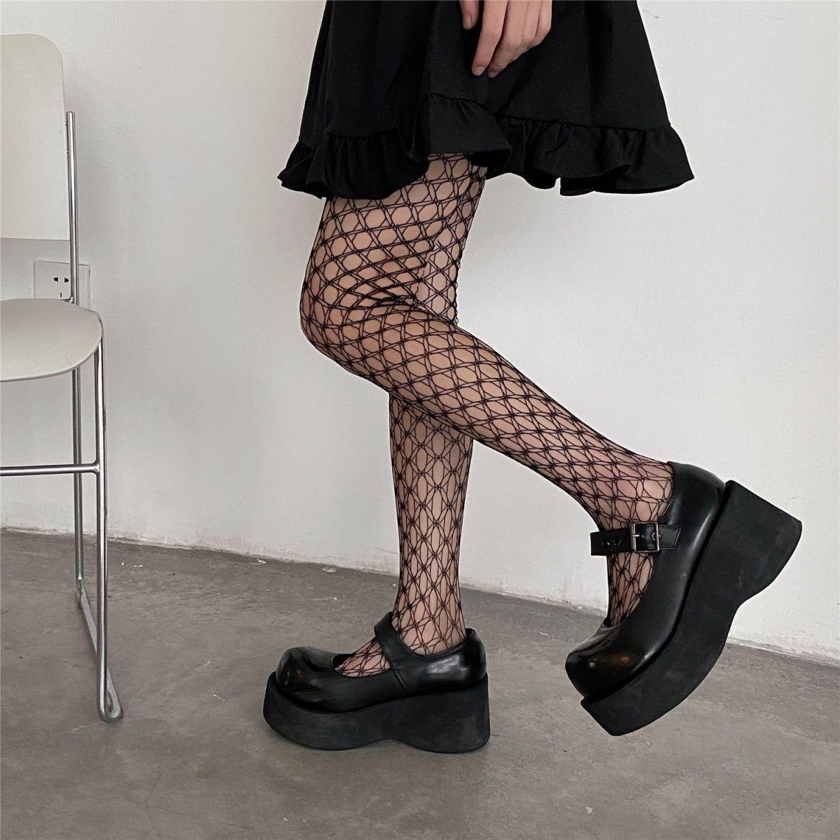 Compra Medias de red de malla grande color caramelo jk medias de círculo hueco lolita pantimedias nicho medias de red de chica hot al por mayor en Joom.pro