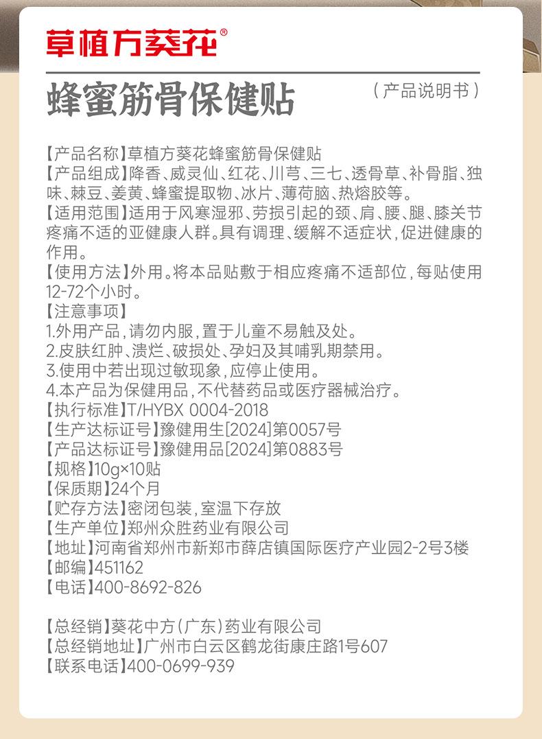 Caoshizhi fangkuihua-honey muscle and bone health patch 5 patches/bag