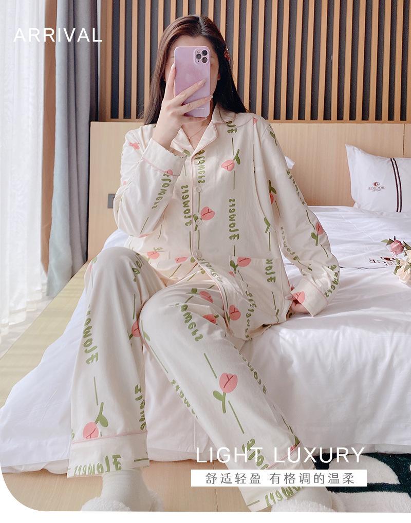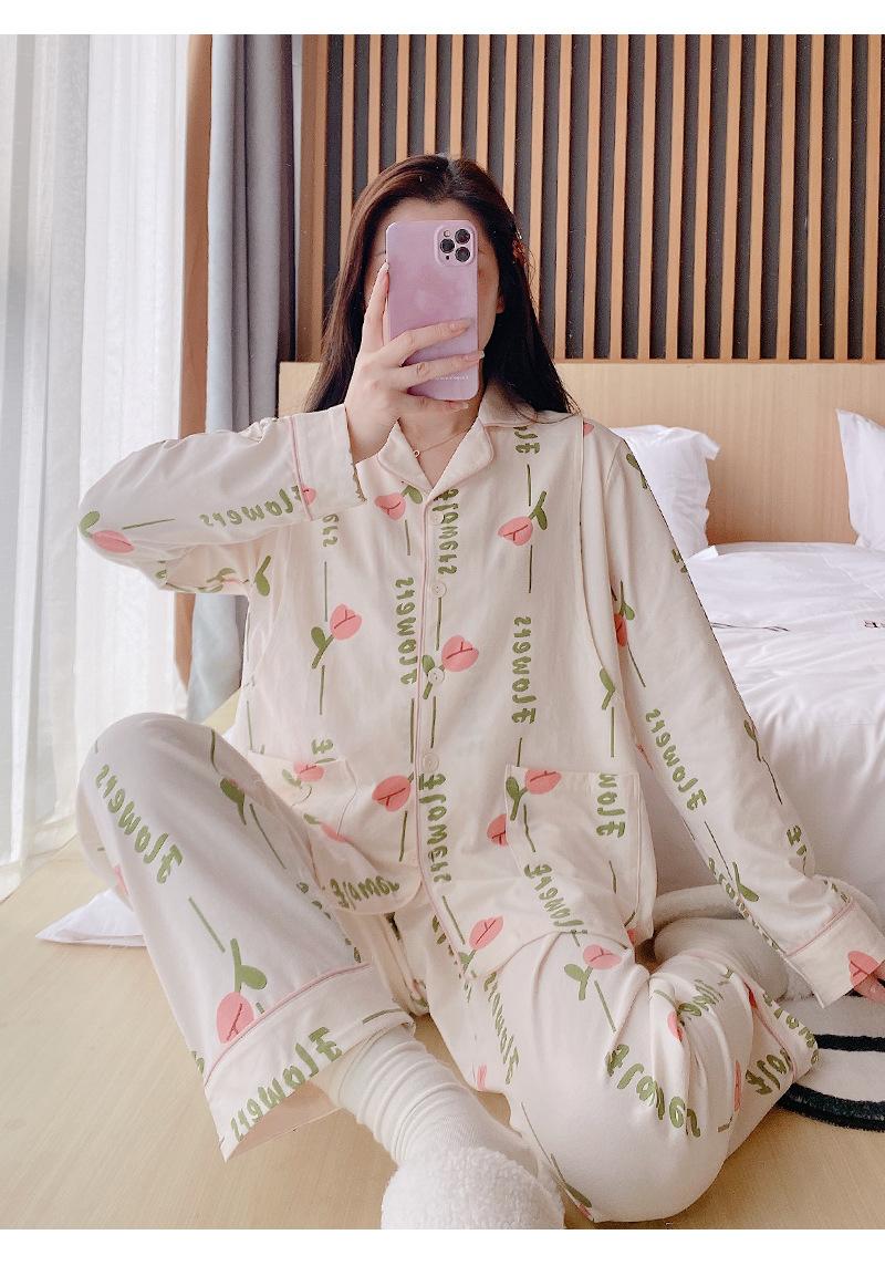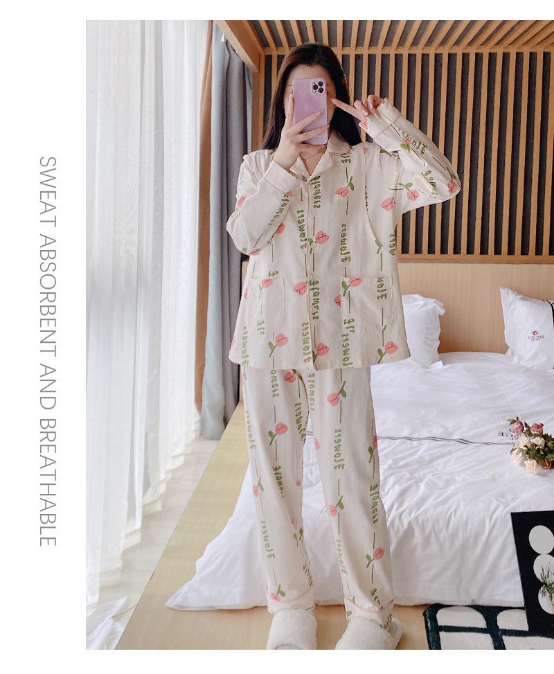 Pijamas para Mujeres Embarazadas Lactancia Algodón Lycra Primavera y Verano Conjunto de Ropa para el Hogar para el Embarazo Bendición Embarazo Postparto Confinamiento Ropa