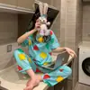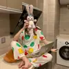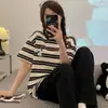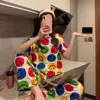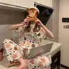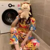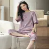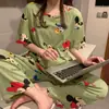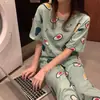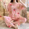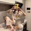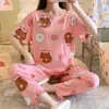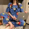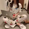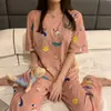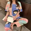 Pijama de Verano para Mujer Pantalones de Manga Corta Casual Fino Dibujos Animados Rayado Jersey Conjunto de Ropa de Casa de Alta Gama para Mujer