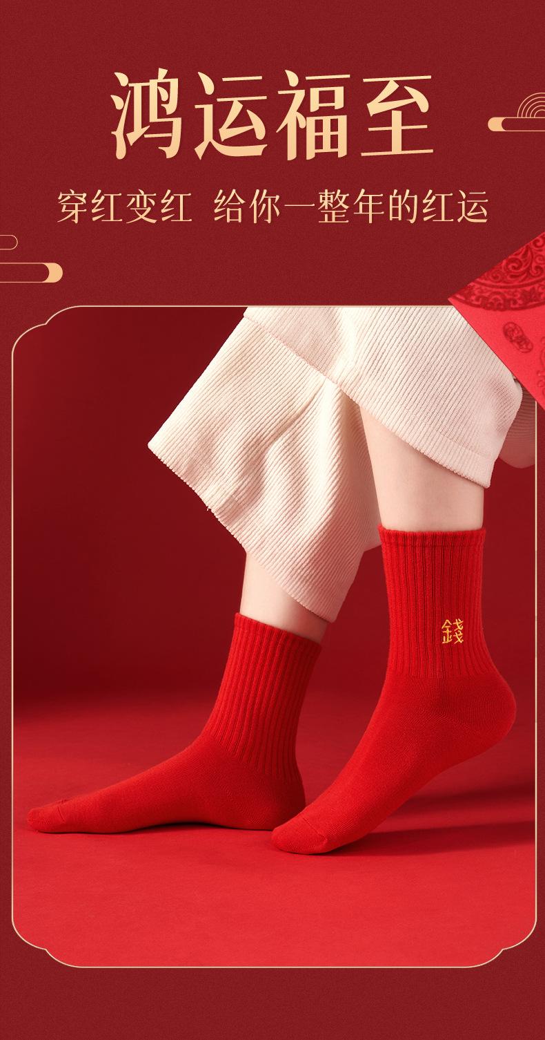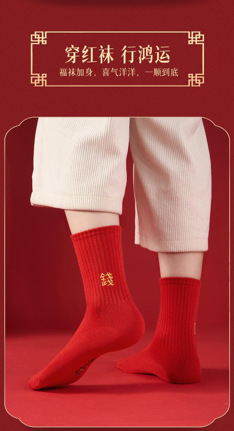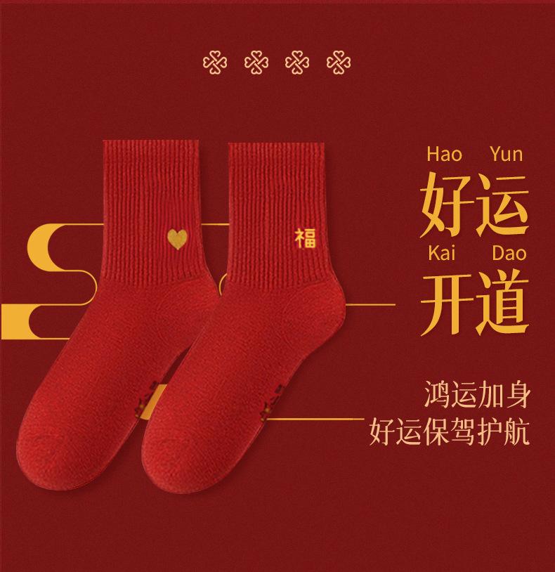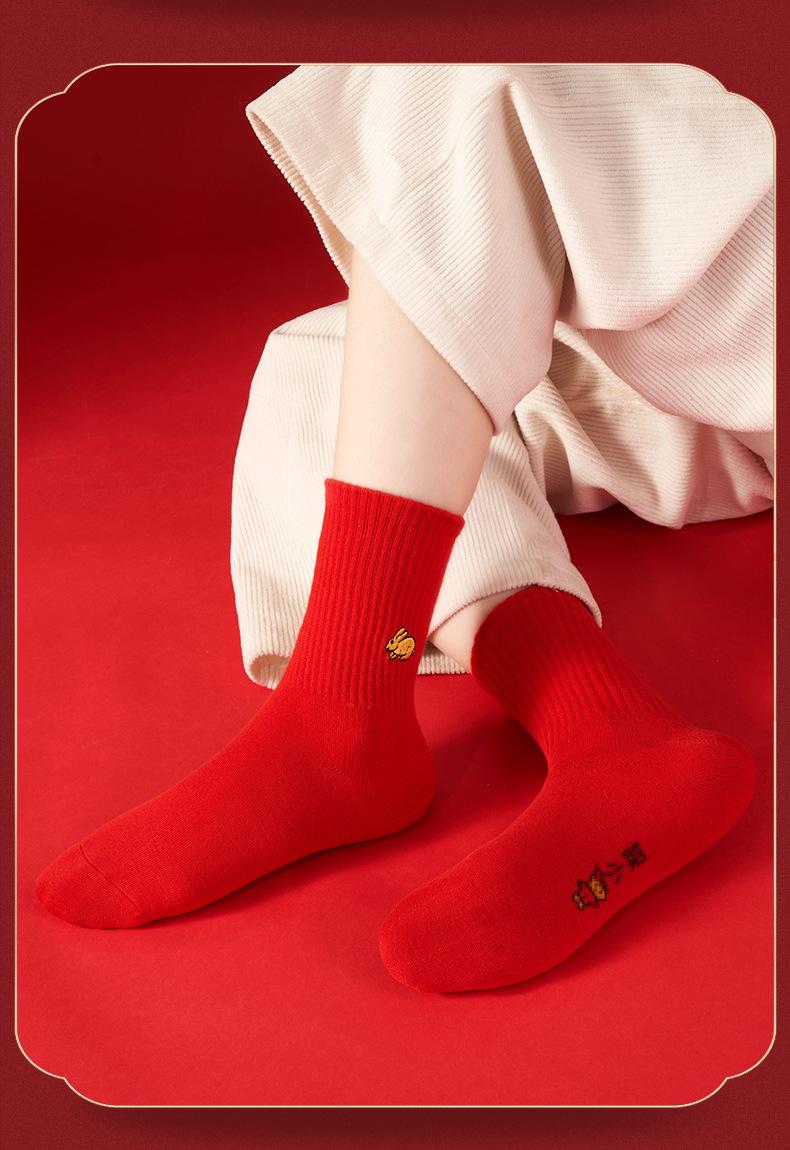 Calcetines de Media Caña Bordados Año del Zodíaco, Boda Roja Grande, Año del Dragón, Año Nuevo, Buena Suerte, Riqueza, Calcetines de Algodón de Fábrica Zhuji