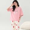 Pijama Nuevo para Mujer Verano Algodón Puro Manga Corta Pantalones Jersey Cuello Redondo Dulce y Lindo Set de Ropa para Casa