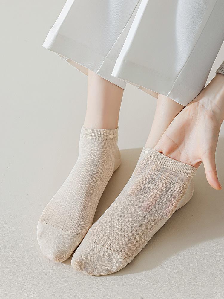 Calcetines Tobilleros de Malla Hueca de Modal Ultrafinos para Primavera/Verano para Mujer, Color Sólido, Simples Básicos, Verano, Calcetines Bajos para Mujer