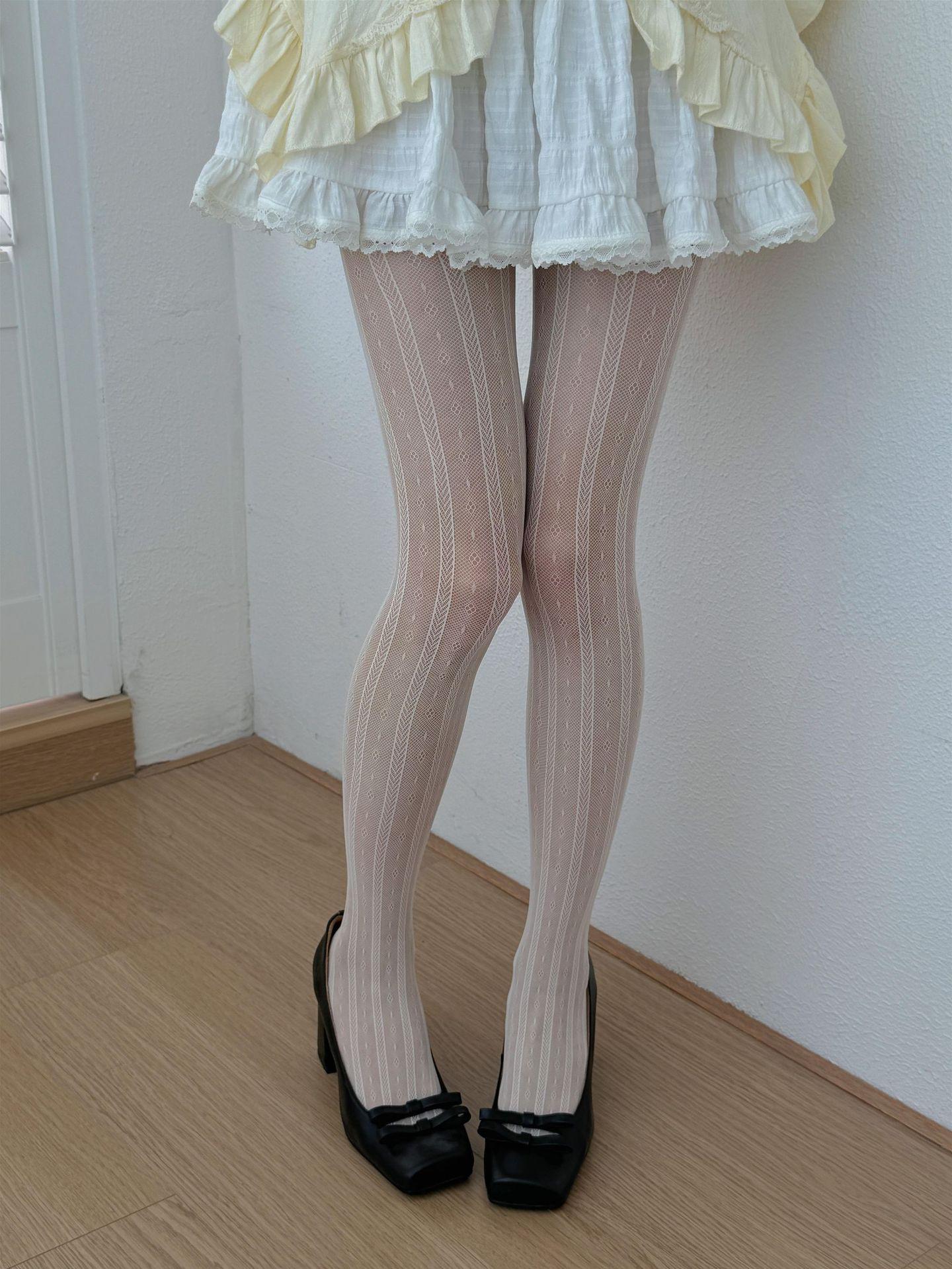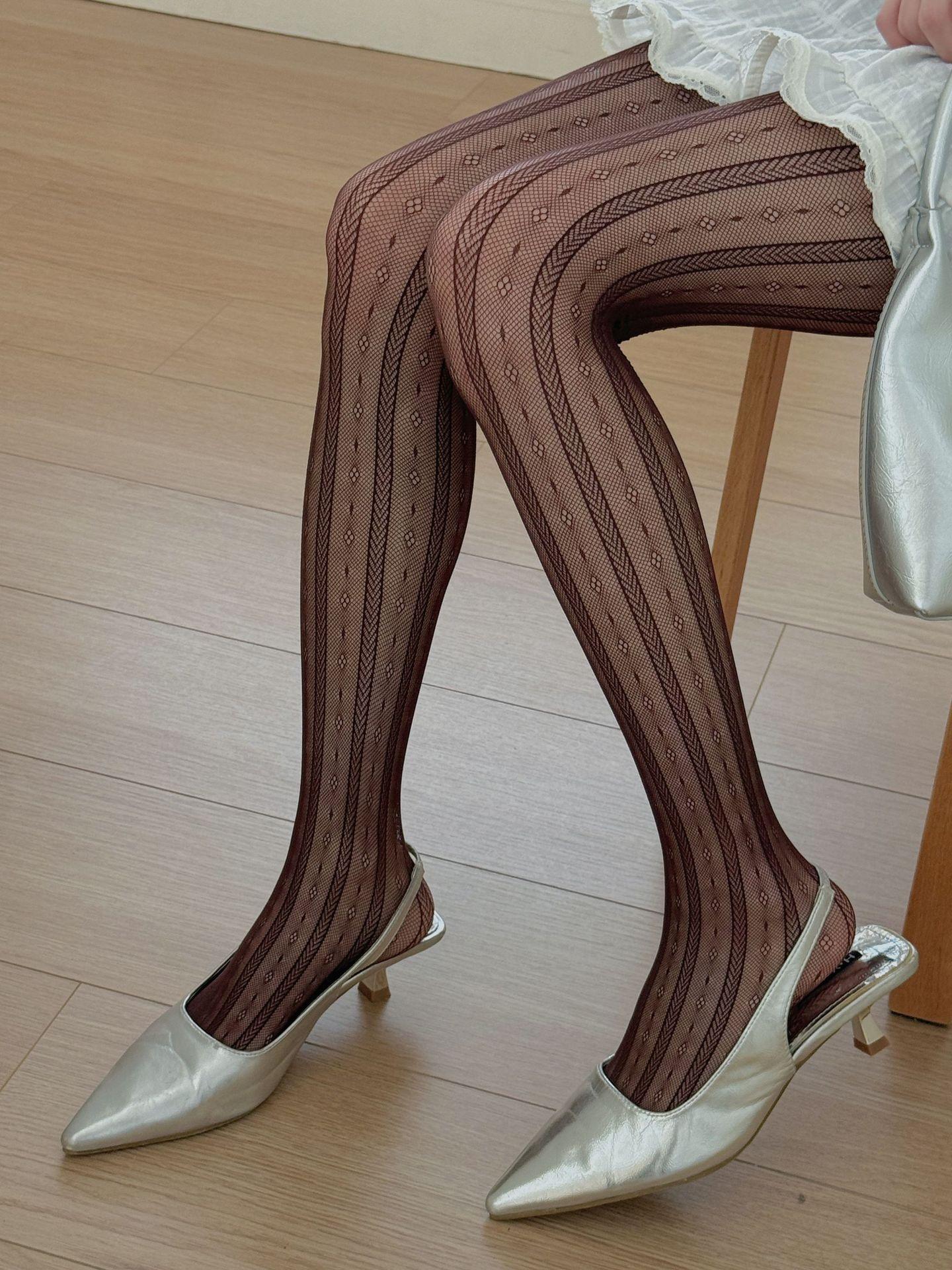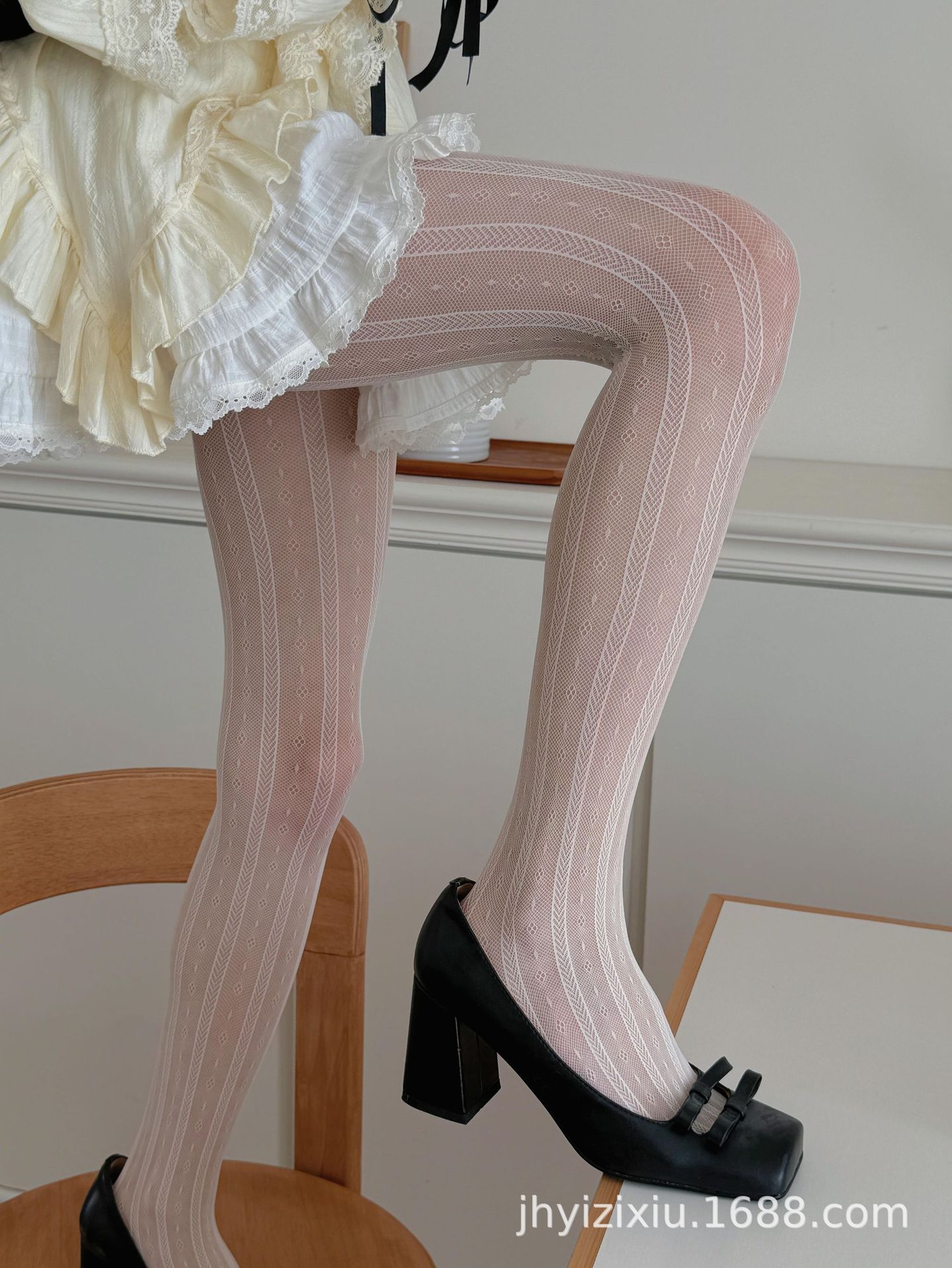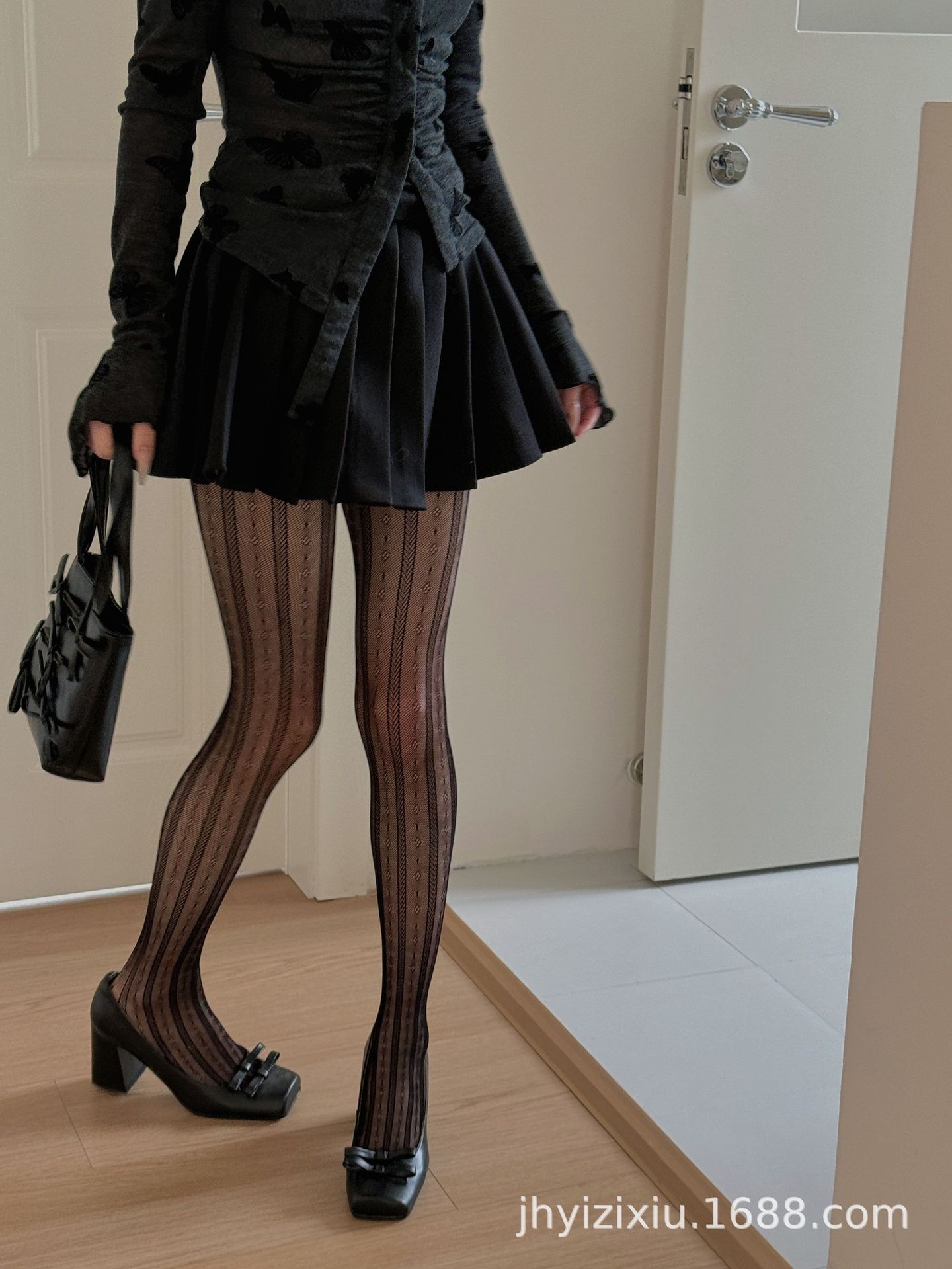 Primavera y Verano Nuevo Raya Vertical Calado Flor Pequeña Medias de Red Pantalones Finos Medias de Red Medias de Red Negras