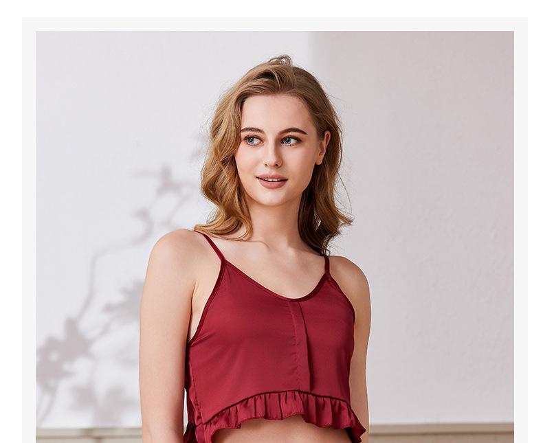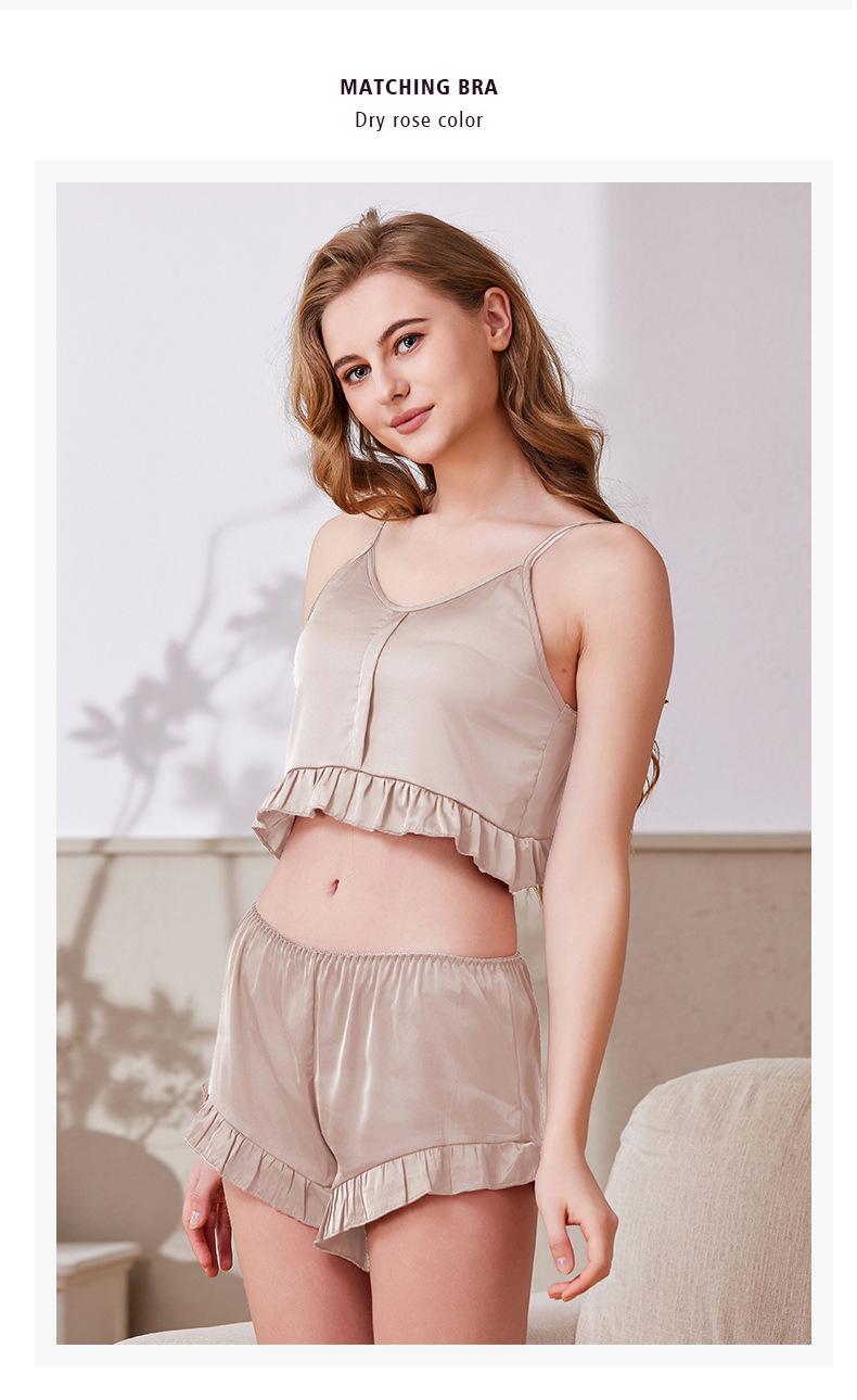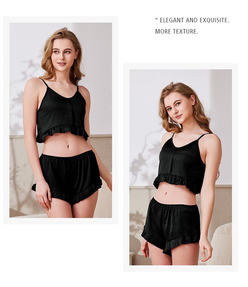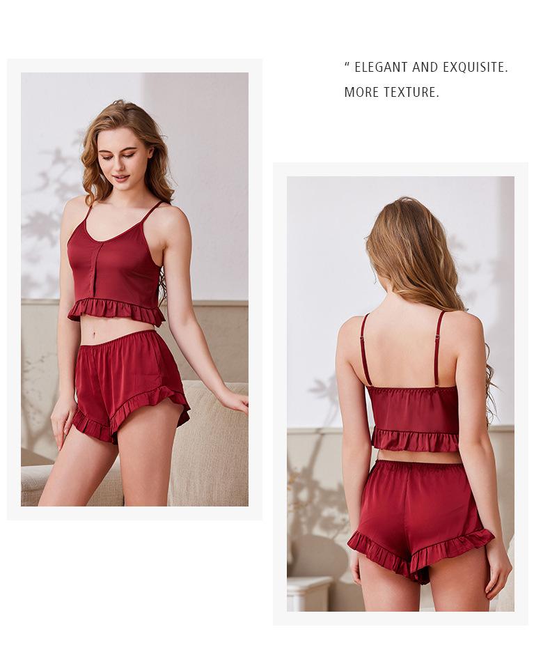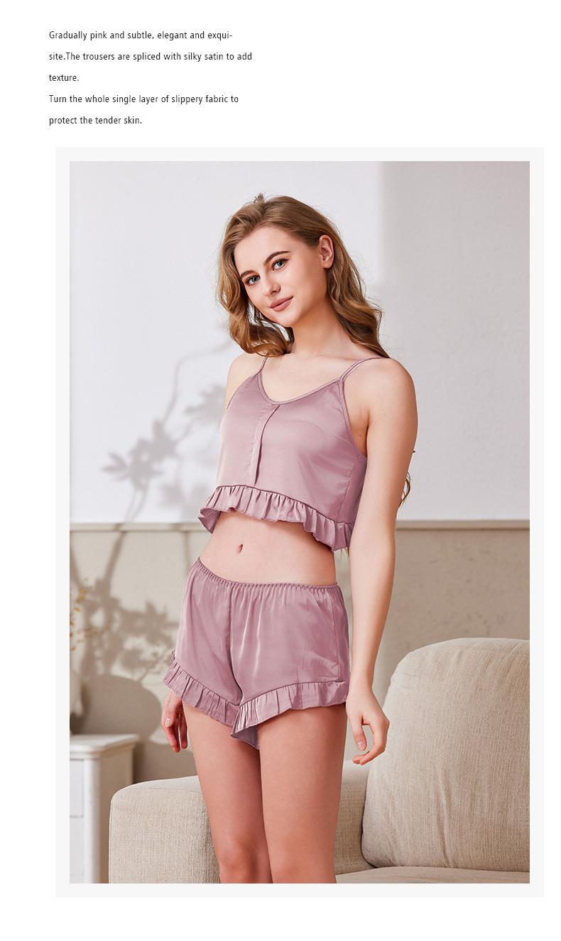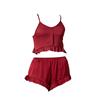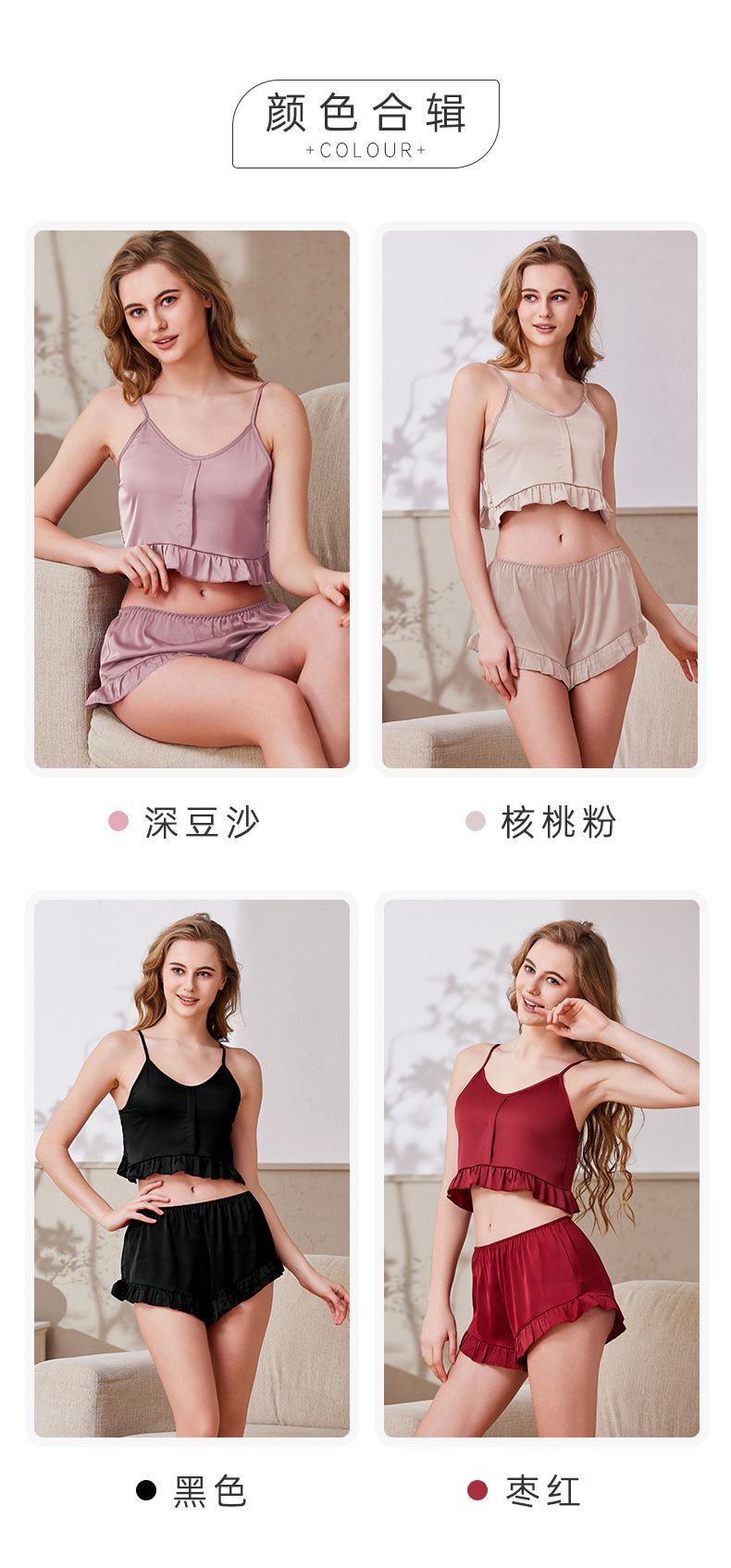 Pijamas de gran venta europeos y americanos para mujer, pantalones cortos sexis con tirantes, pijamas de dos piezas, traje de mujer, color sólido, seda helada, fresco