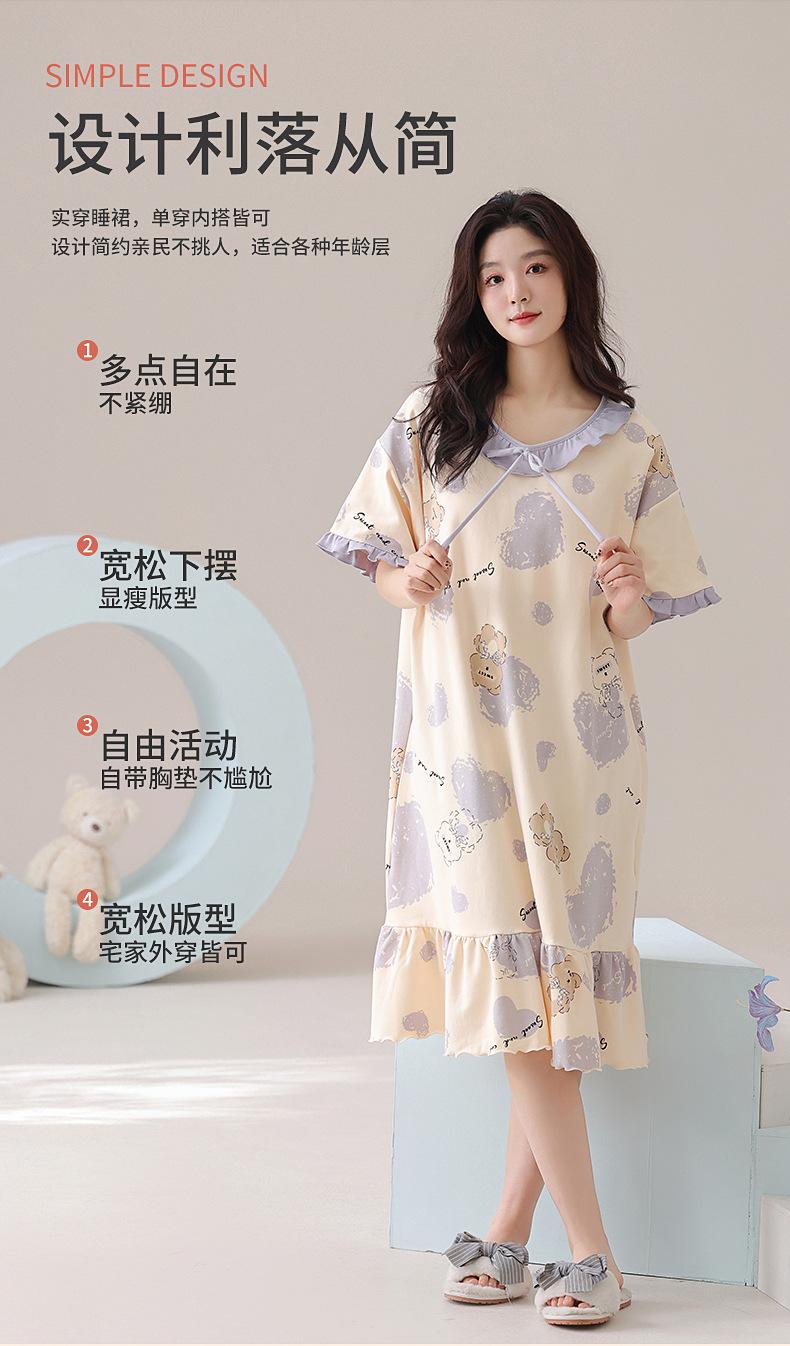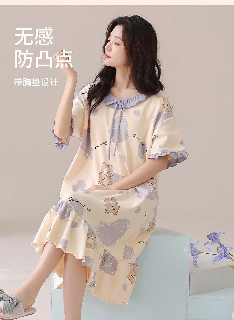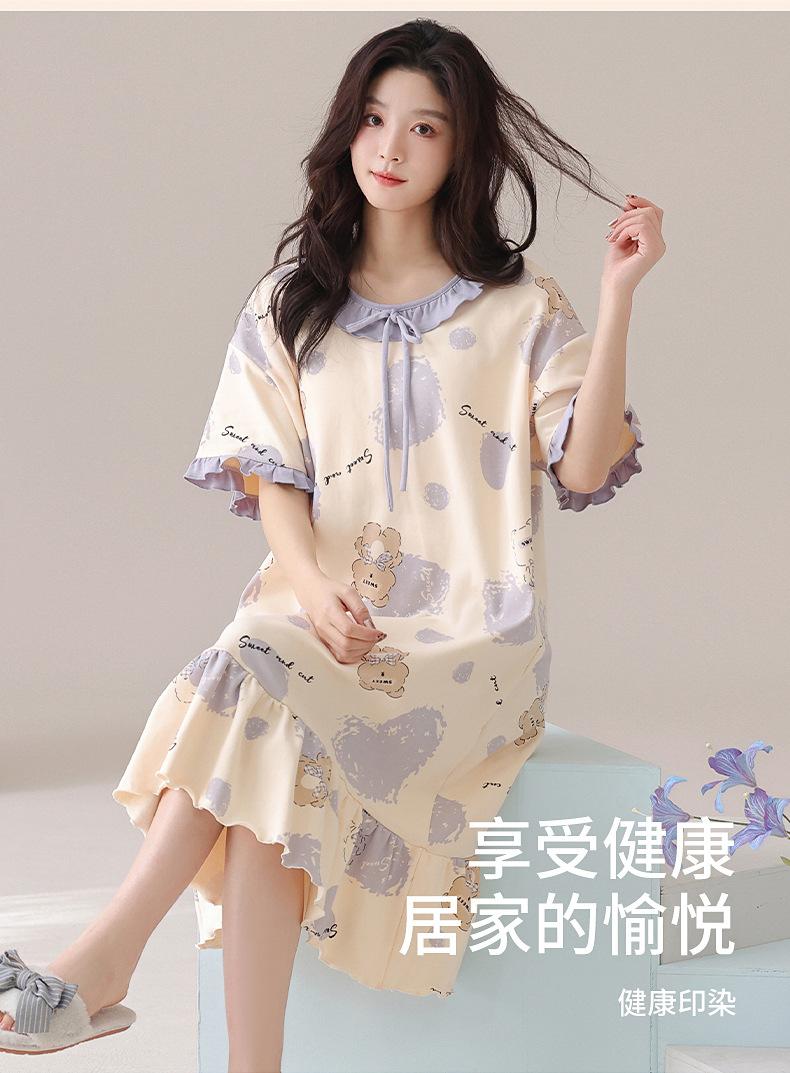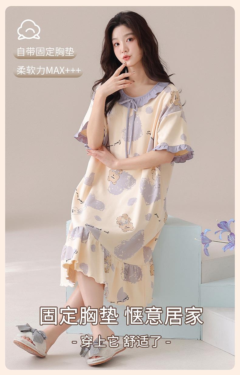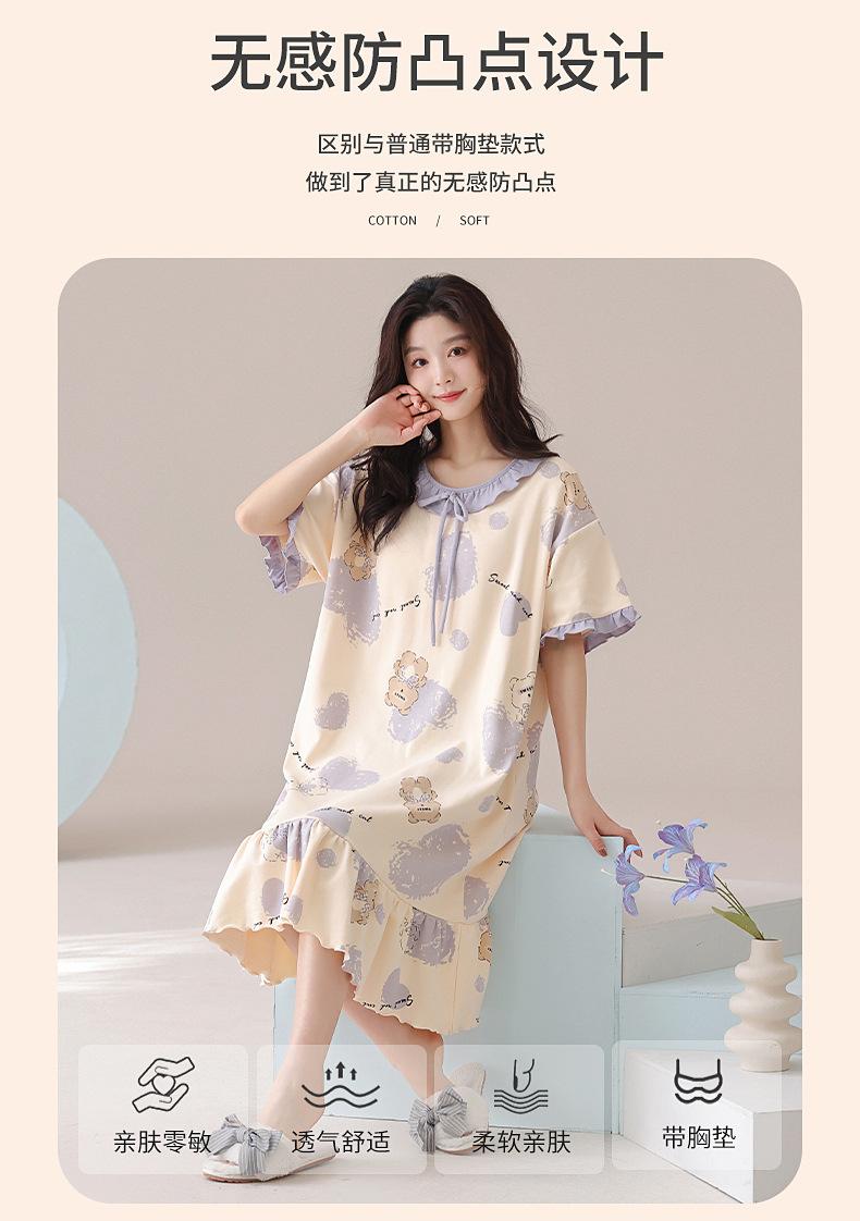 Compra Camisón de algodón puro para mujer, ropa de casa de verano de manga corta, pijama estilo princesa con almohadilla para el pecho, primavera y otoño 2025 al por mayor en Joom.pro