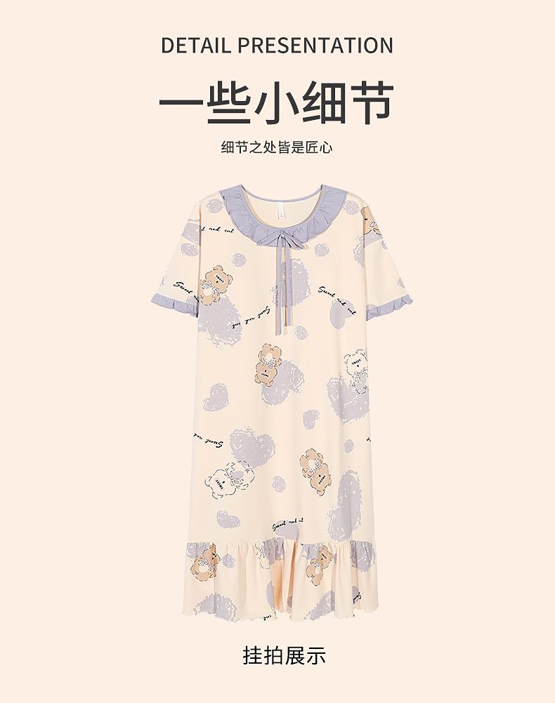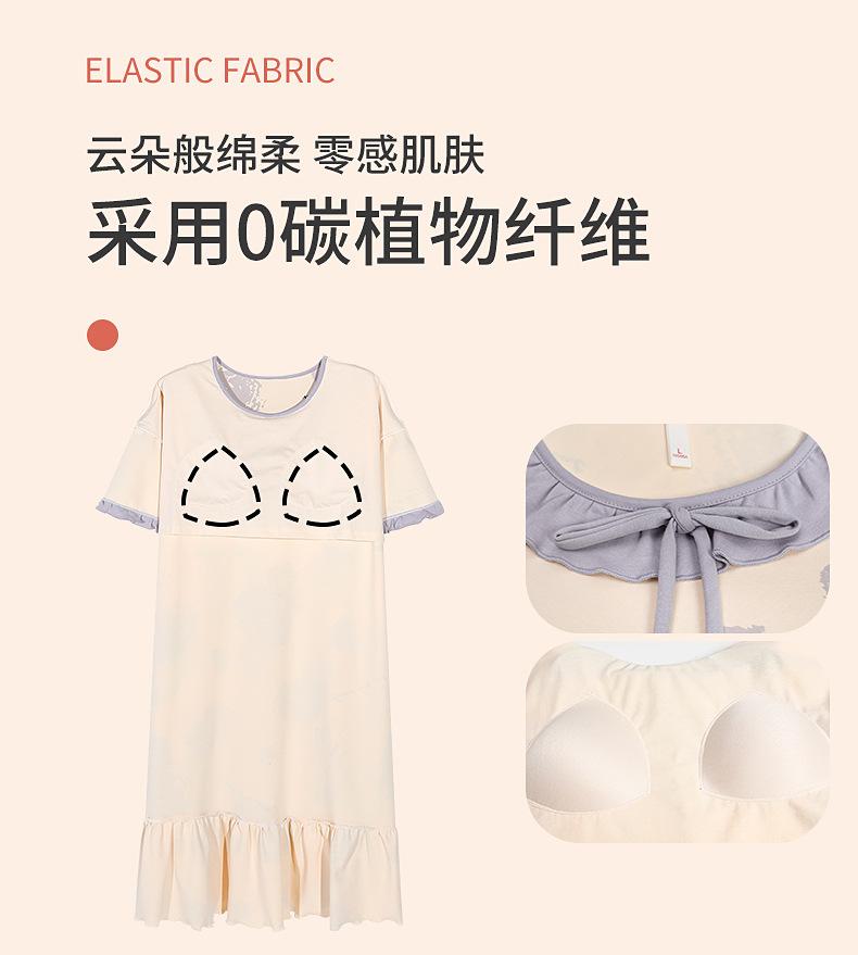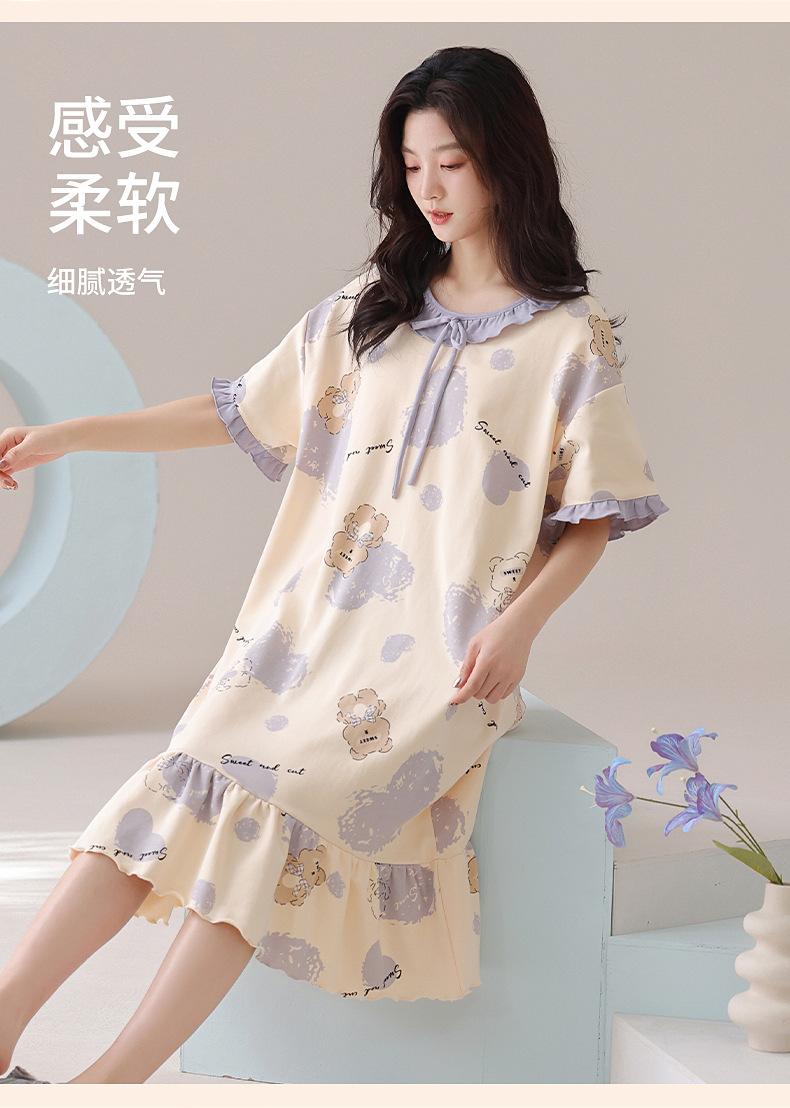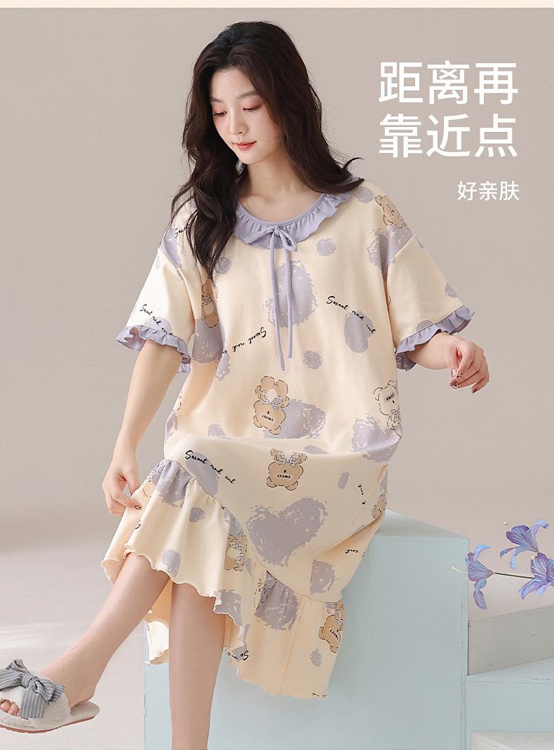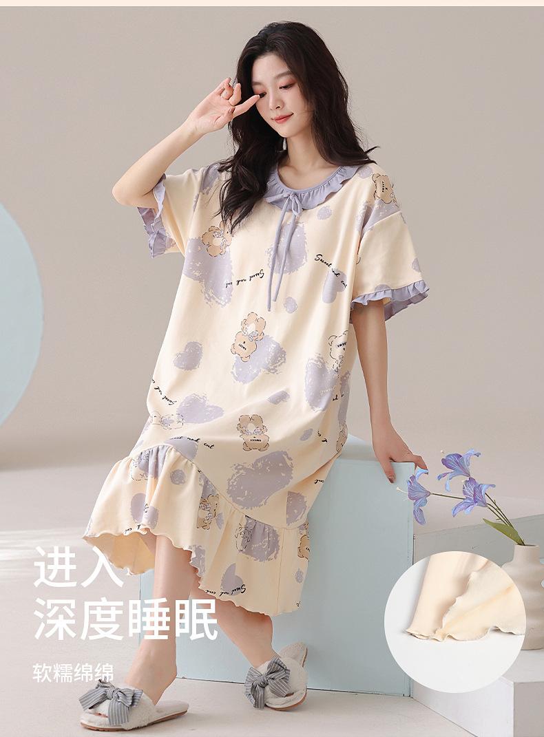 Compra Camisón de algodón puro para mujer, ropa de casa de verano de manga corta, pijama estilo princesa con almohadilla para el pecho, primavera y otoño 2025 al por mayor en Joom.pro