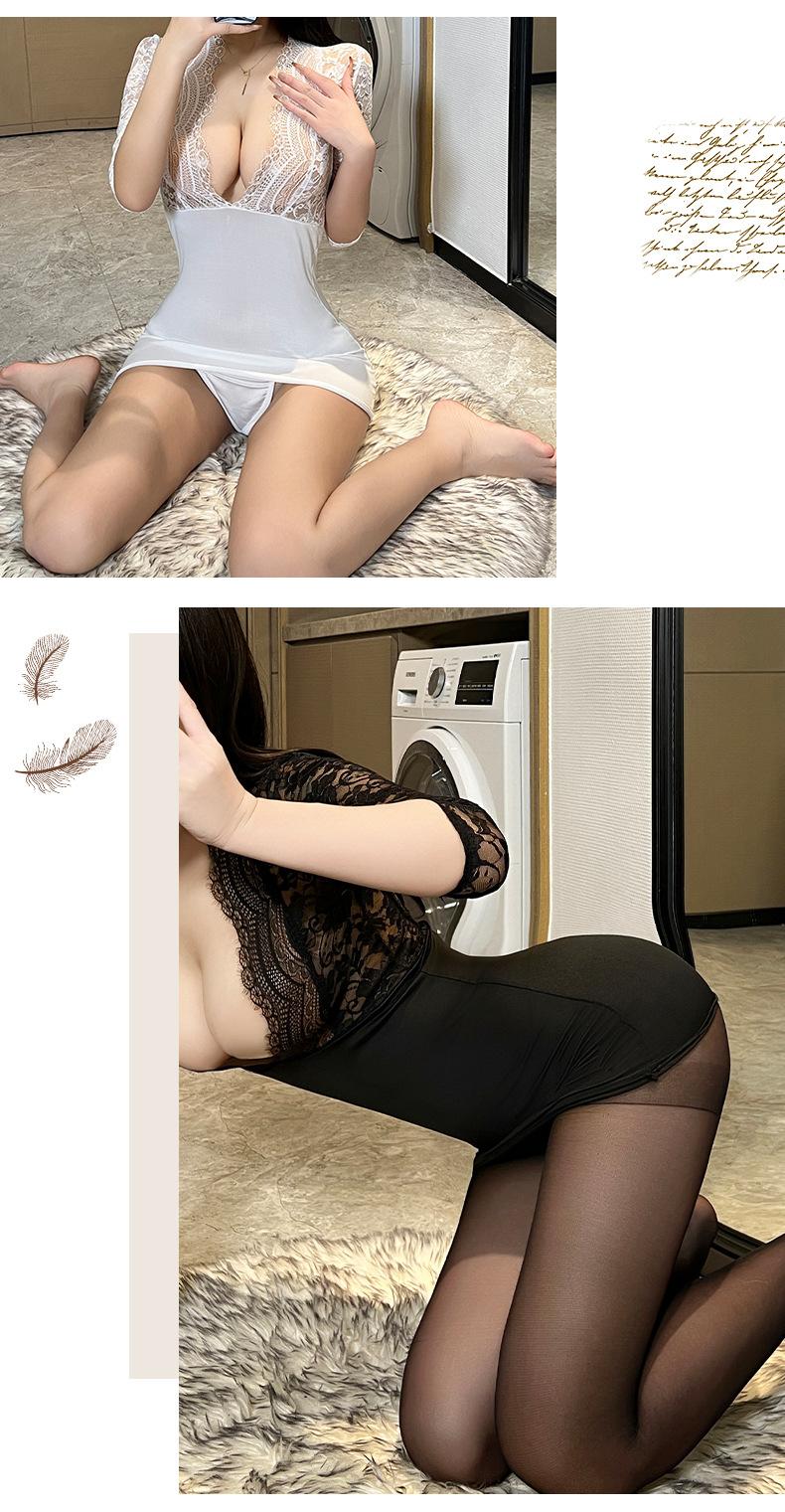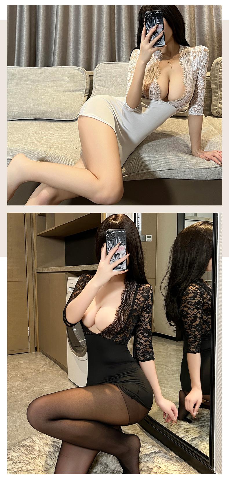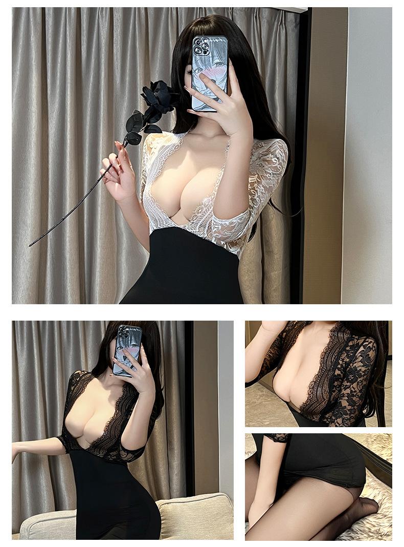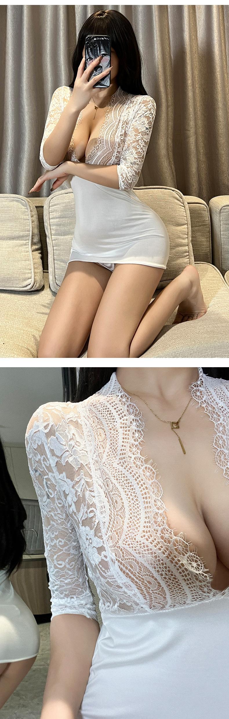 Lencería Sexy, Falda Ajustada que Abraza las Caderas, Uniforme de Secretaria, Tentador Escote Profundo con Pechos Expuestos, Encaje Transparente Ropa Sexy de Pura Lujuria, Encanto