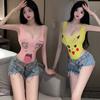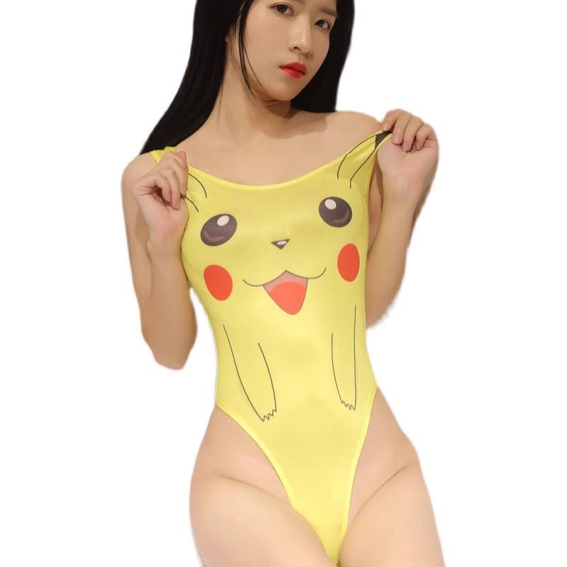 Huan Yi Dibujo Animado Ropa Interior Sexy Estampada para Mujer Monos Ajustados para Mujer Pijamas Uniforme Tentador Corte Alto Agua Muerta
