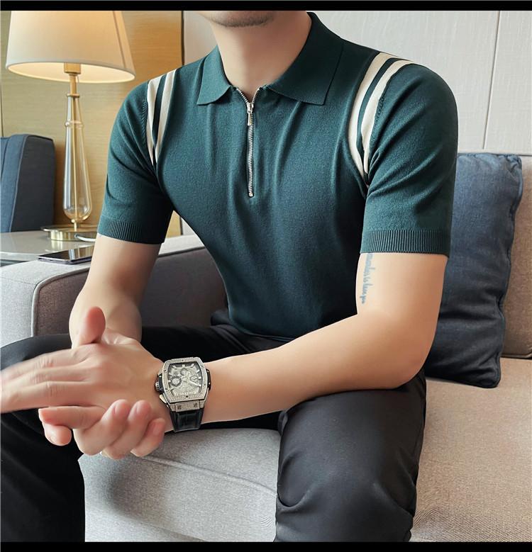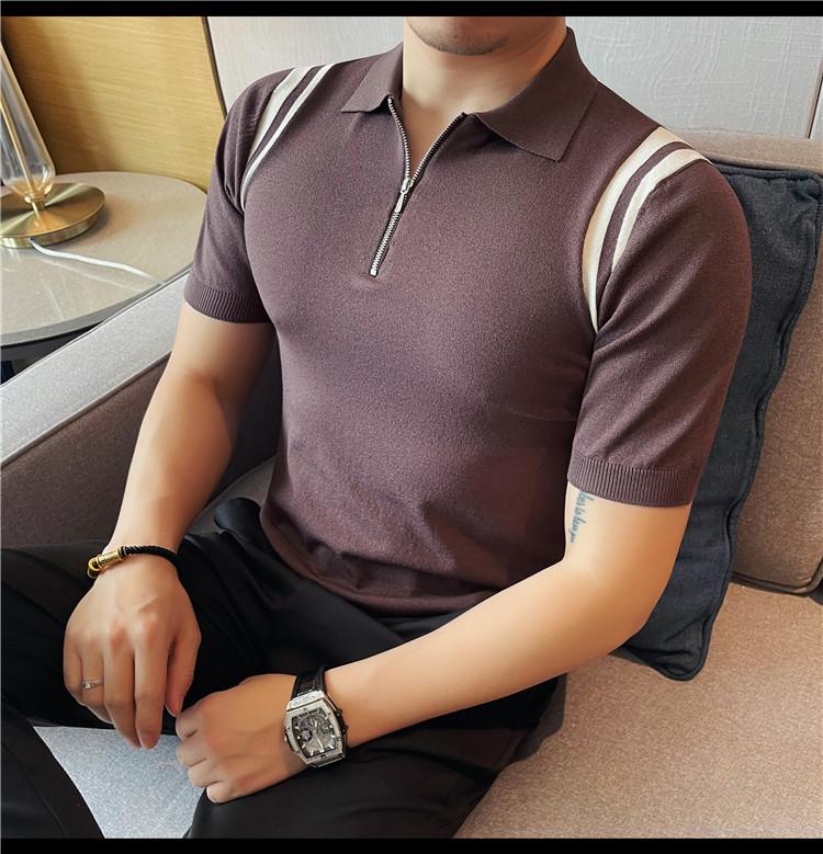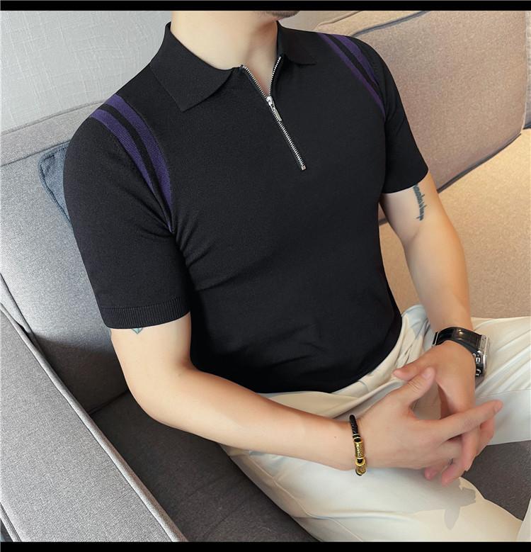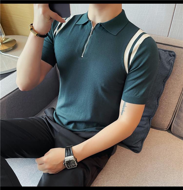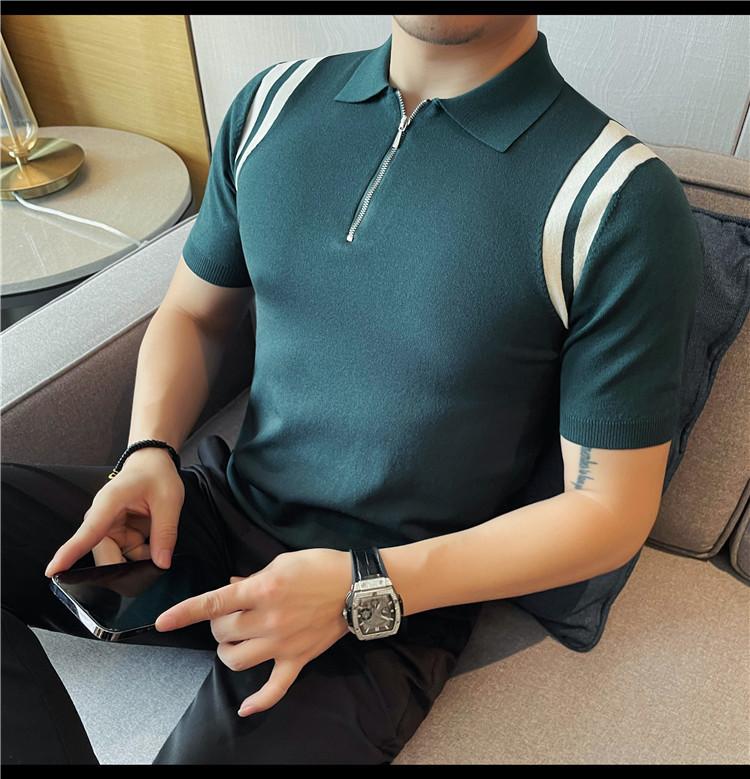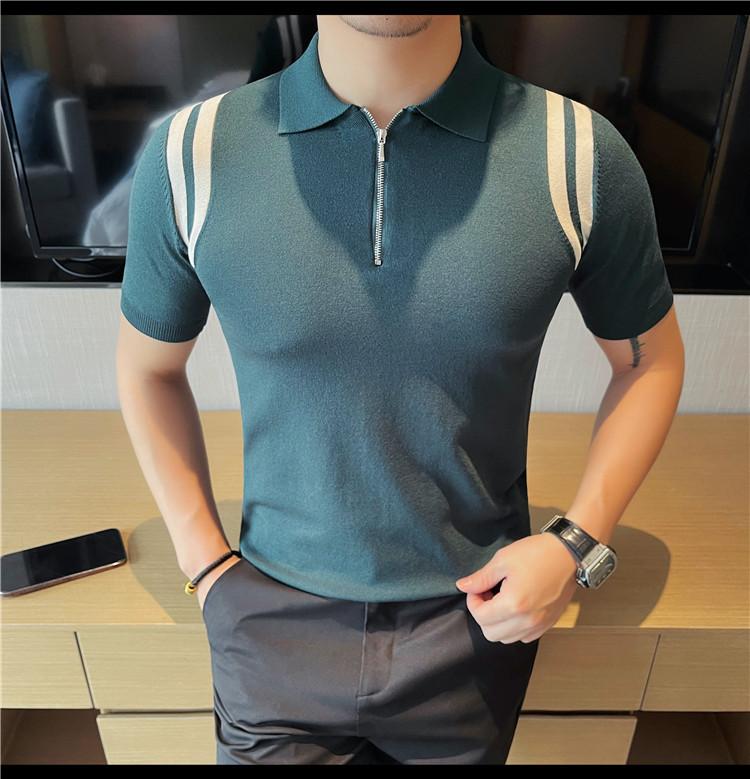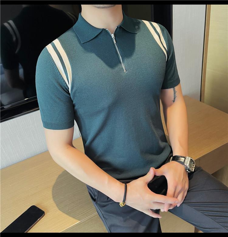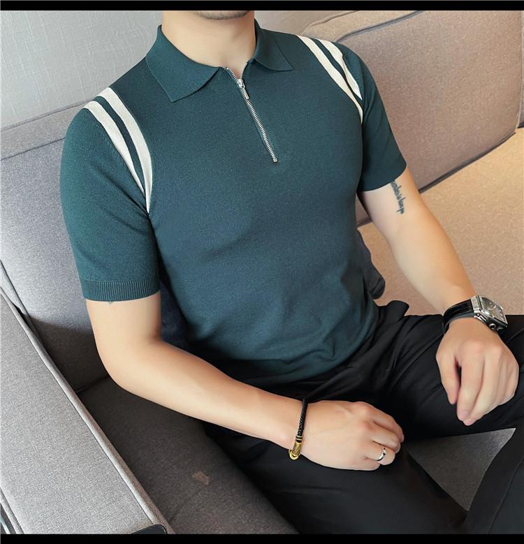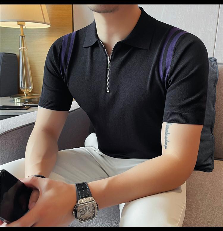 Camiseta de manga corta de punto de seda helada para hombre, nueva camiseta de verano con cremallera y solapa, manga corta - Camisa OLO 3753