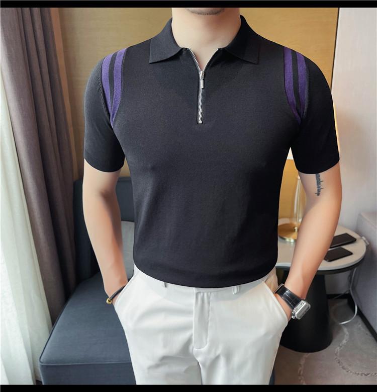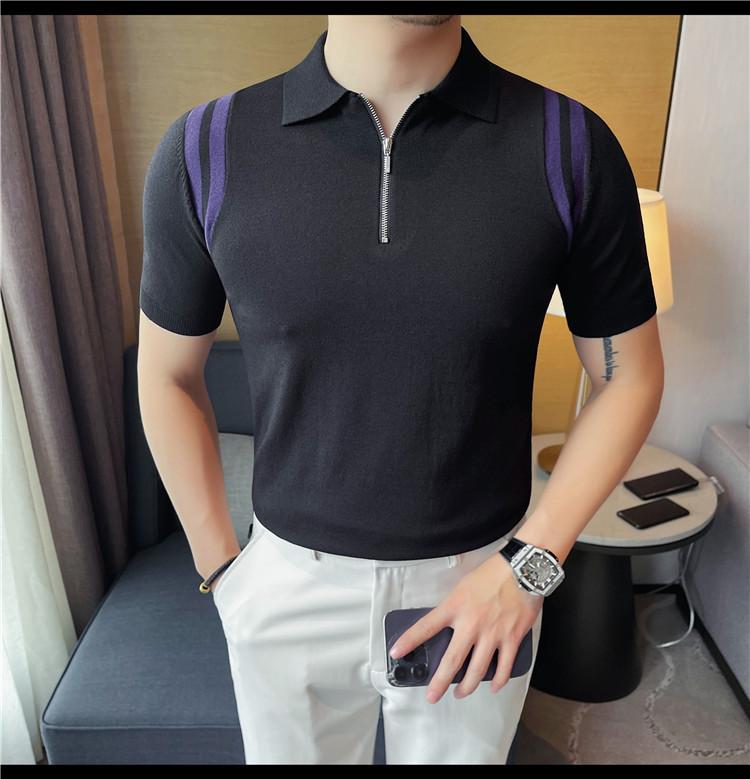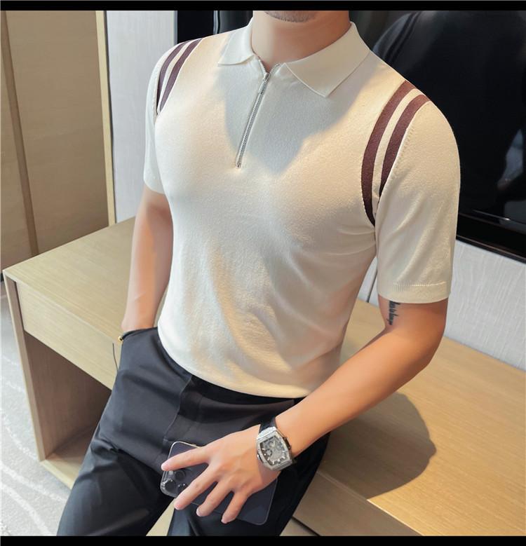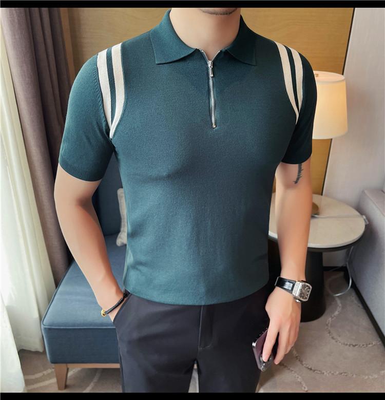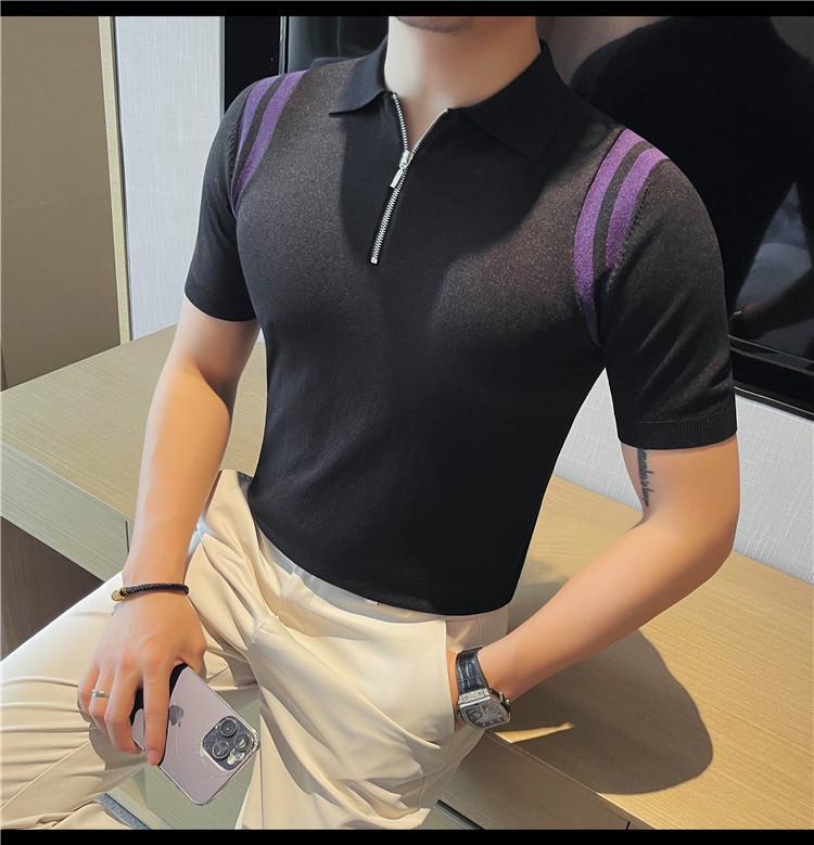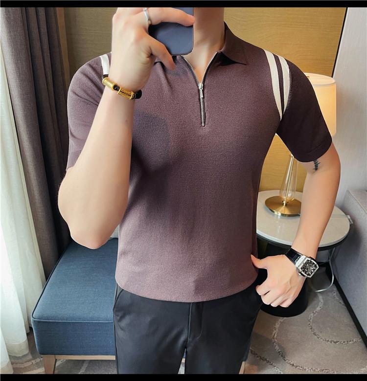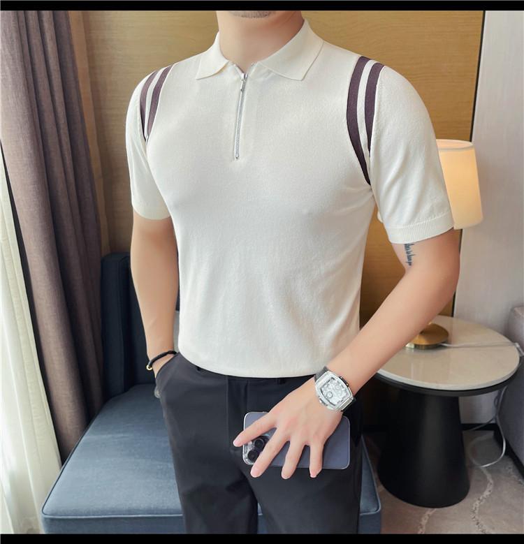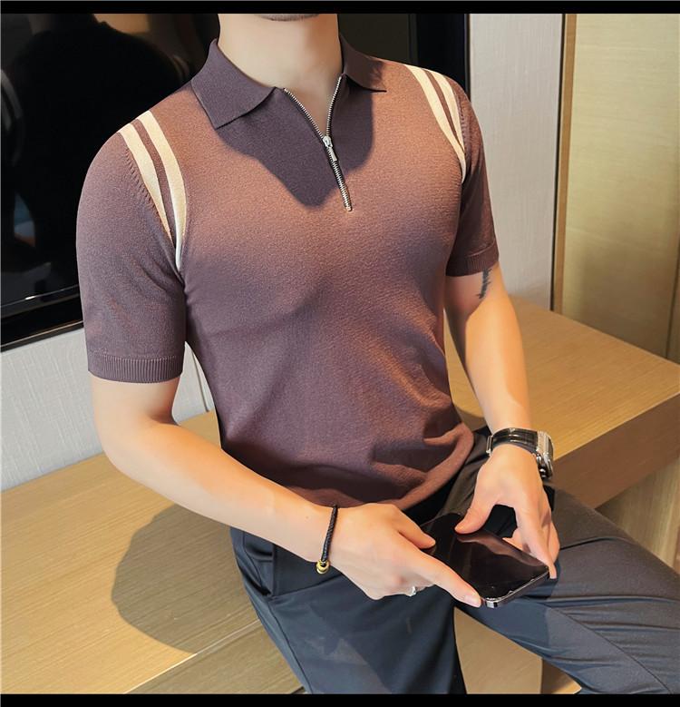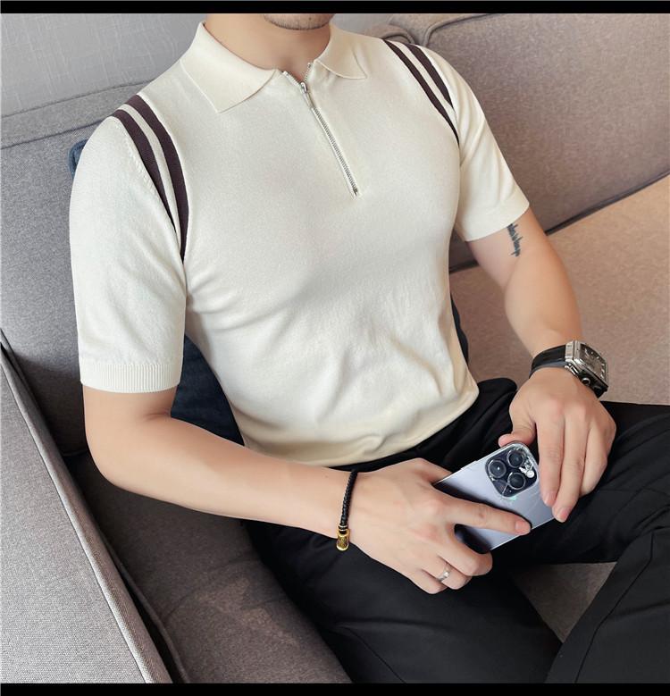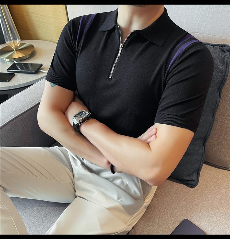 Camiseta de manga corta de punto de seda helada para hombre, nueva camiseta de verano con cremallera y solapa, manga corta - Camisa OLO 3753