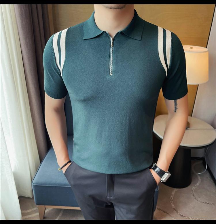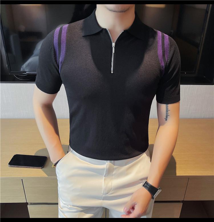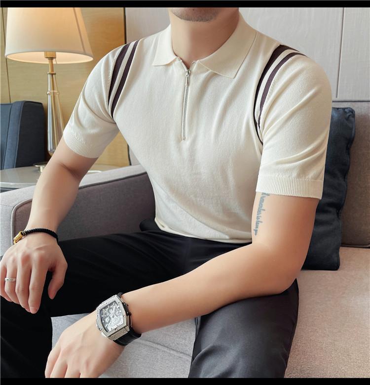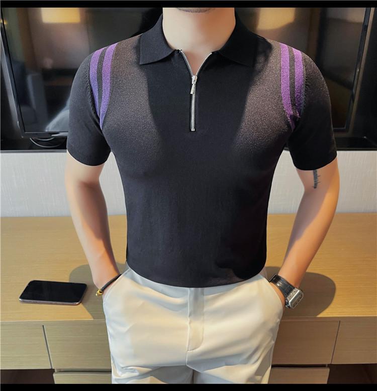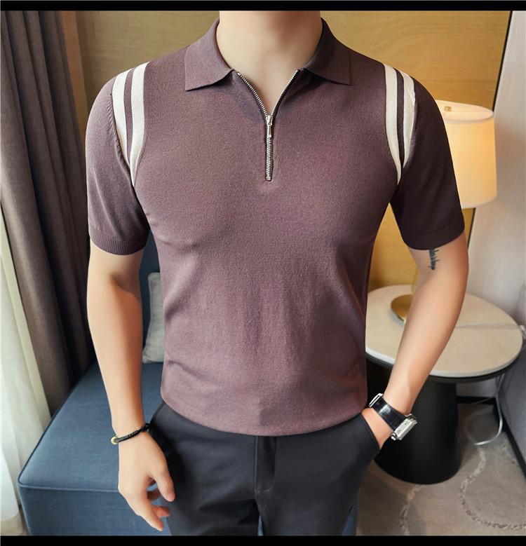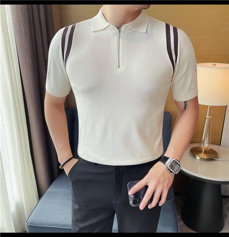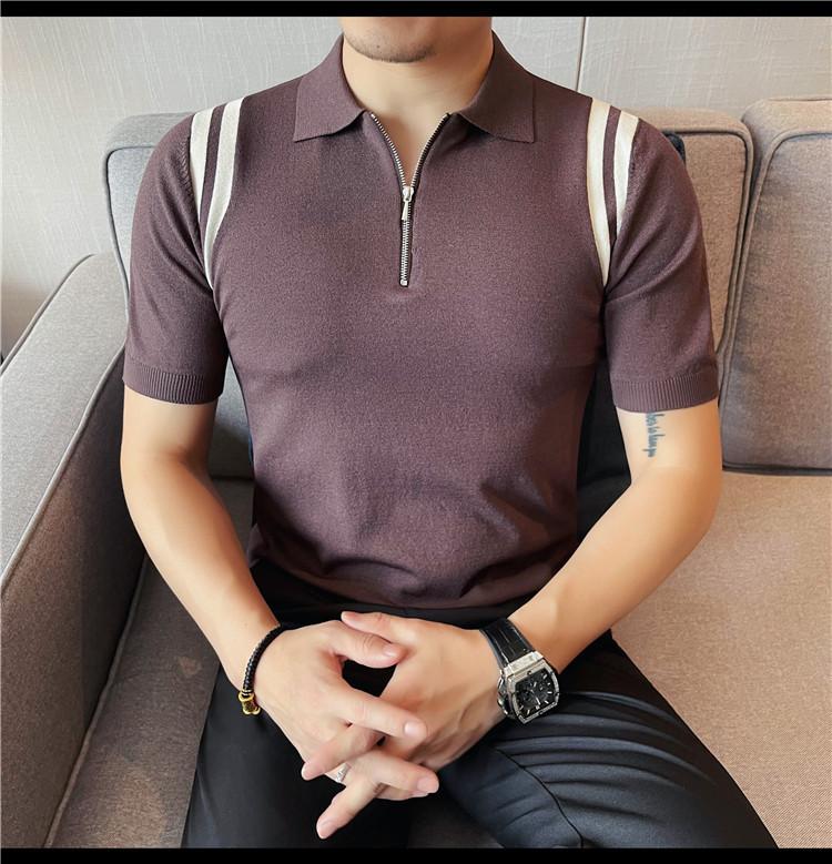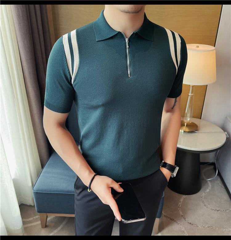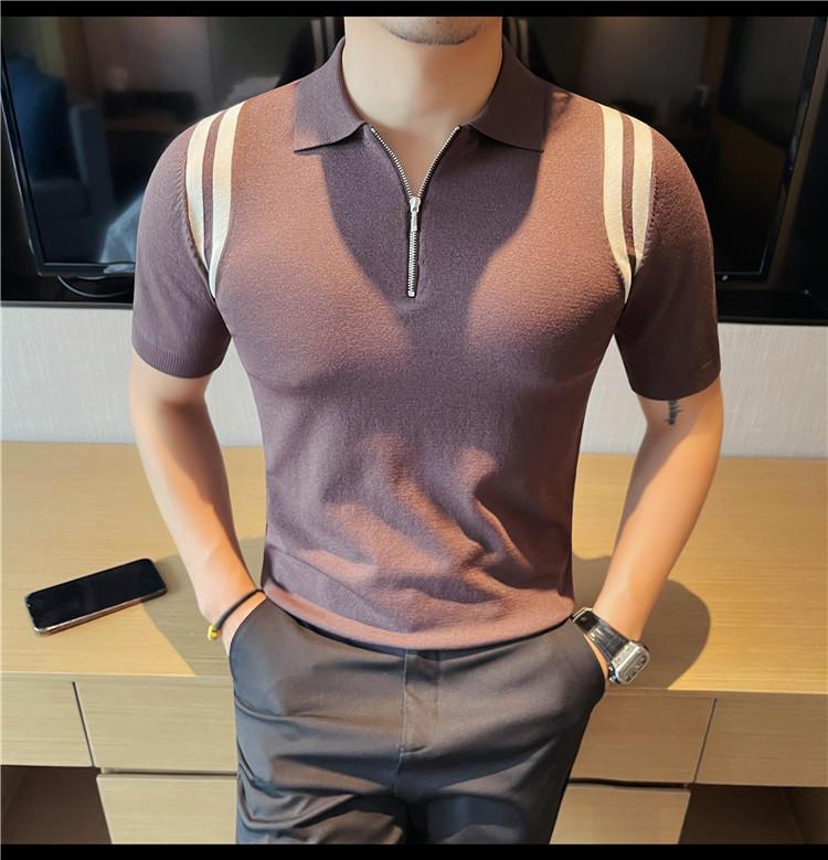Camiseta de manga corta de punto de seda helada para hombre, nueva camiseta de verano con cremallera y solapa, manga corta - Camisa OLO 3753