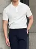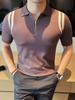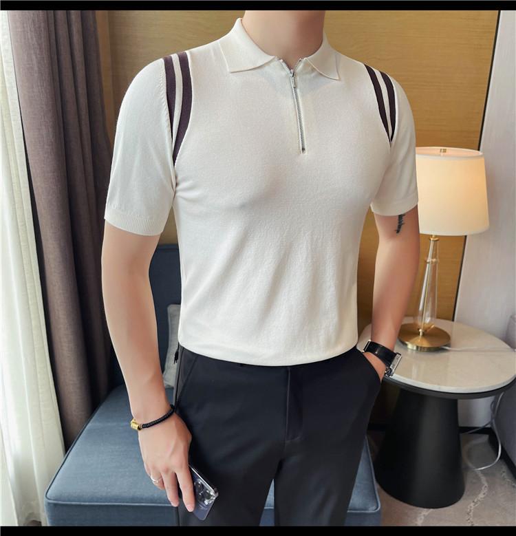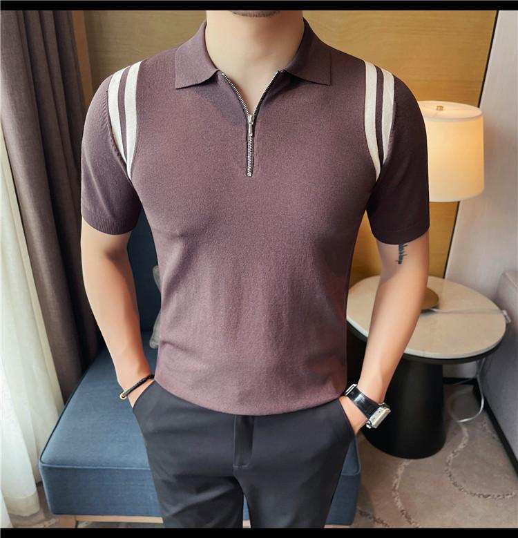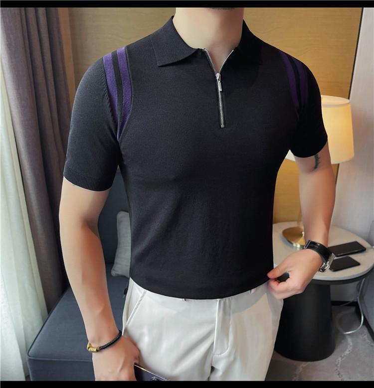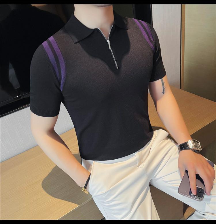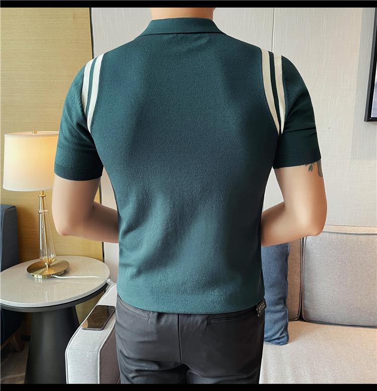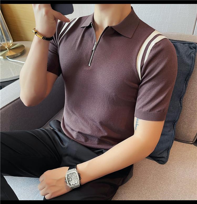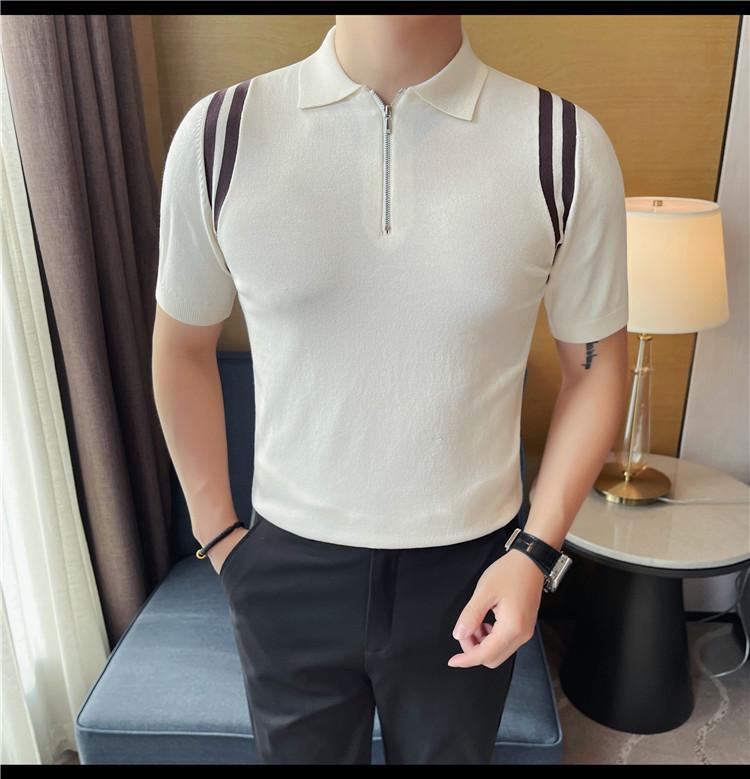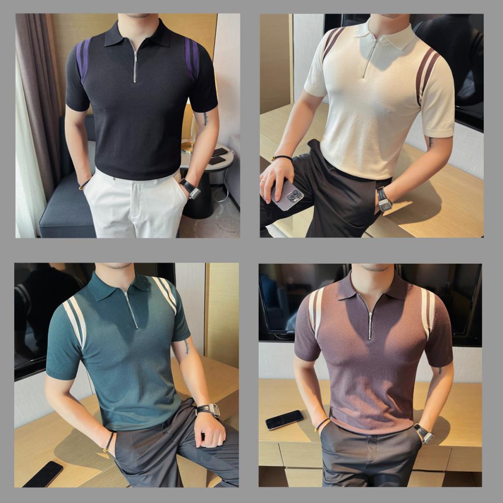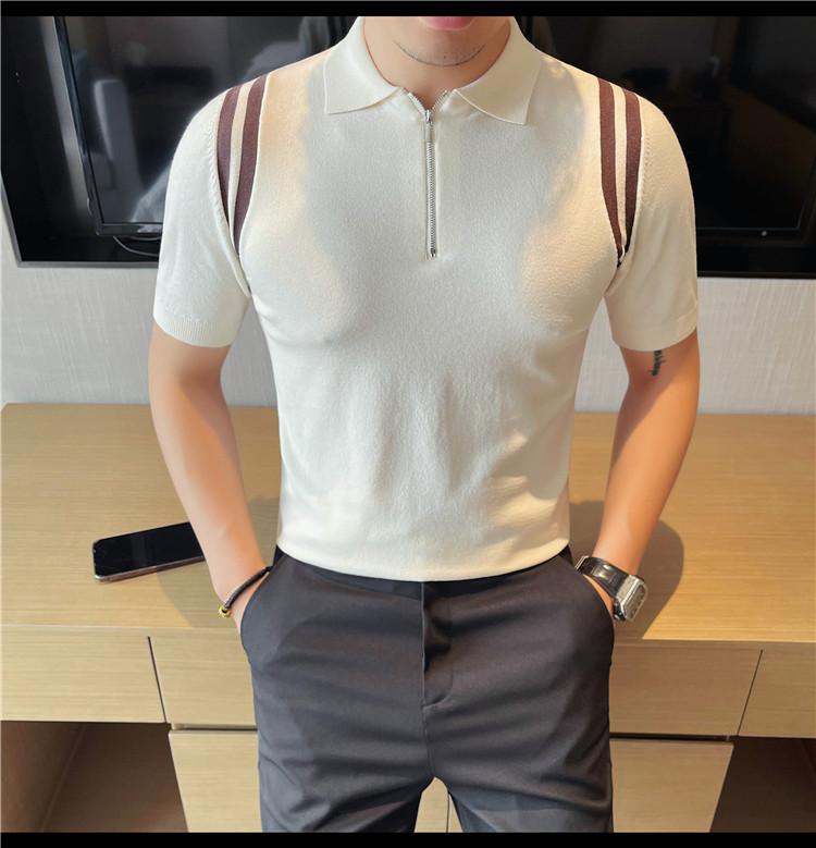 Camiseta de manga corta de punto de seda helada para hombre, nueva camiseta de verano con cremallera y solapa, manga corta - Camisa OLO 3753