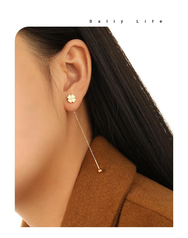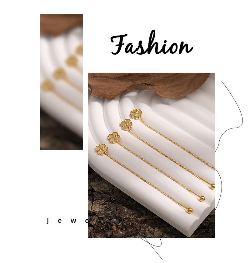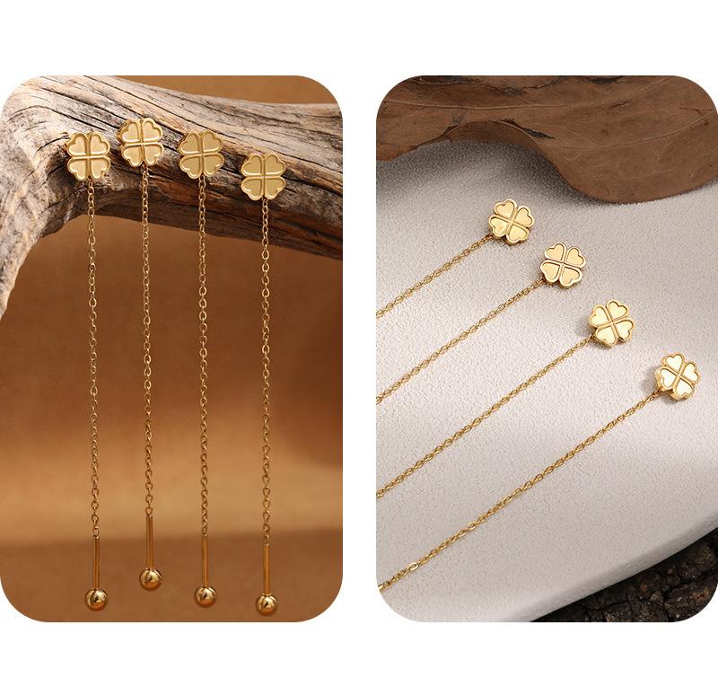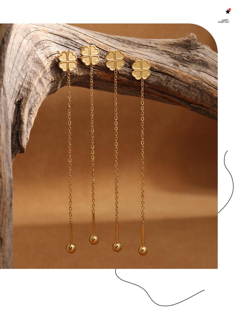 Pendientes largos con borlas doradas estilo coreano Ins para mujer, elegantes, de alta gama, con forma de trébol de cuatro hojas