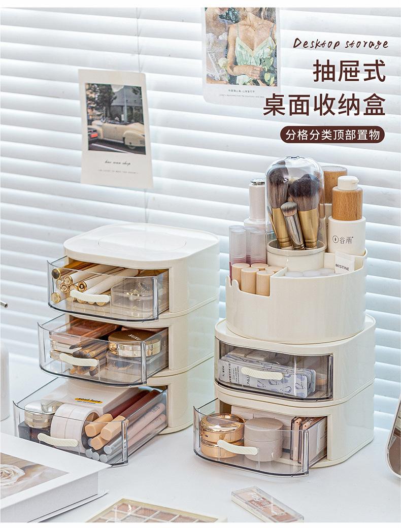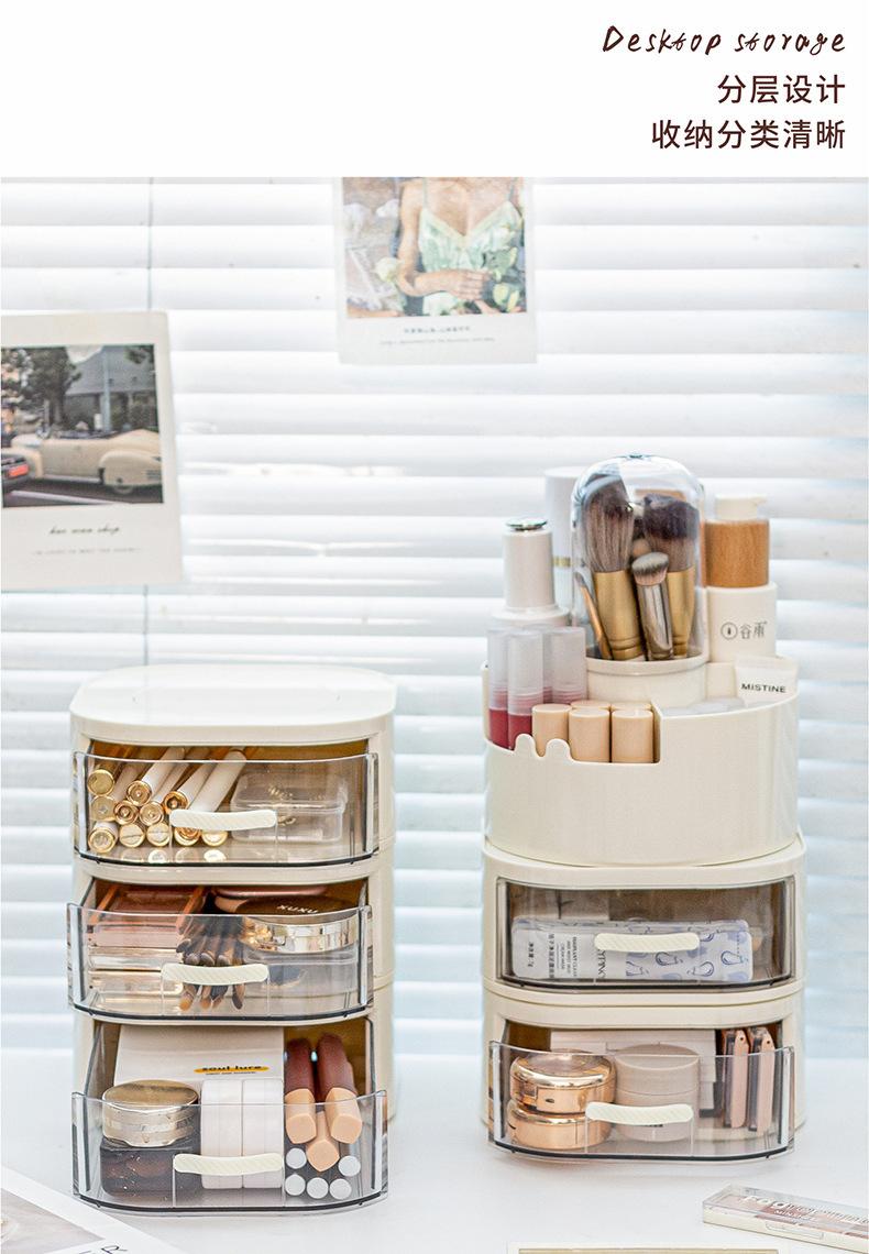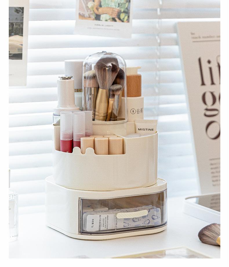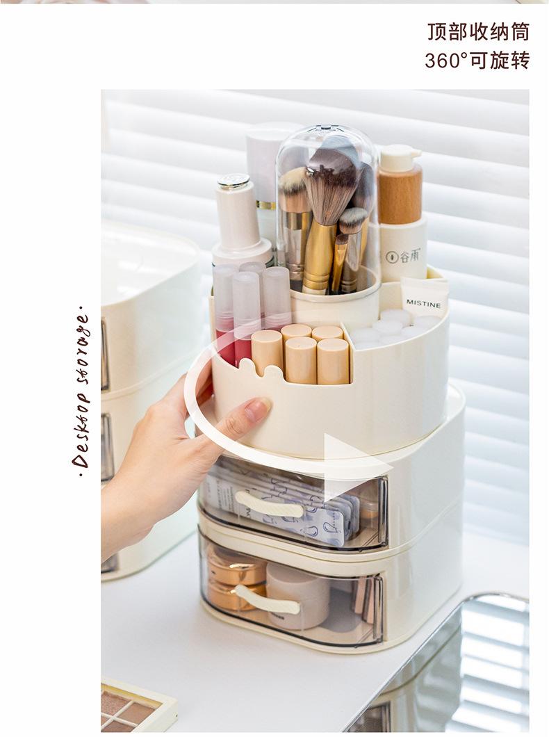 Caja de almacenamiento de cosméticos tipo cajón de escritorio, almacenamiento giratorio para brochas de maquillaje, labiales, sombras de ojos, tocador, estante de almacenamiento portátil