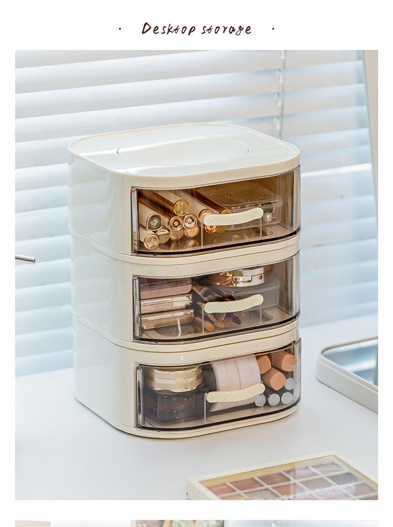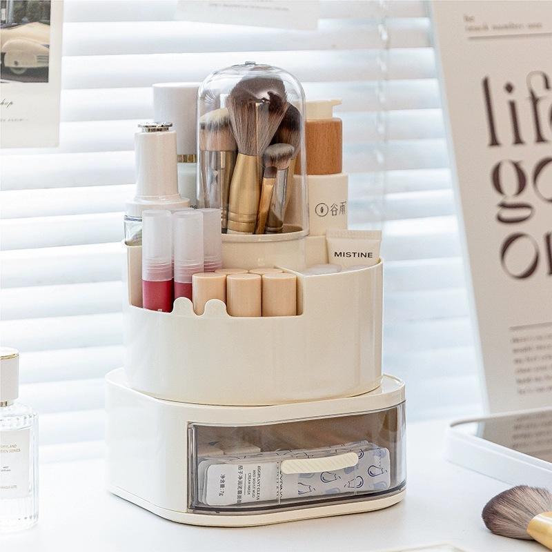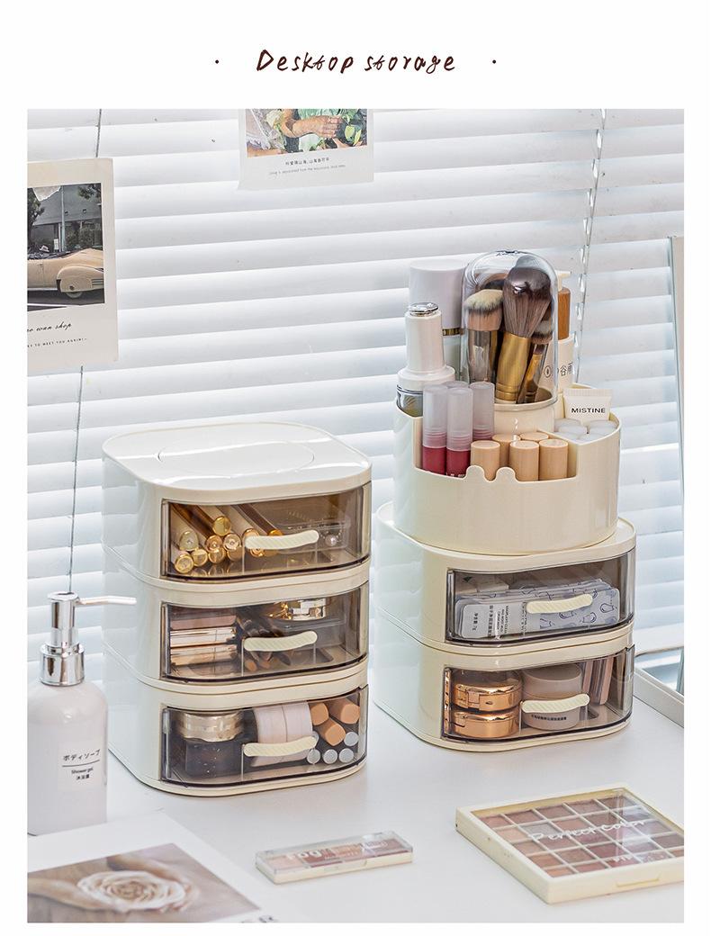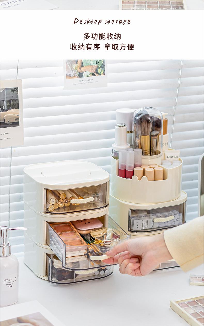 Caja de almacenamiento de cosméticos tipo cajón de escritorio, almacenamiento giratorio para brochas de maquillaje, labiales, sombras de ojos, tocador, estante de almacenamiento portátil