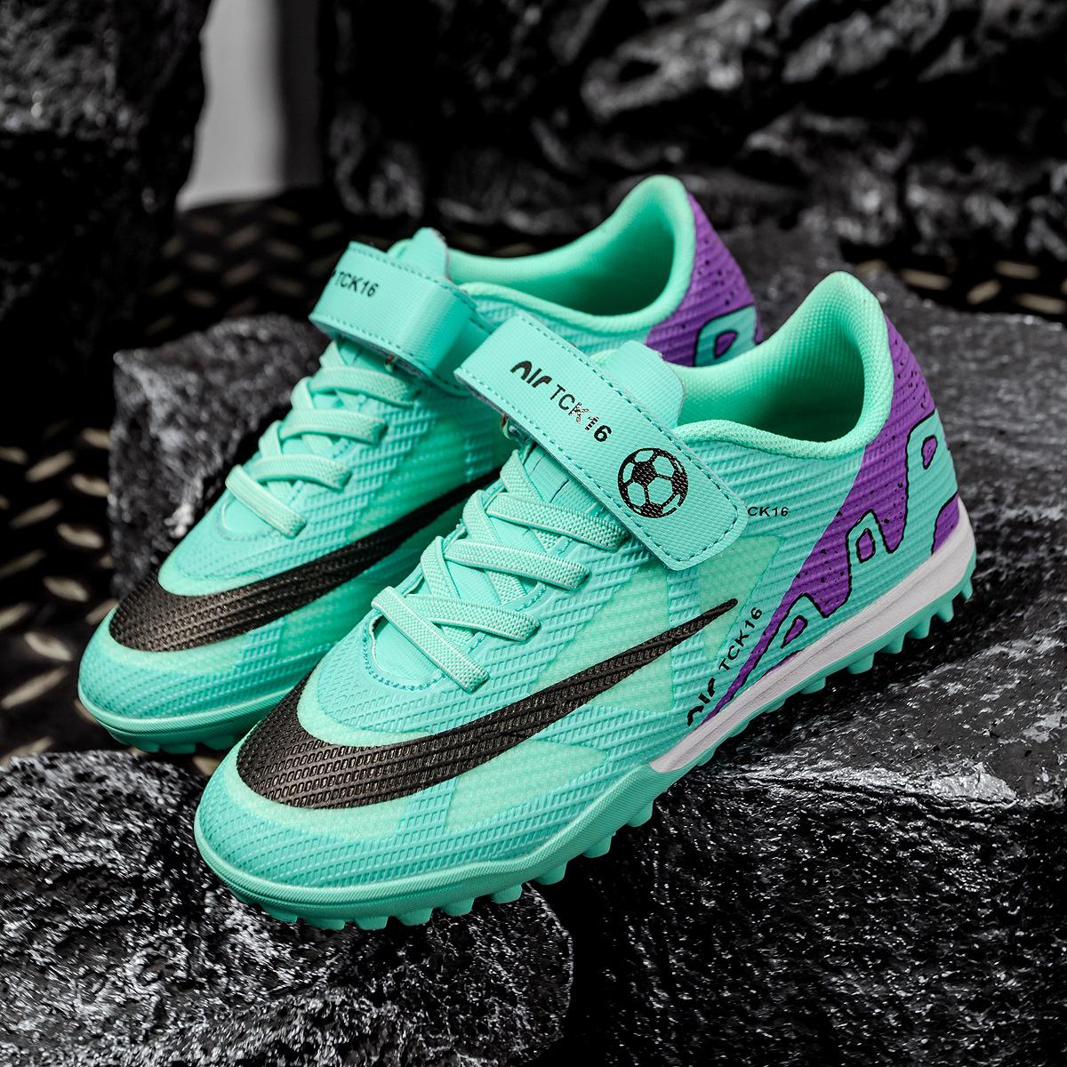 Nuevas zapatillas de fútbol para niños, de caña baja con velcro y clavos triturados, para estudiantes de primaria, competición juvenil, entrenamiento deportivo, zapatillas antideslizantes.
