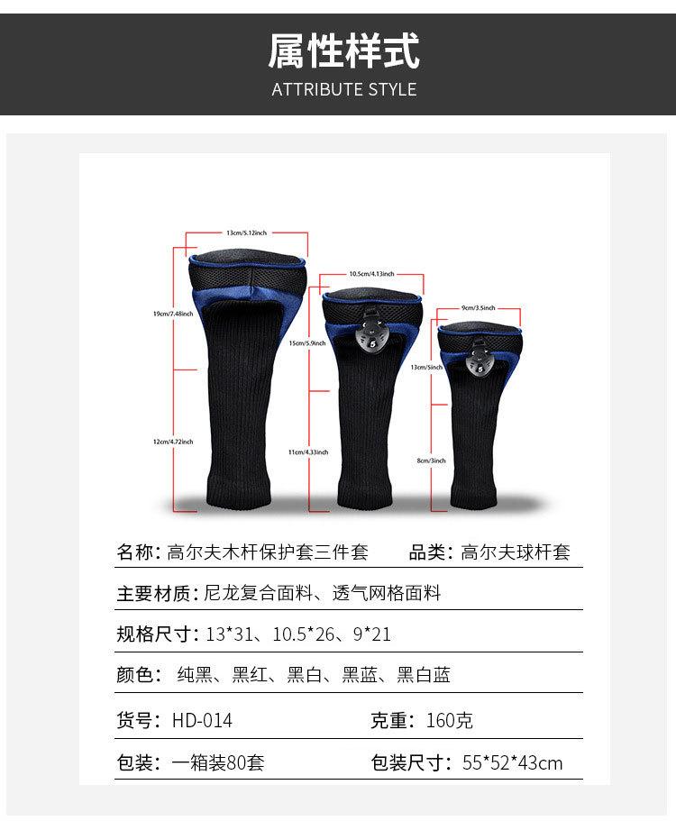 Suministros de golf de venta caliente transfronteriza, fundas para palos, tapas, fundas protectoras para palos de madera 1, 3 y 5, la fábrica puede enviar directamente una pieza.39 libras