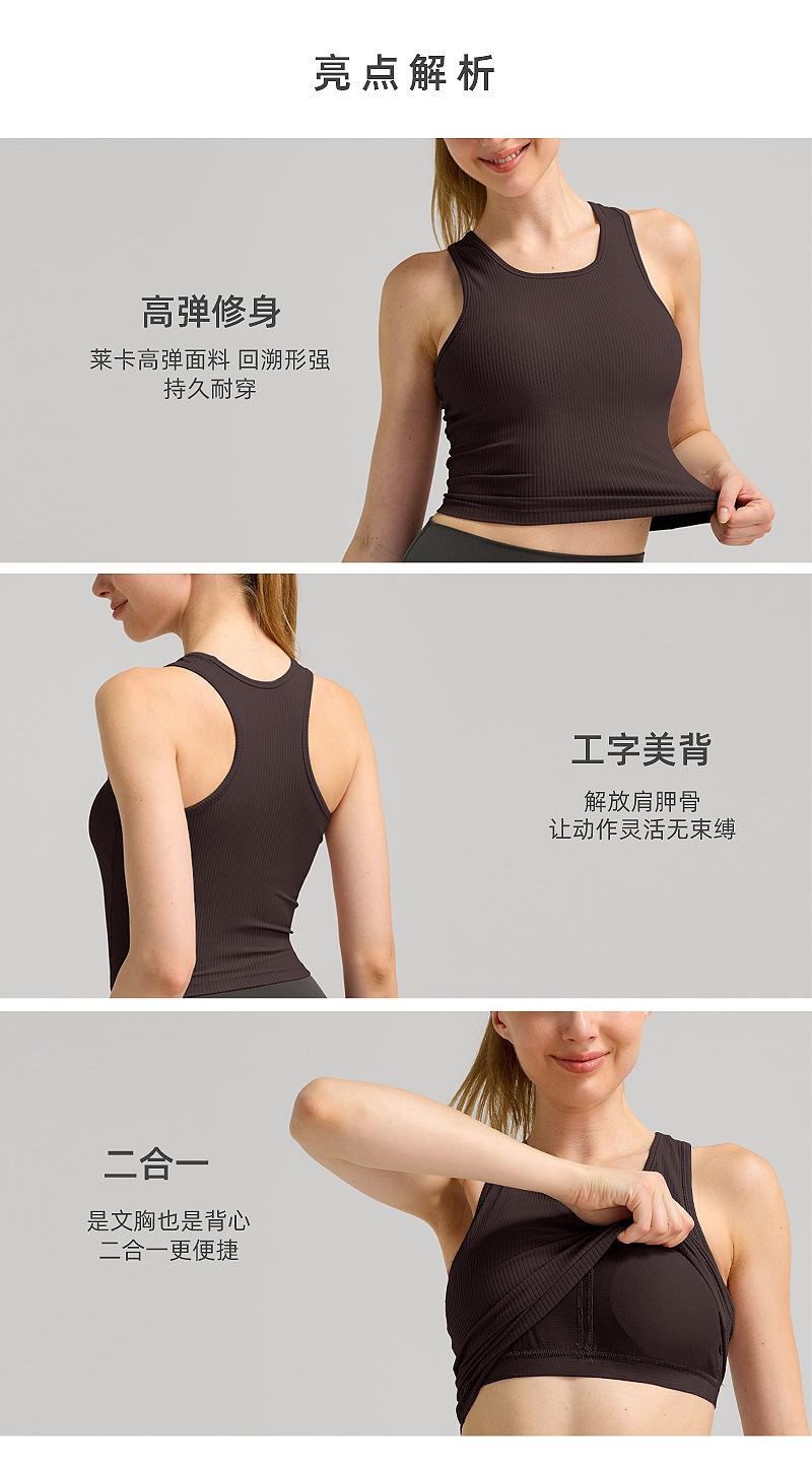 Chaleco Deportivo Lulu Short I-Character para Mujer con Almohadilla en el Pecho Ropa de Yoga Leica Acanalado Transpirable de Secado Rápido Top de Fitness