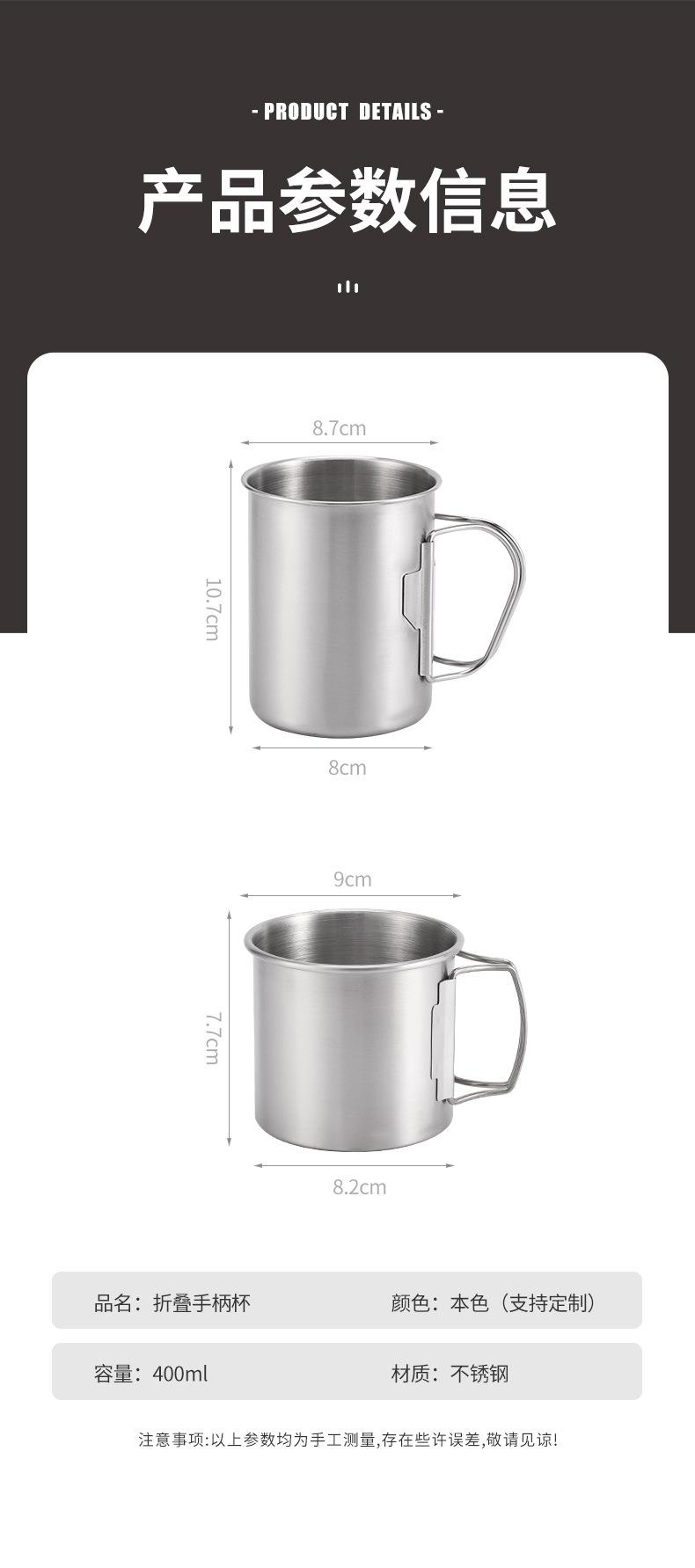 Vaso de Agua Plegable de Acero Inoxidable 304 Vaso para Camping al Aire Libre Vaso Portátil con Asa Vaso para Senderismo Vaso de Agua para Exteriores