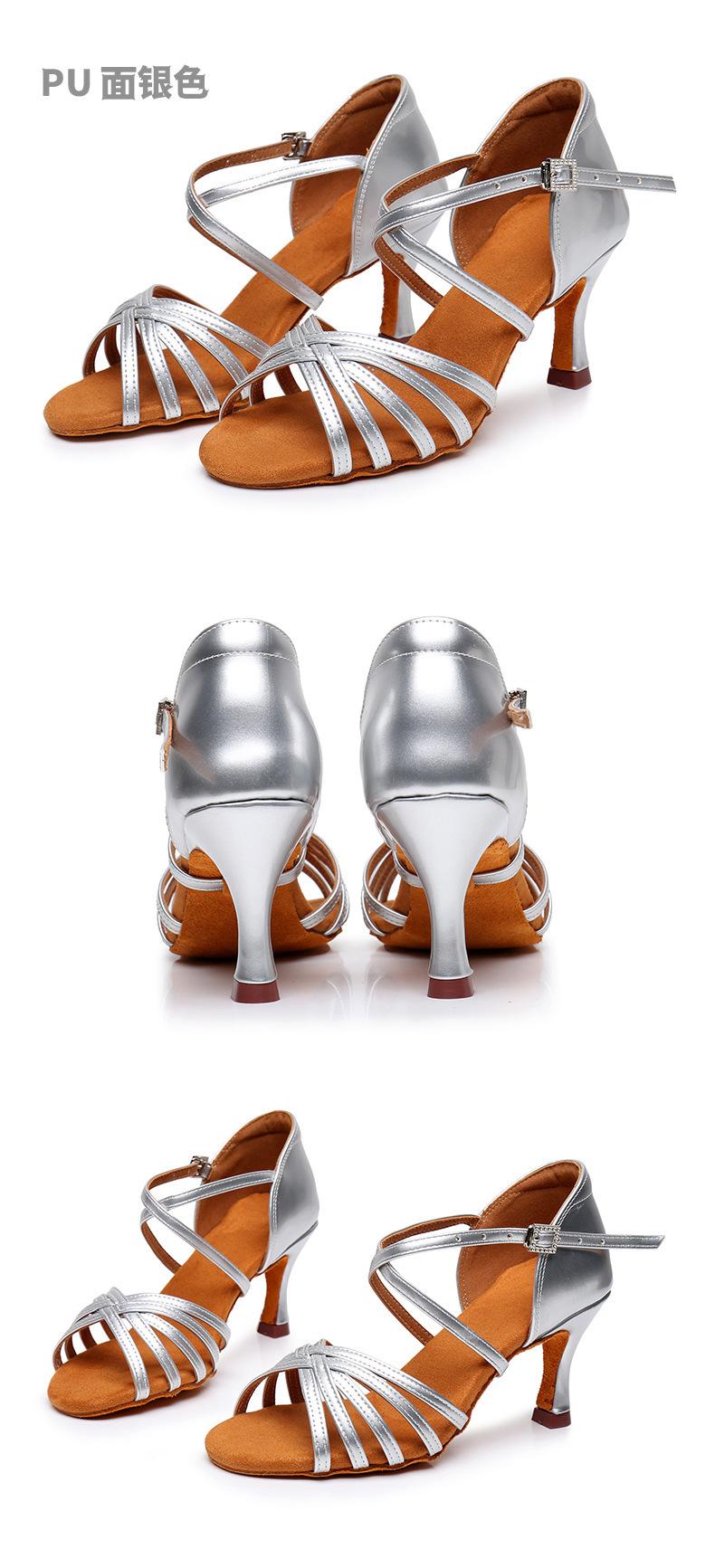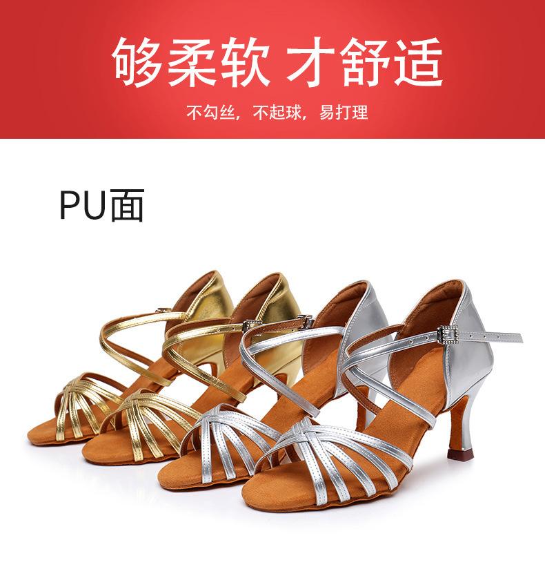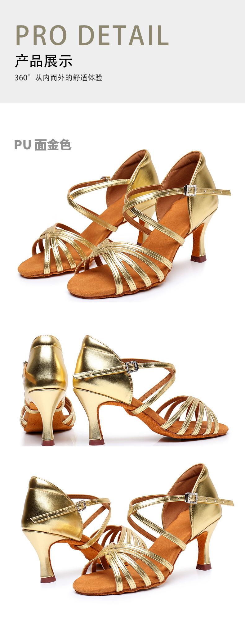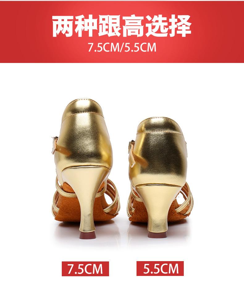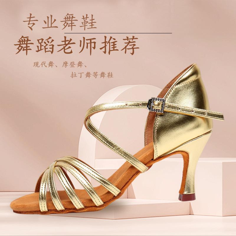 Zapatos de baile para mujer, venta al por mayor transfronteriza en Amazon, zapatos de baile latino para mujer, zapatos de baile dorados con suela suave y tacón alto, zapatos de baile cuadrados.