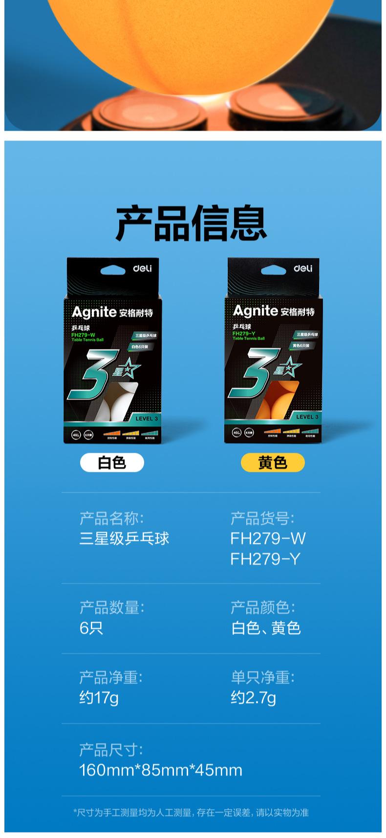 Deli Angnet Fh278 Tenis de Mesa Una Estrella Duradera Entrenamiento y Competición Especial Pelota de Tenis de Mesa
