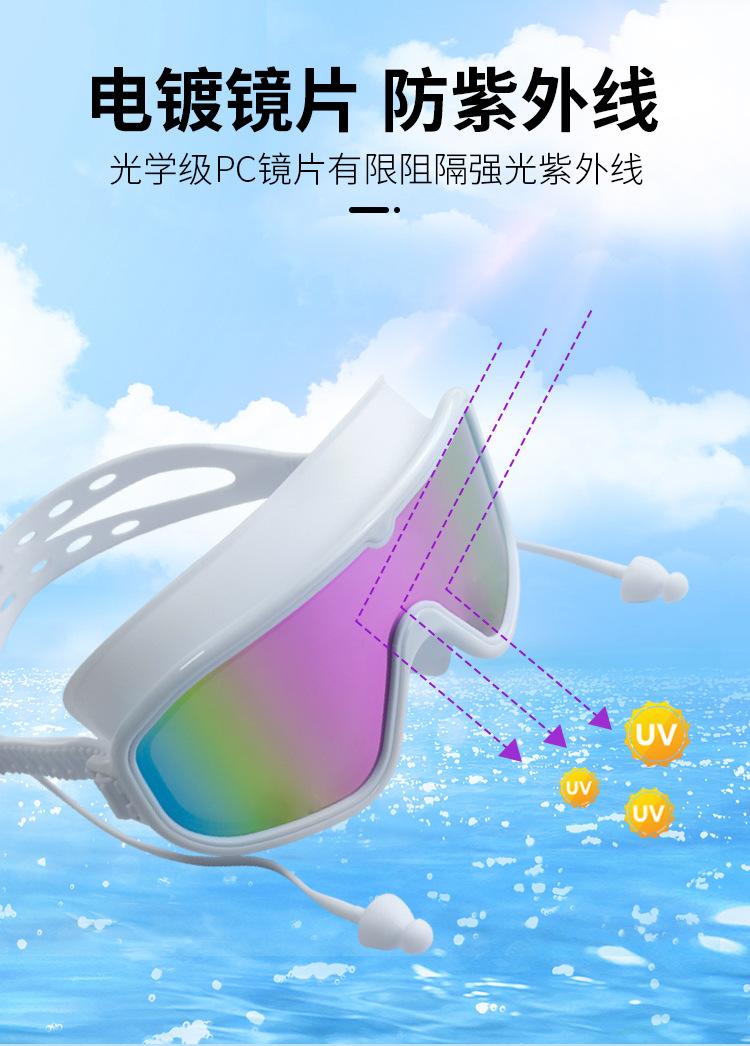 Gafas de Natación de Montura Grande HD Impermeables y Antivaho para Hombre y Mujer con Tapones para los Oídos Integrados Gafas de Buceo de Silicona Coloridas al por Mayor